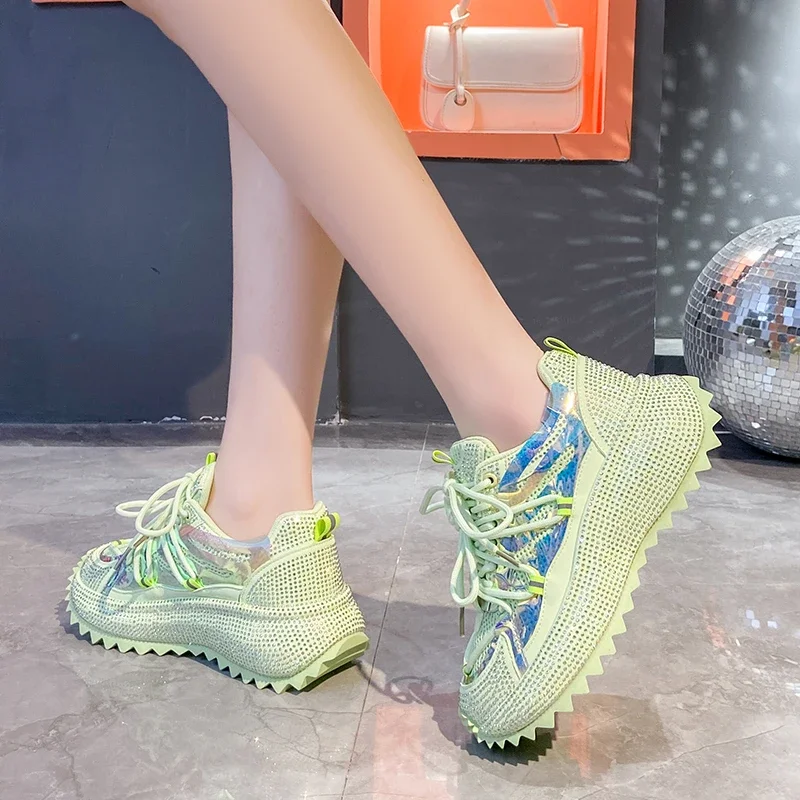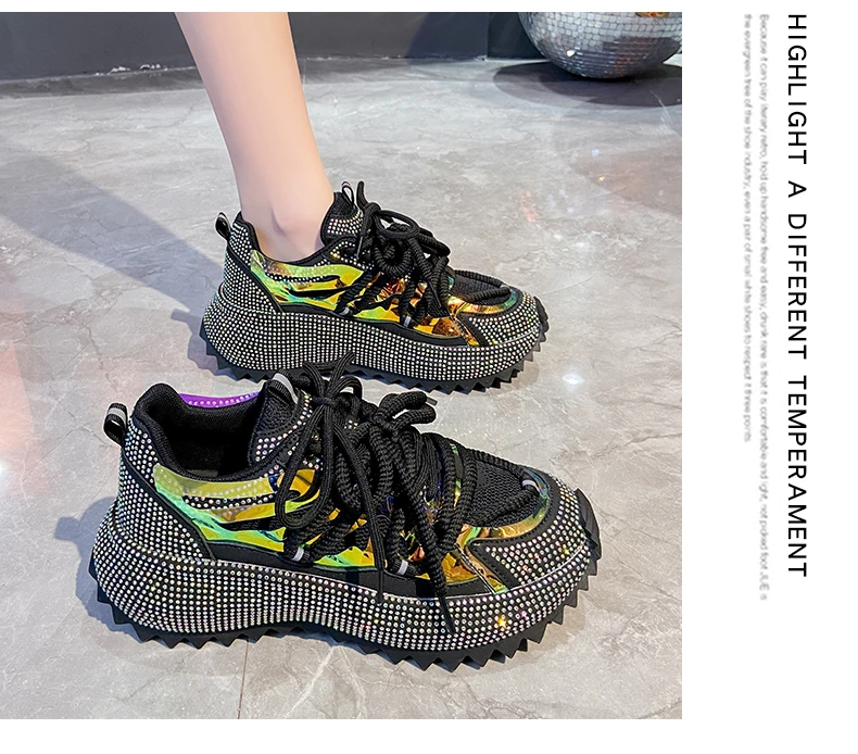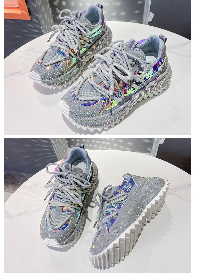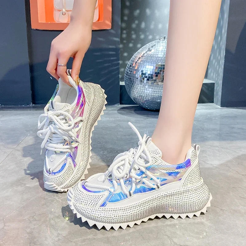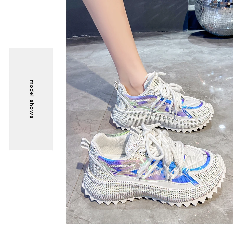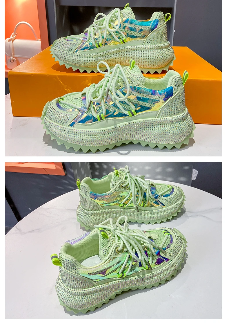 Full Diamond Luxury Thick soled Tall Shoes for Women’s Cross Lace-up Casual Fashion Sports Shoes Designer Running Shoes zapatos
