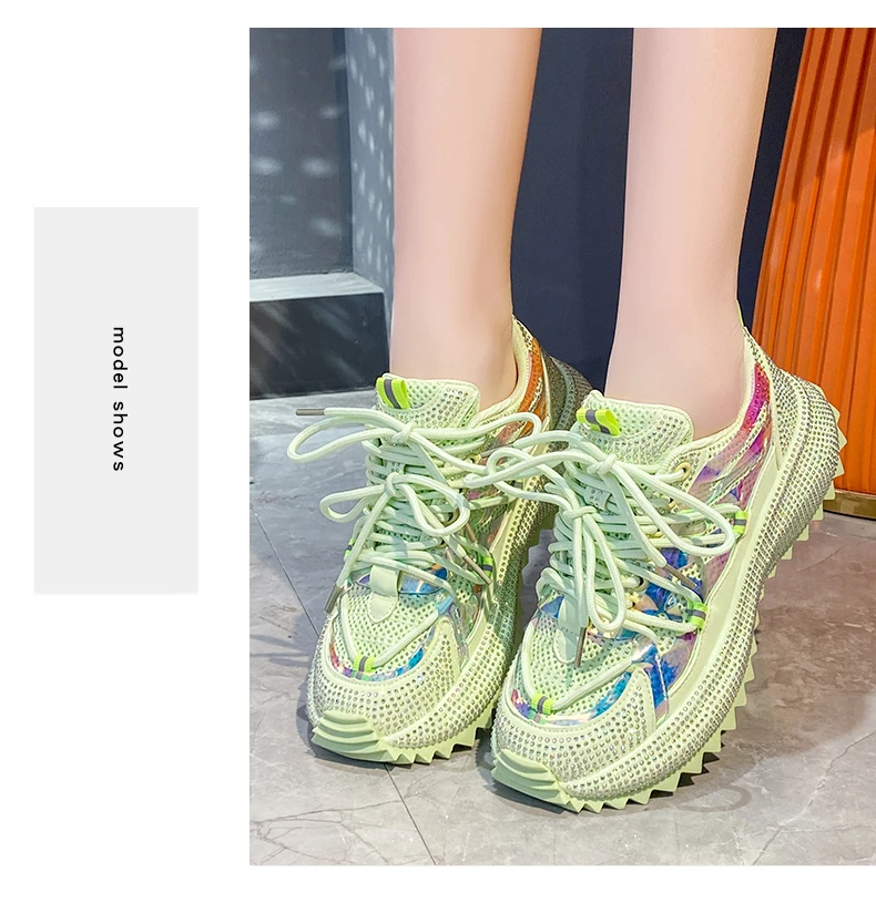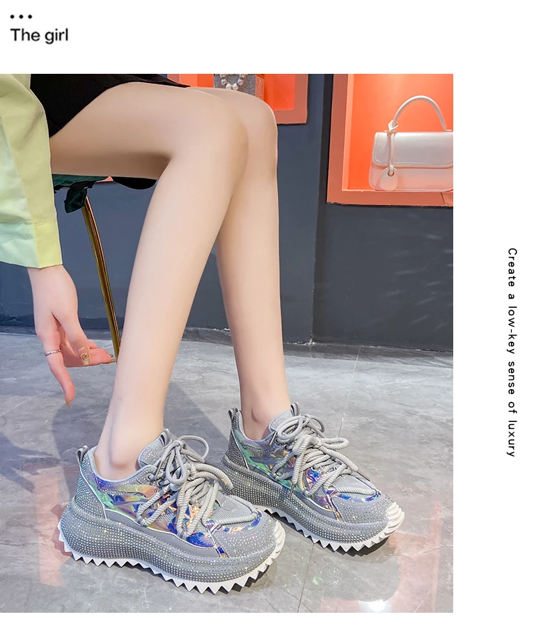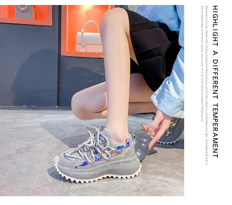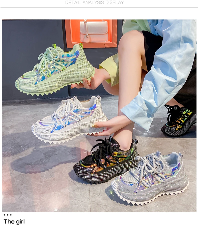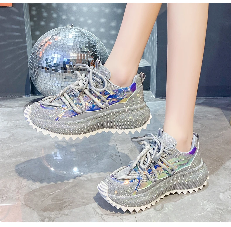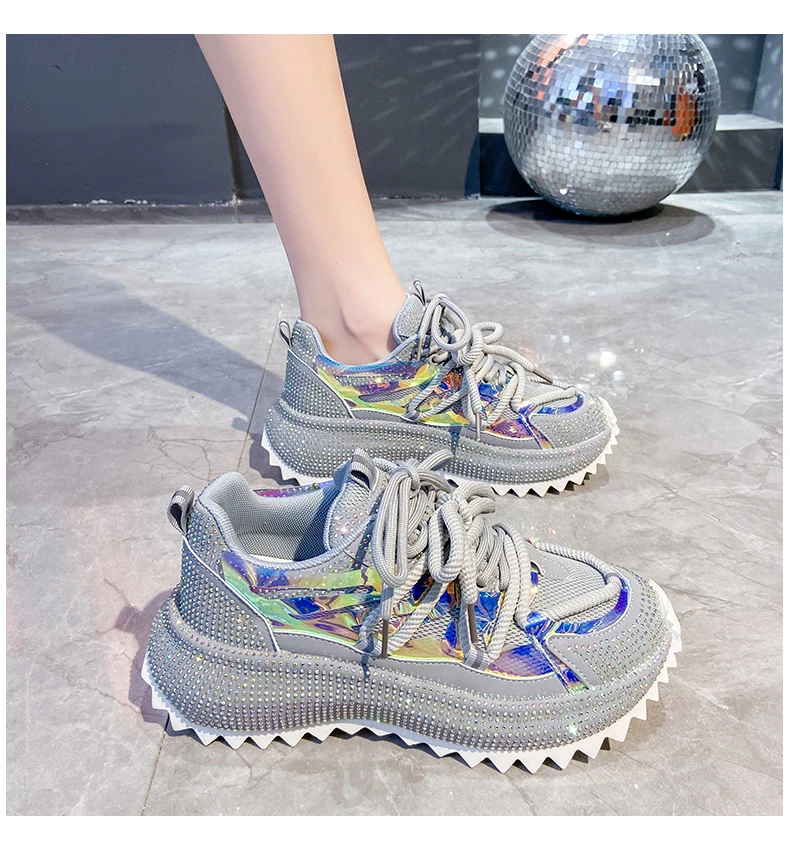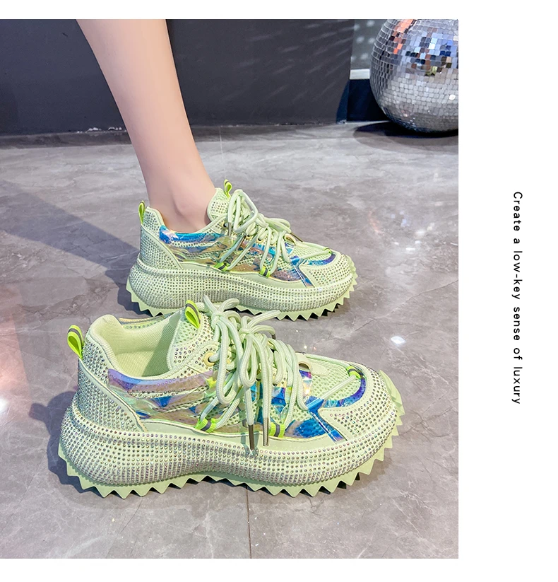 Full Diamond Luxury Thick soled Tall Shoes for Women’s Cross Lace-up Casual Fashion Sports Shoes Designer Running Shoes zapatos