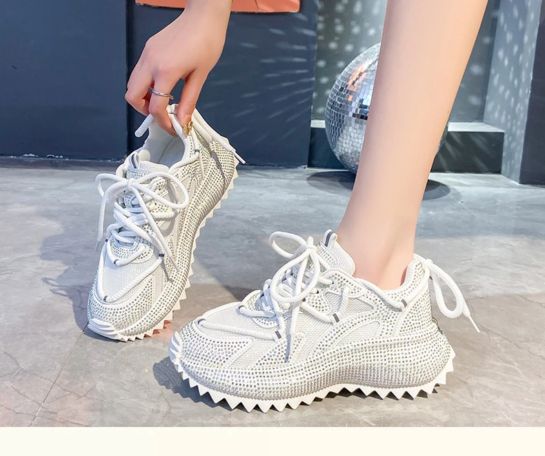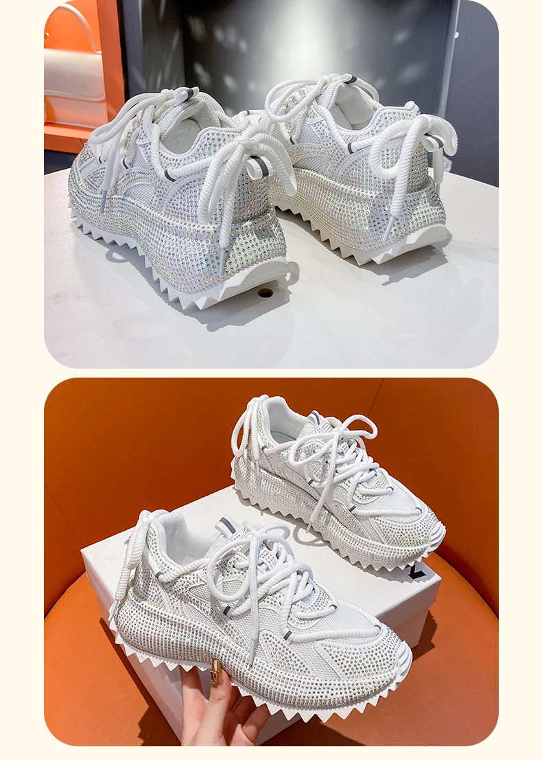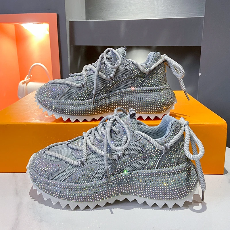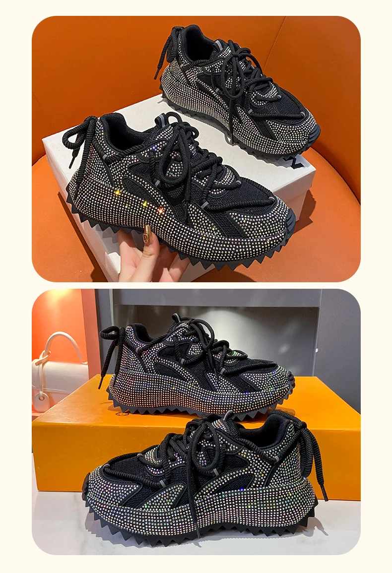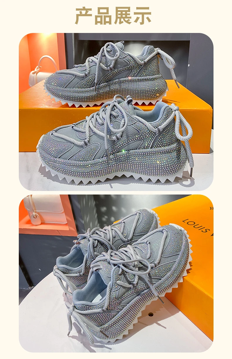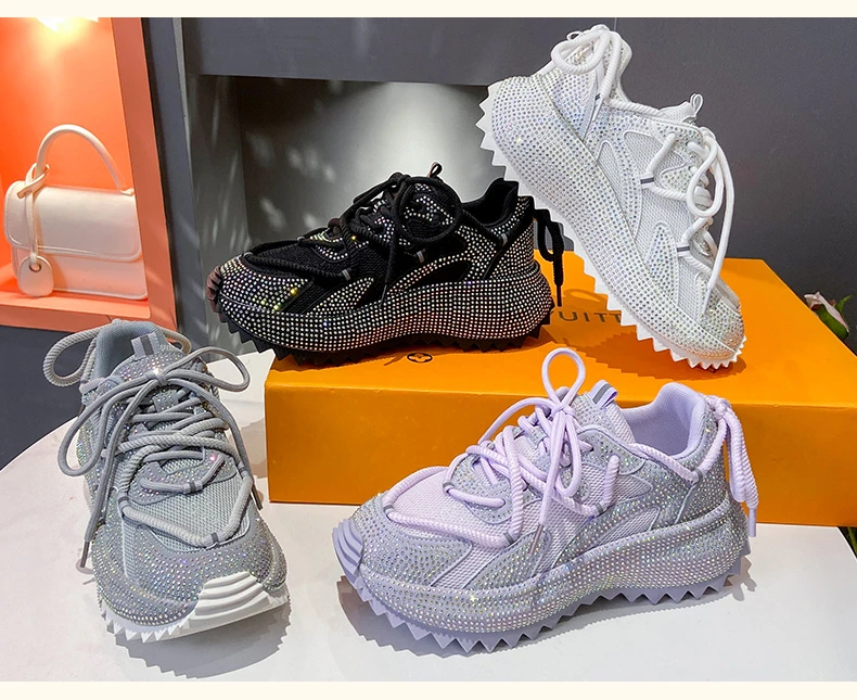 Full Diamond Running Shoes Thick soled Spring Breathable Sports Water Diamond Casual Versatile Women’s Shoes Sports Shoes