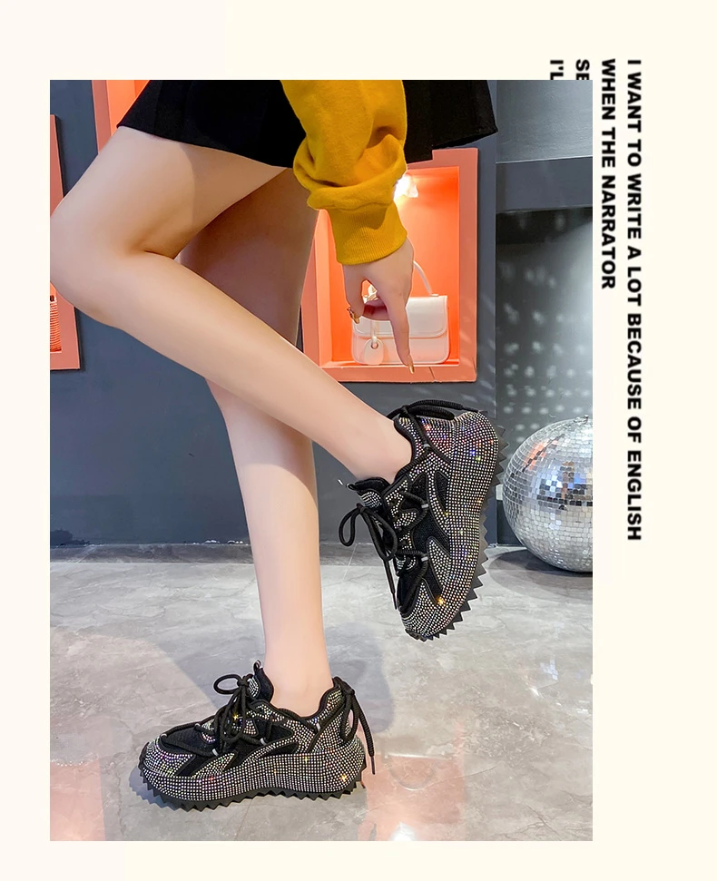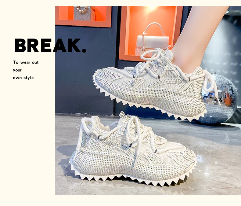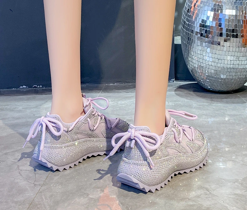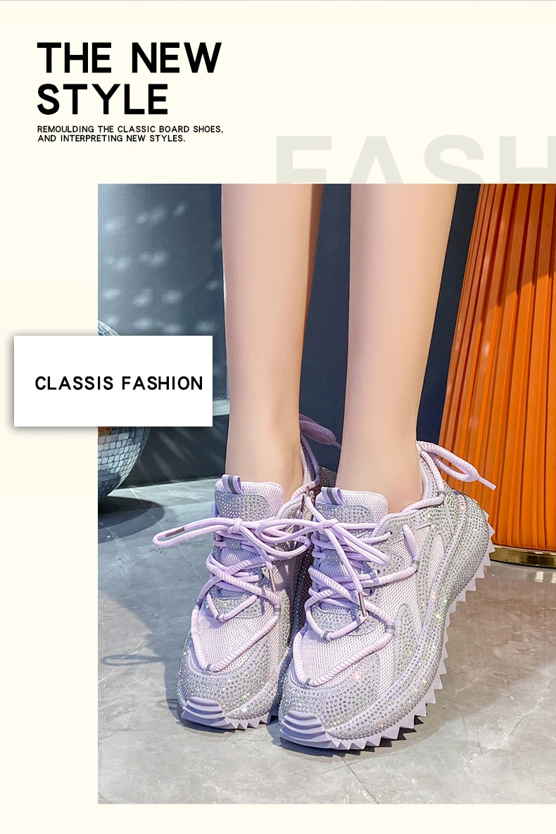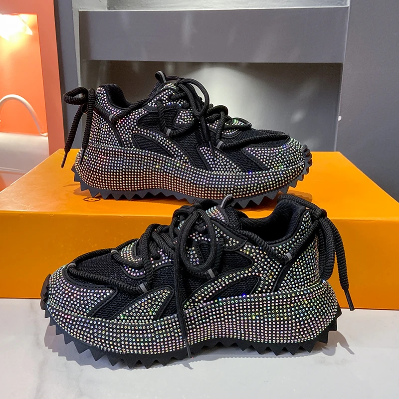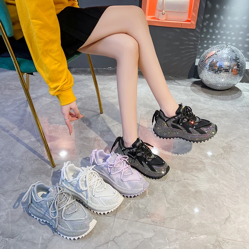 Full Diamond Running Shoes Thick soled Spring Breathable Sports Water Diamond Casual Versatile Women’s Shoes Sports Shoes