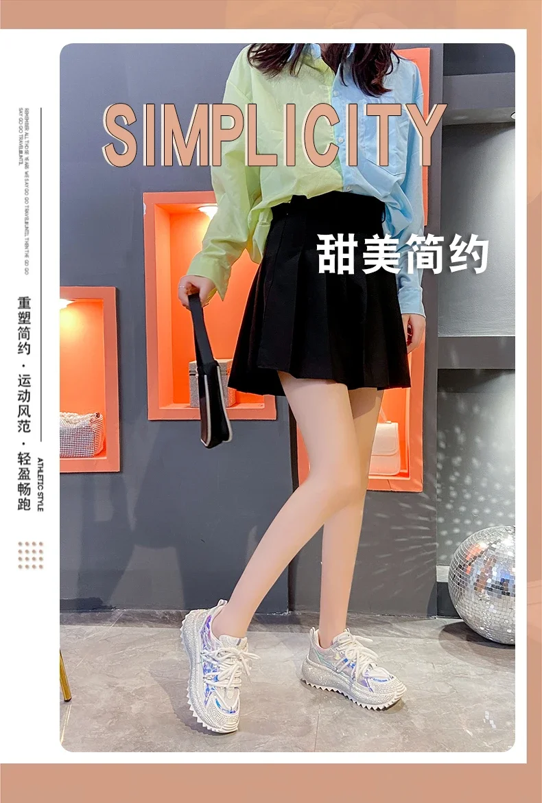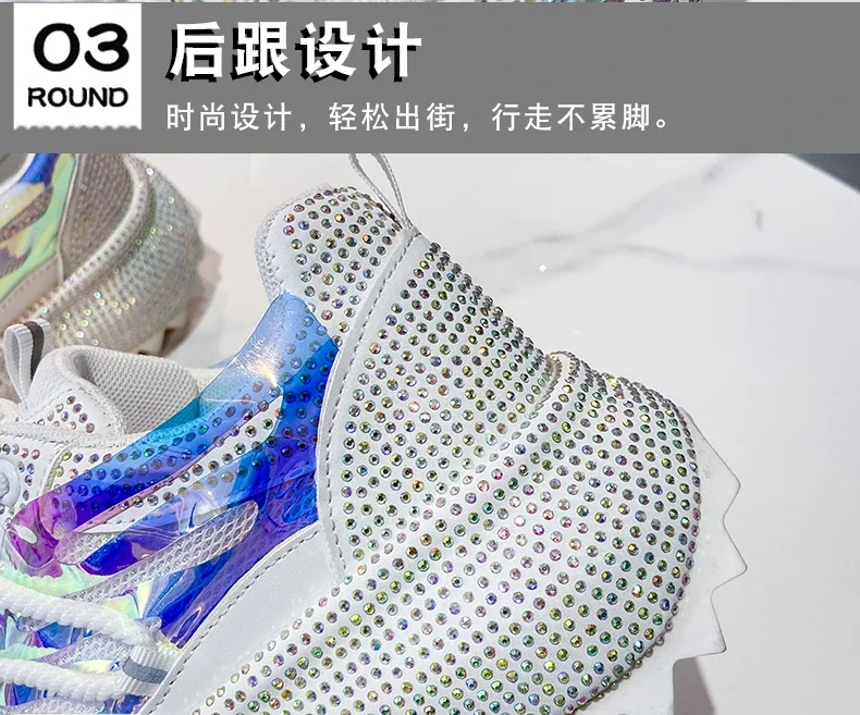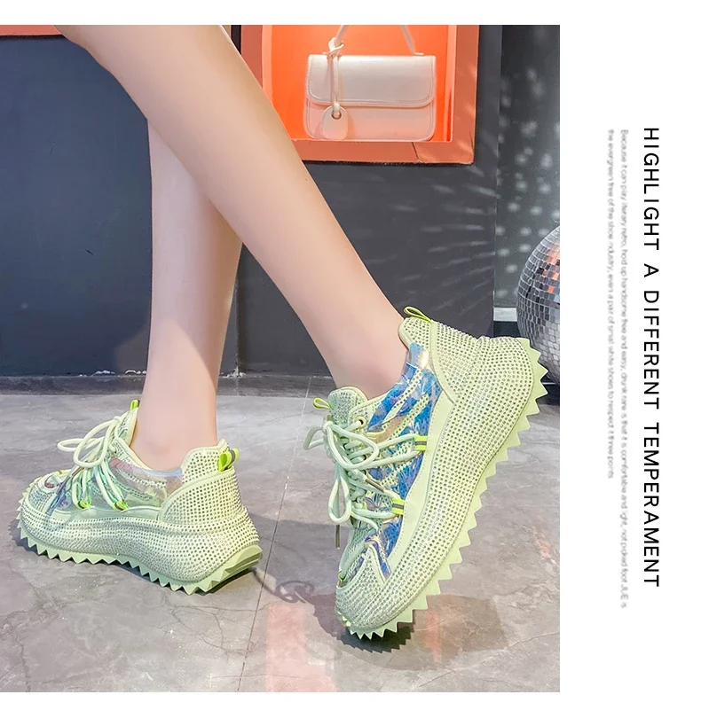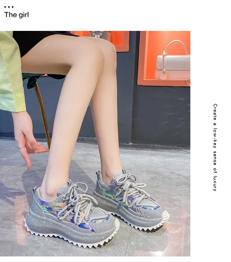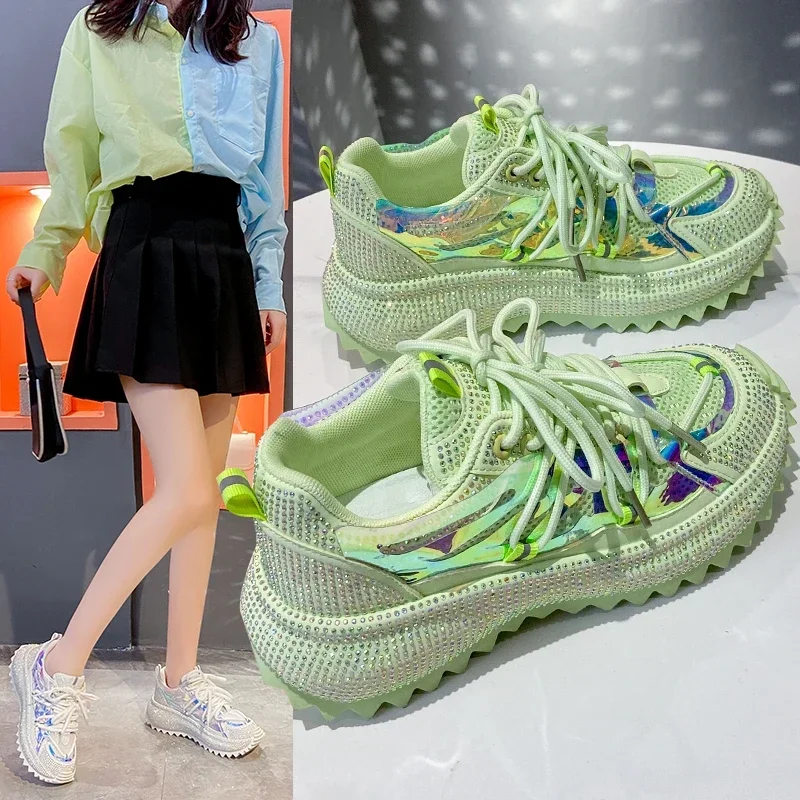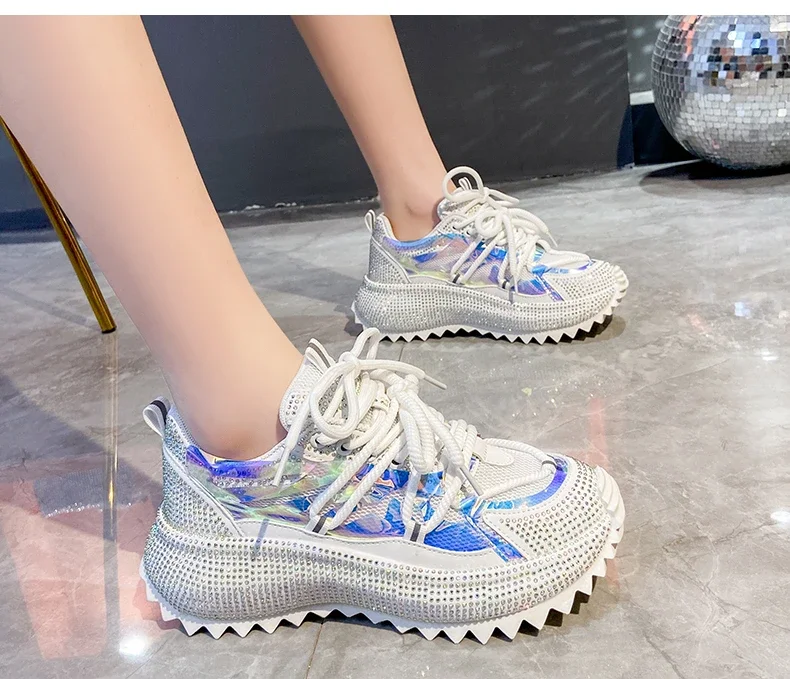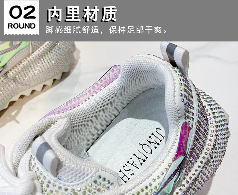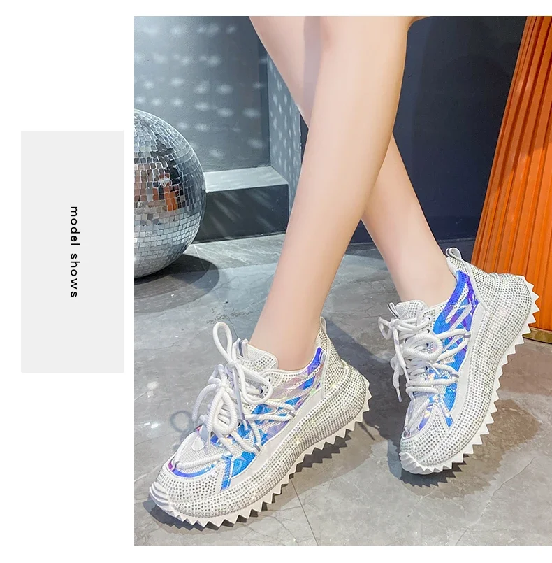 Full of Diamond Muffin Bottom Height increasing shoes Women 2024 Spring New Cross-strap Thick Sole Casual Fashion Running Shoes