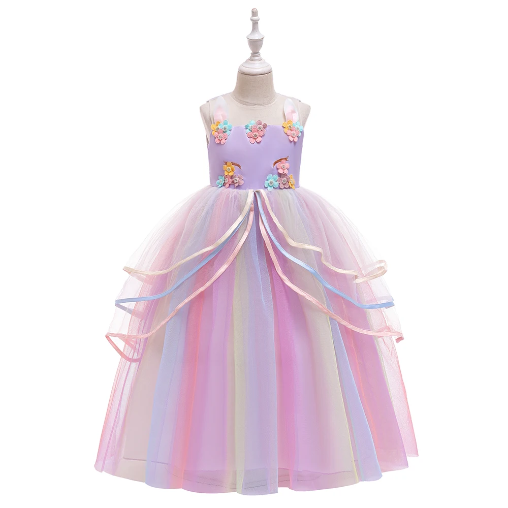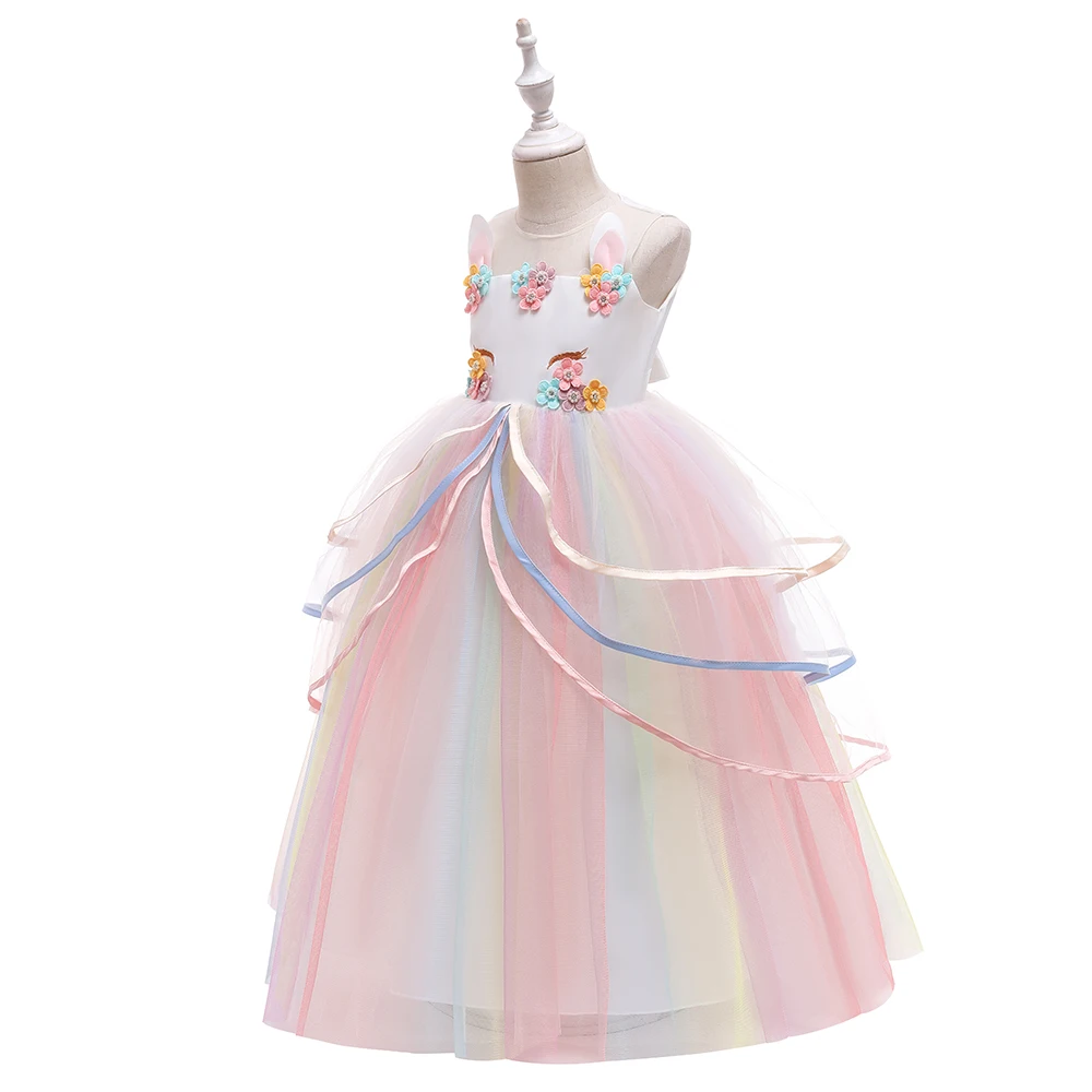 Girls Long Unicorn Sets Cosplay Dress Party Princess Gown Kids Carnival Pageant Christmas Clothes Girl Birthday Colorful Dresses