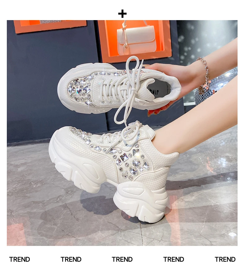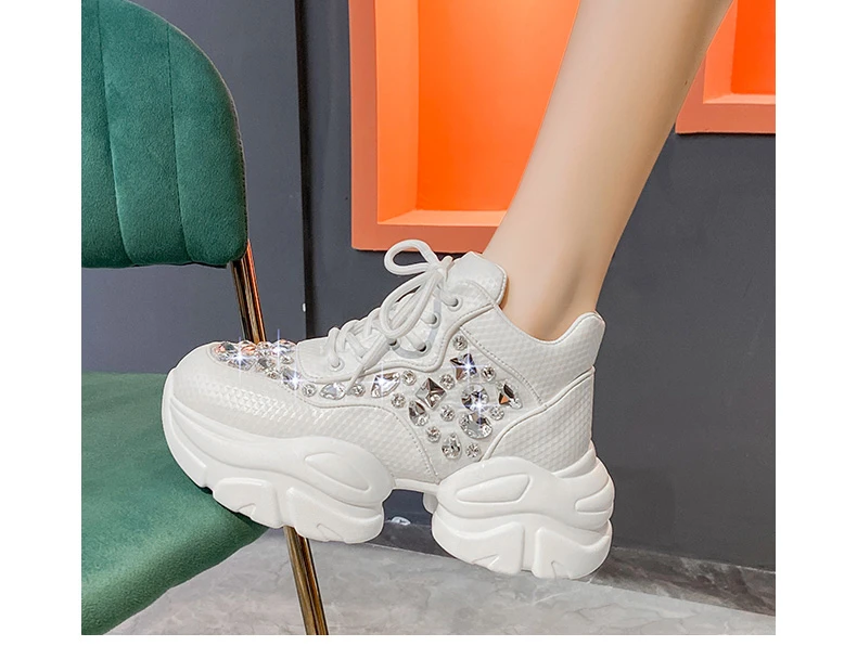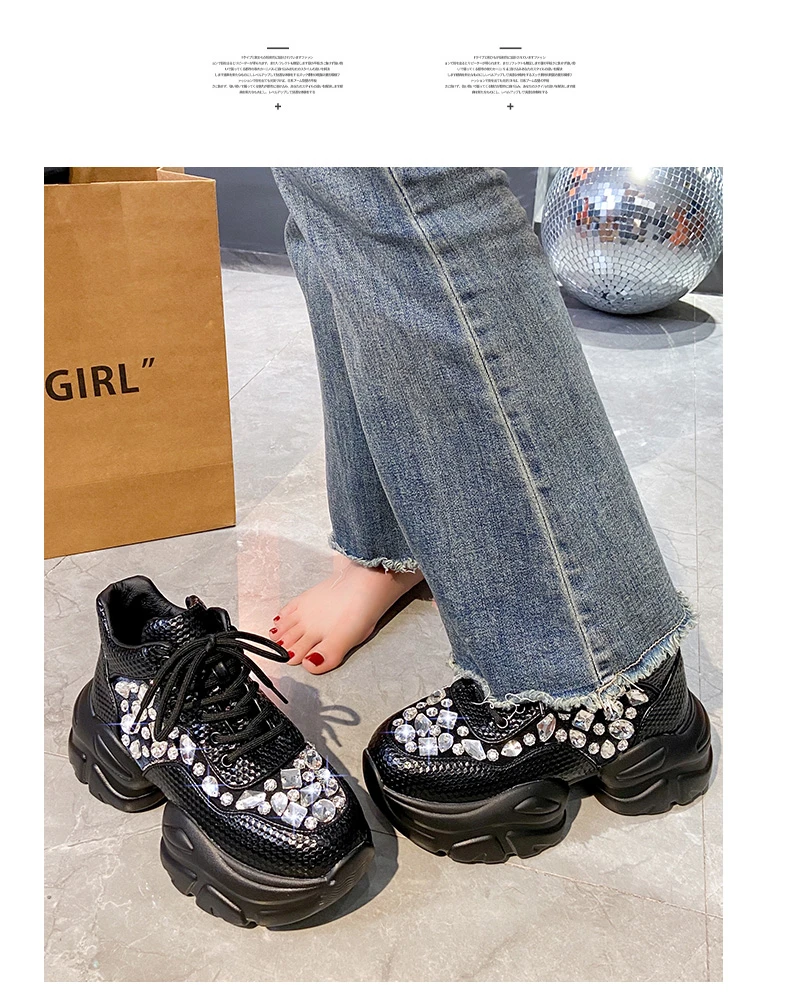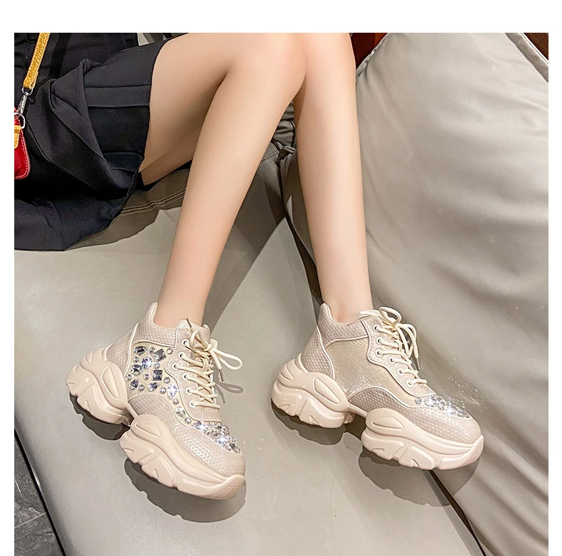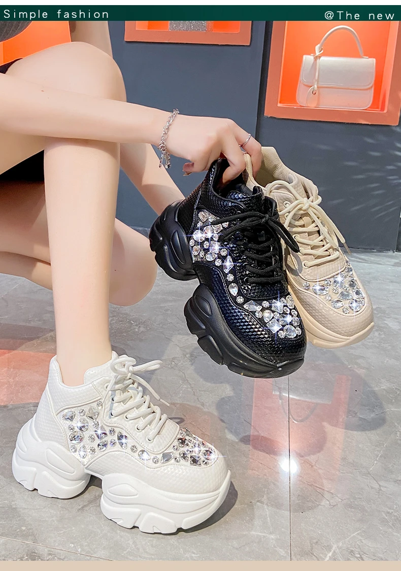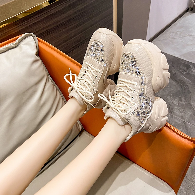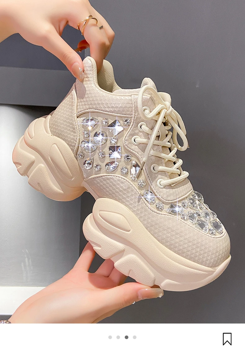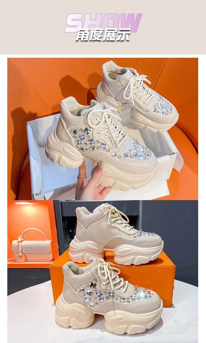 High Quality Thick soled Sports Womens Shoes with Diamond Inlay Design Fashionable Women’s Shoes Luxury Thick soled Casual Shoes