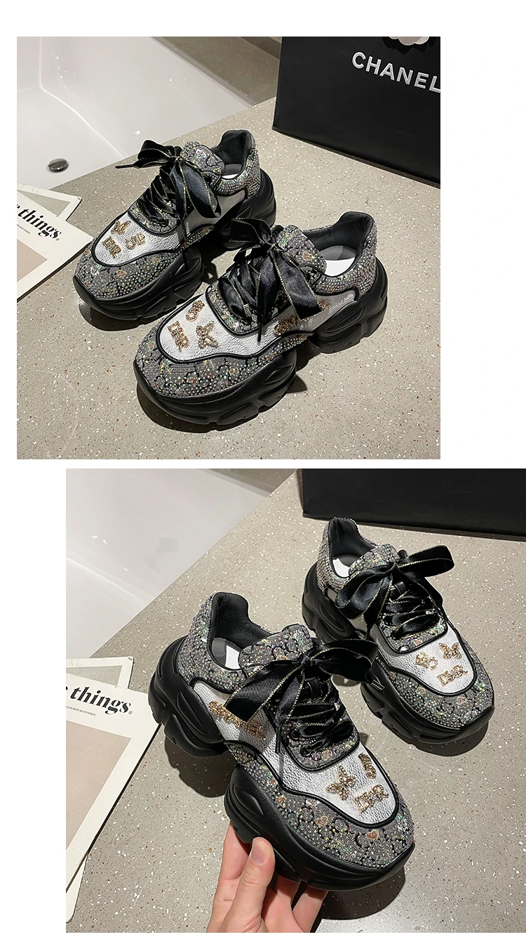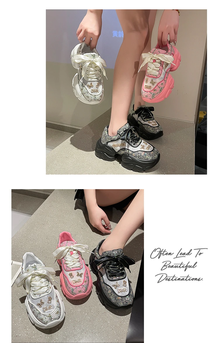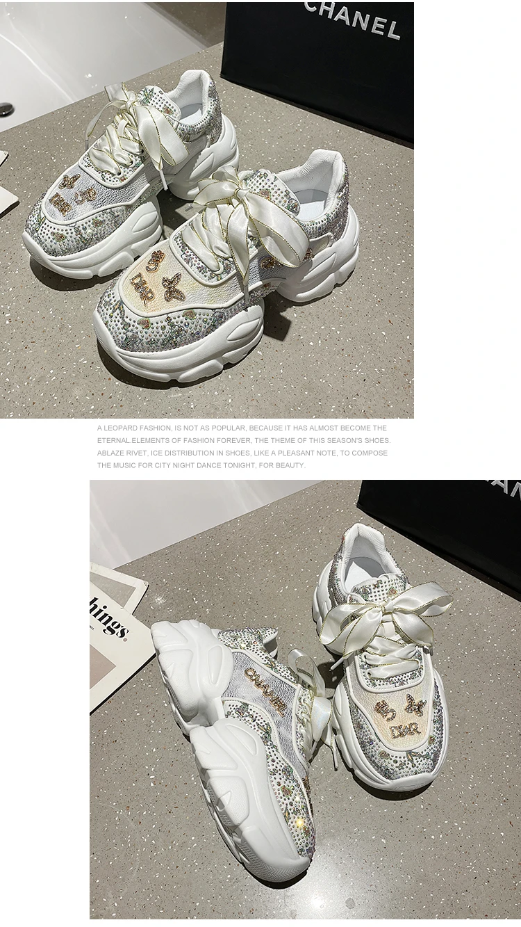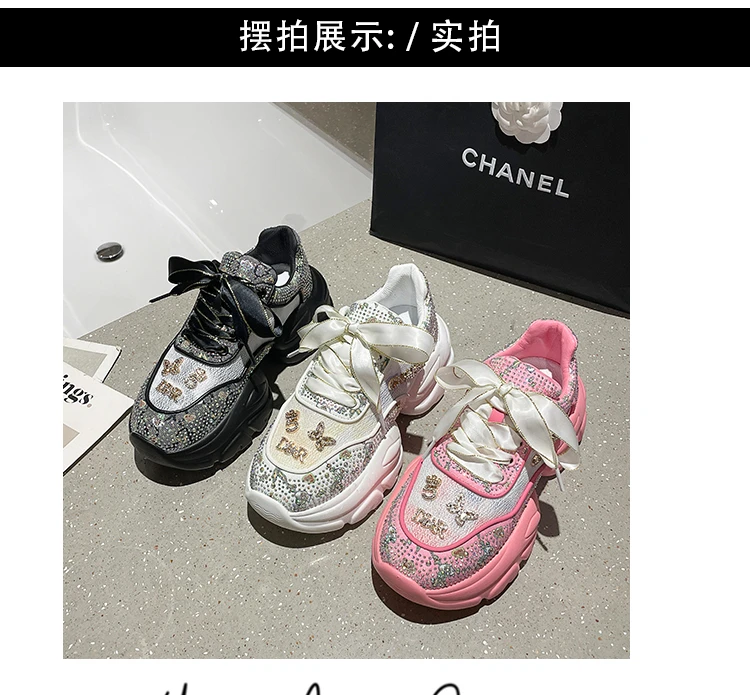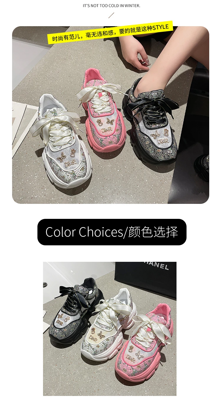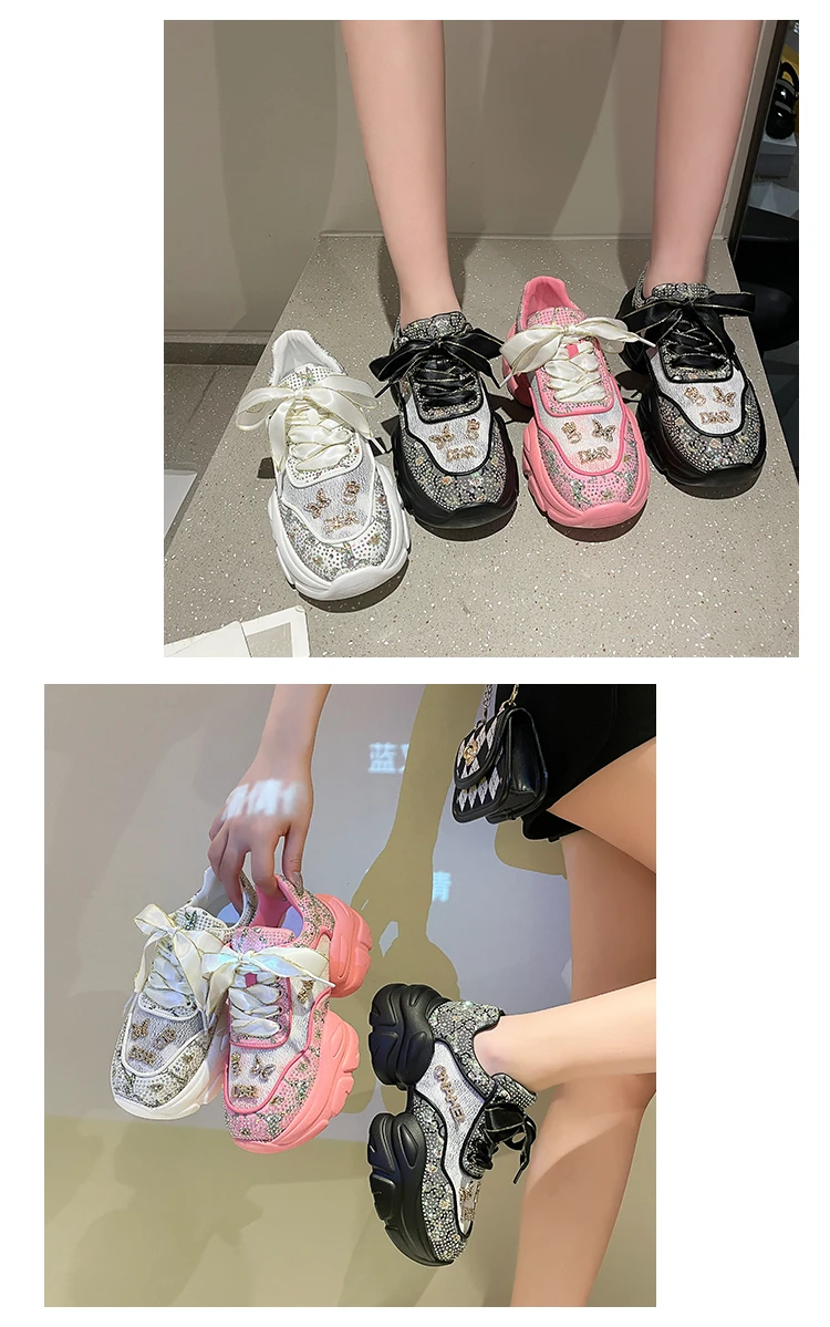 High Quality Women Shoes Rhinestone Women Sneakser Diamond Breathable Luxury Designers Casual Thick Bottoms Shoes Zapatos Mujer