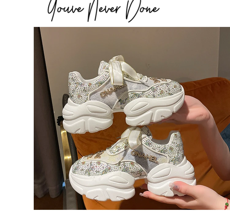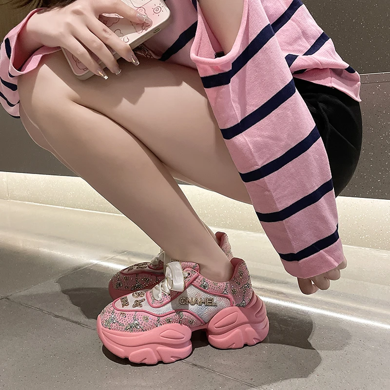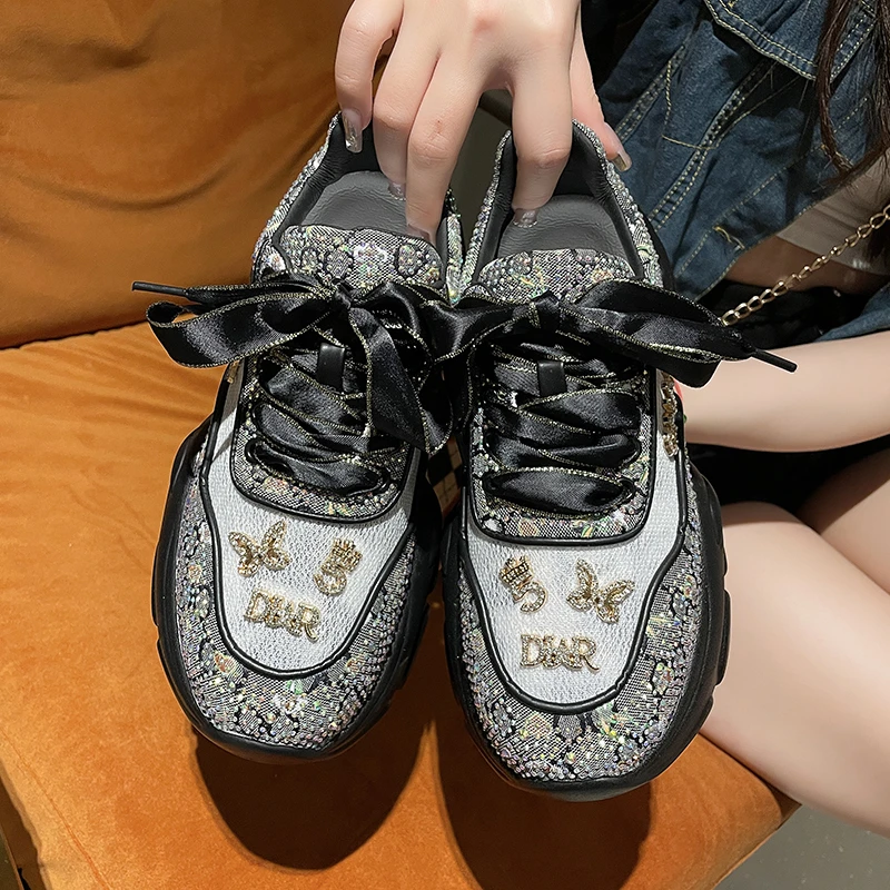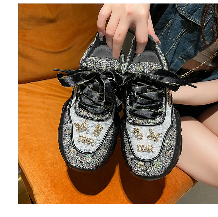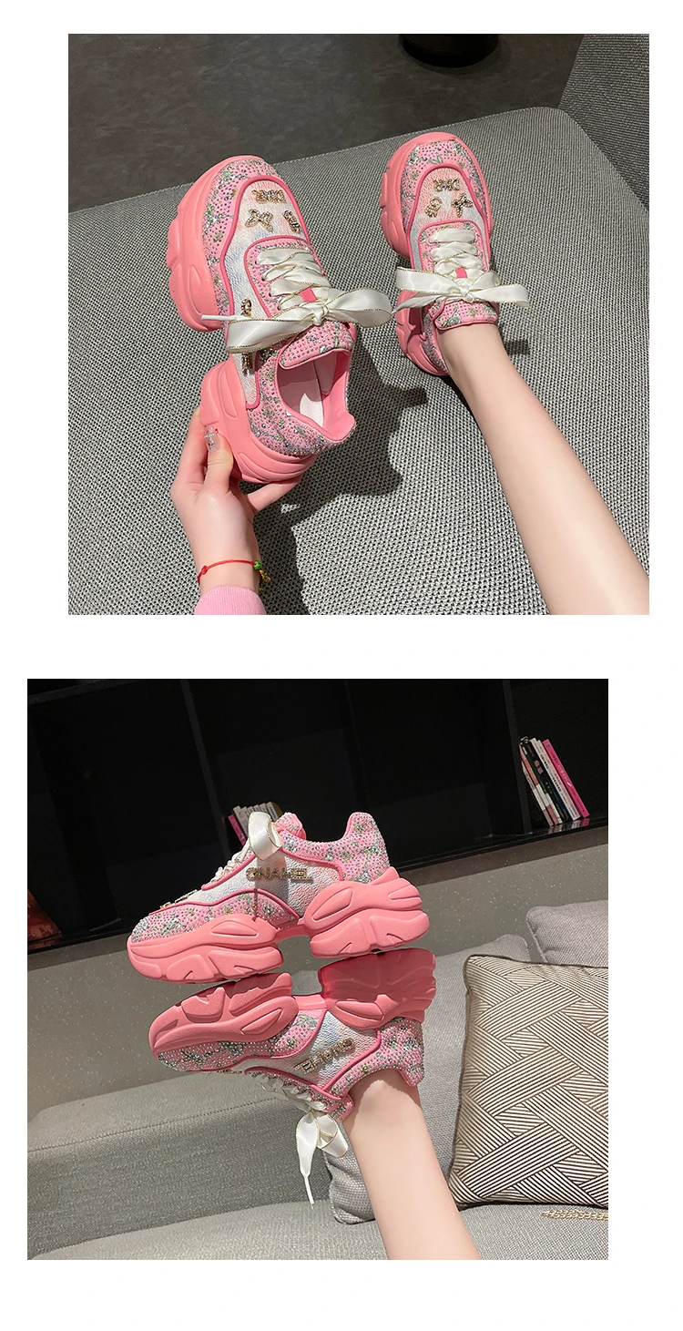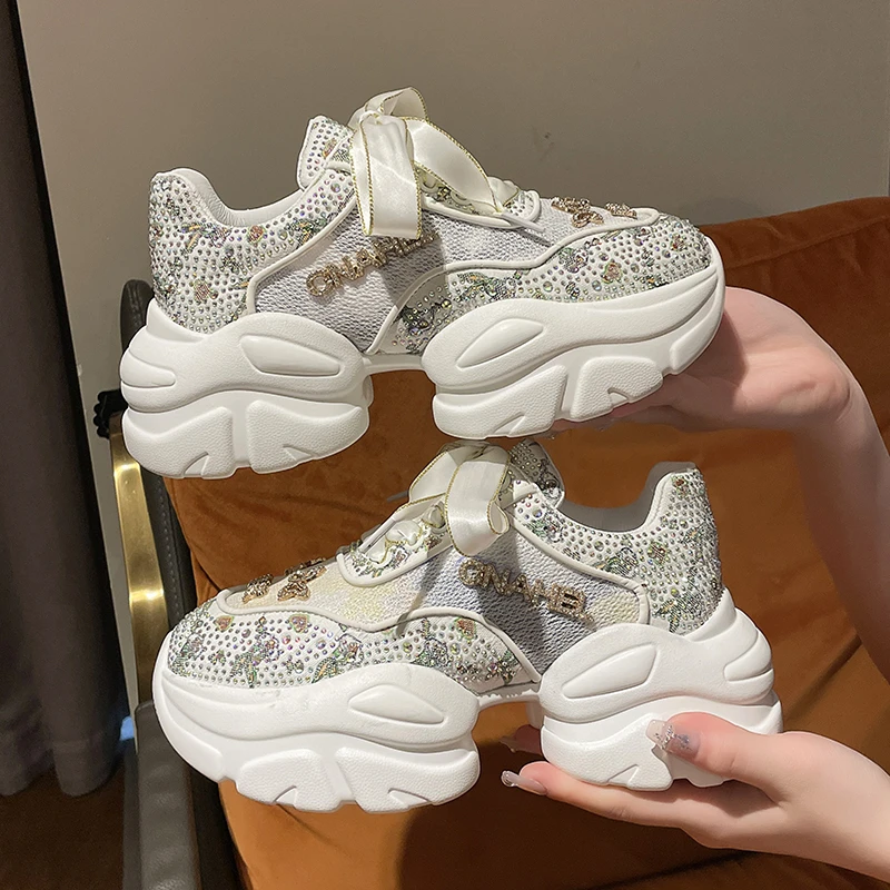 High Quality Women Shoes Rhinestone Women Sneakser Diamond Breathable Luxury Designers Casual Thick Bottoms Shoes Zapatos Mujer