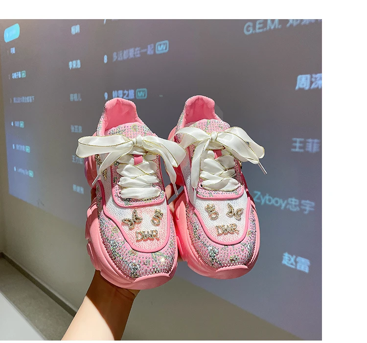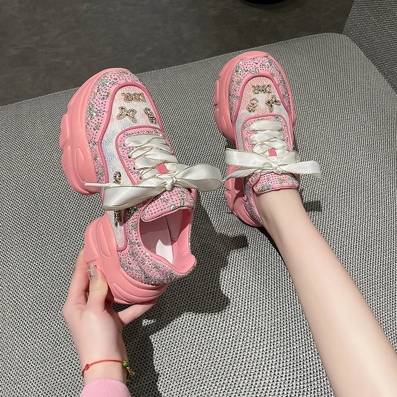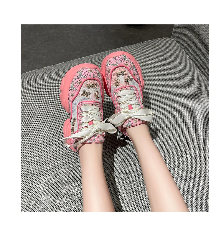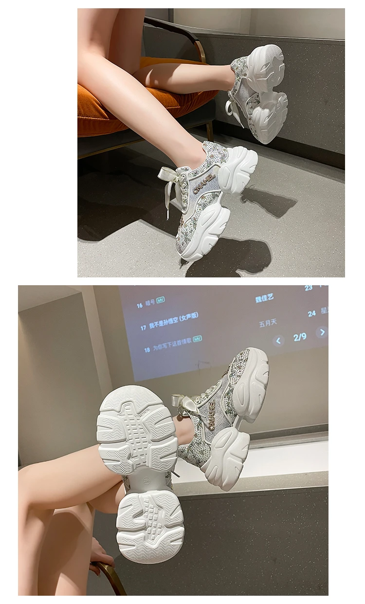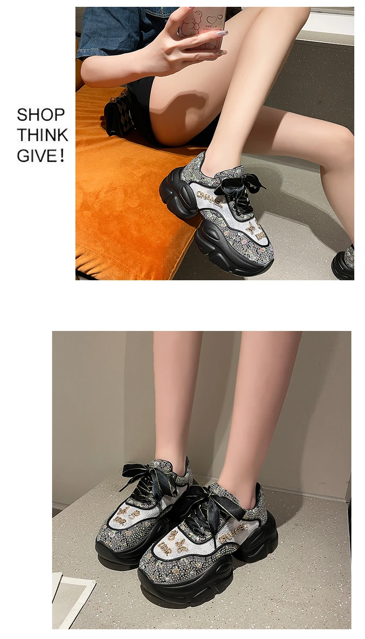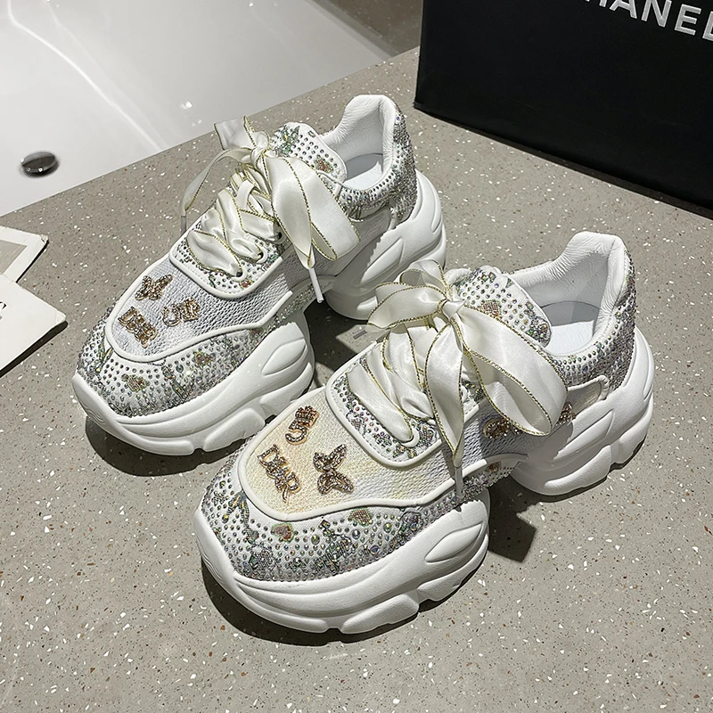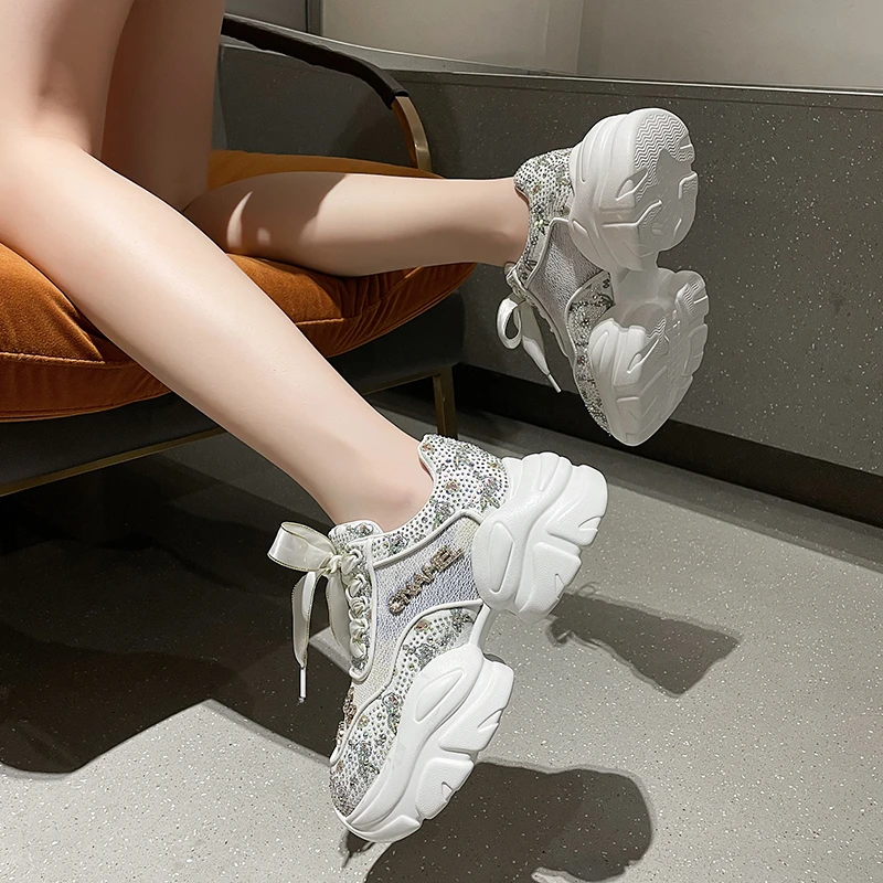 High Quality Women Shoes Rhinestone Women Sneakser Diamond Breathable Luxury Designers Casual Thick Bottoms Shoes Zapatos Mujer