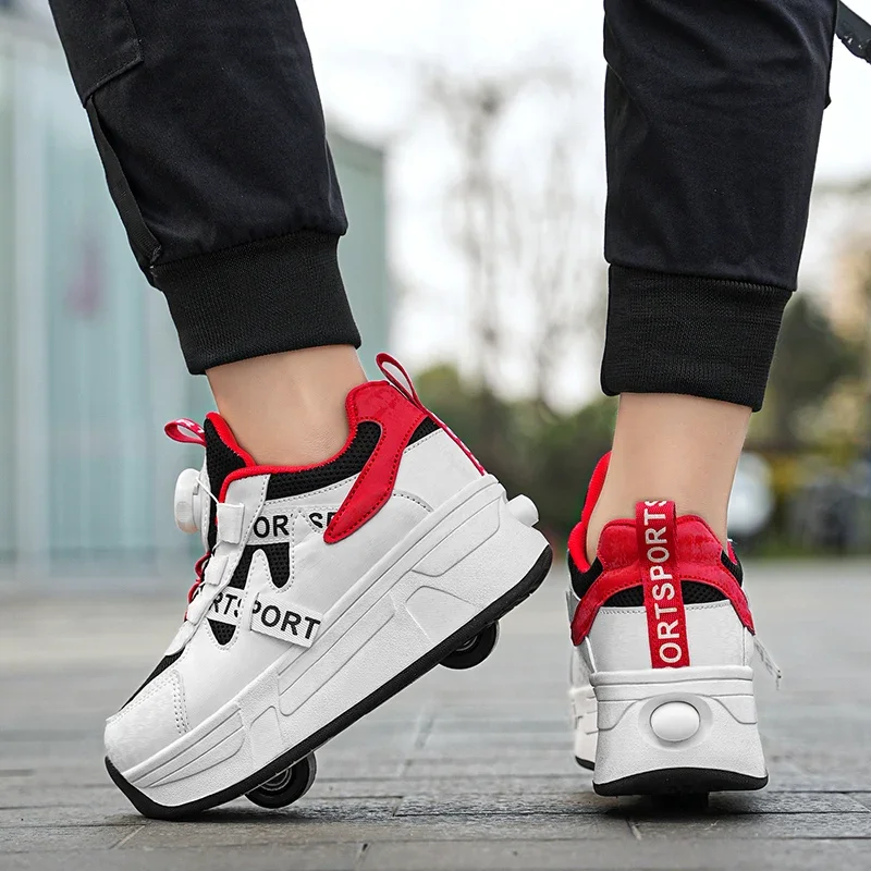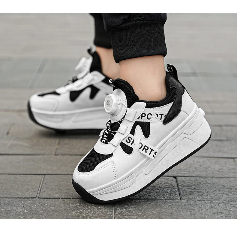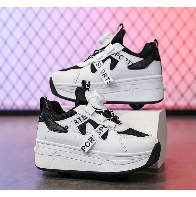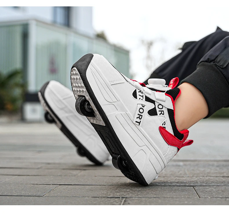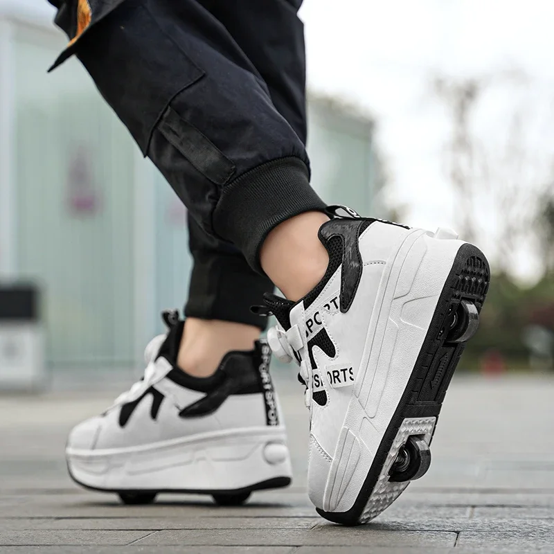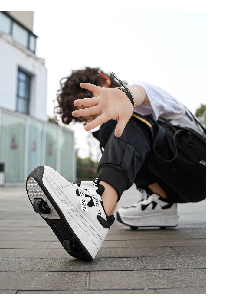 Kids Roller Skate Shoes 2 Wheels Fashion Boys Girls Skating Shoes Casual Parkour Outdoor Deformation Sports Running Sneaker Gift
