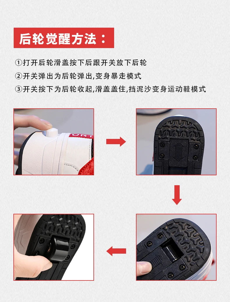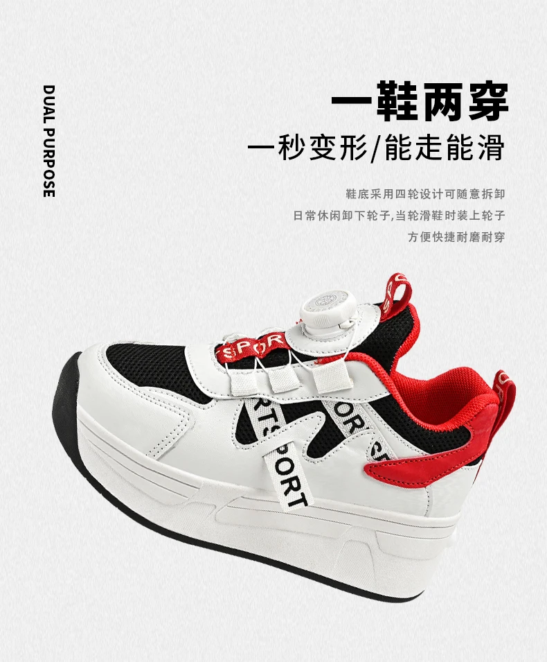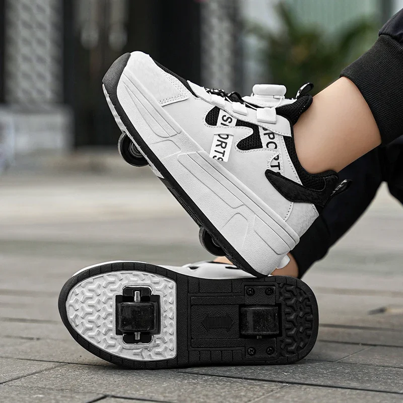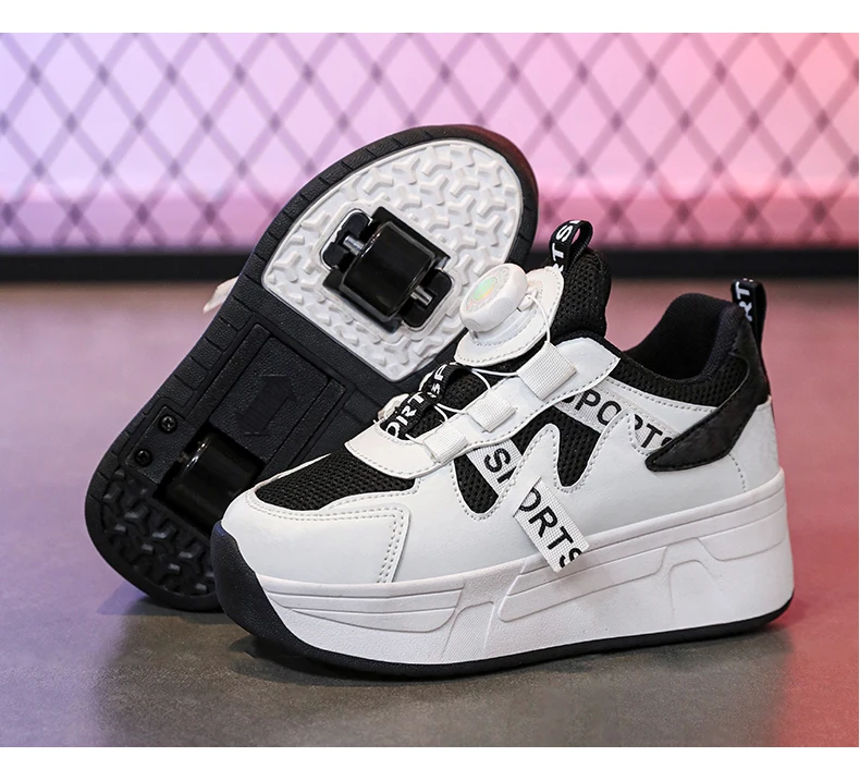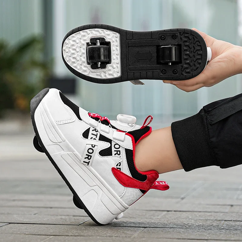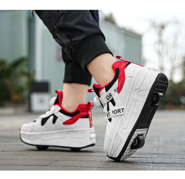 Kids Roller Skate Shoes 2 Wheels Fashion Boys Girls Skating Shoes Casual Parkour Outdoor Deformation Sports Running Sneaker Gift