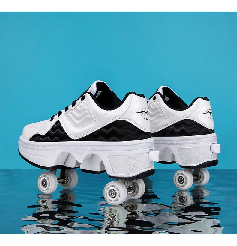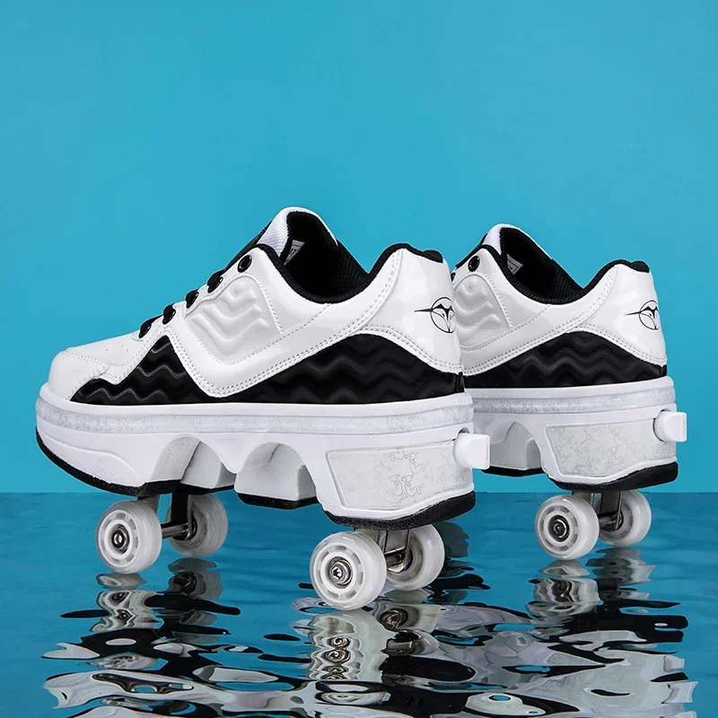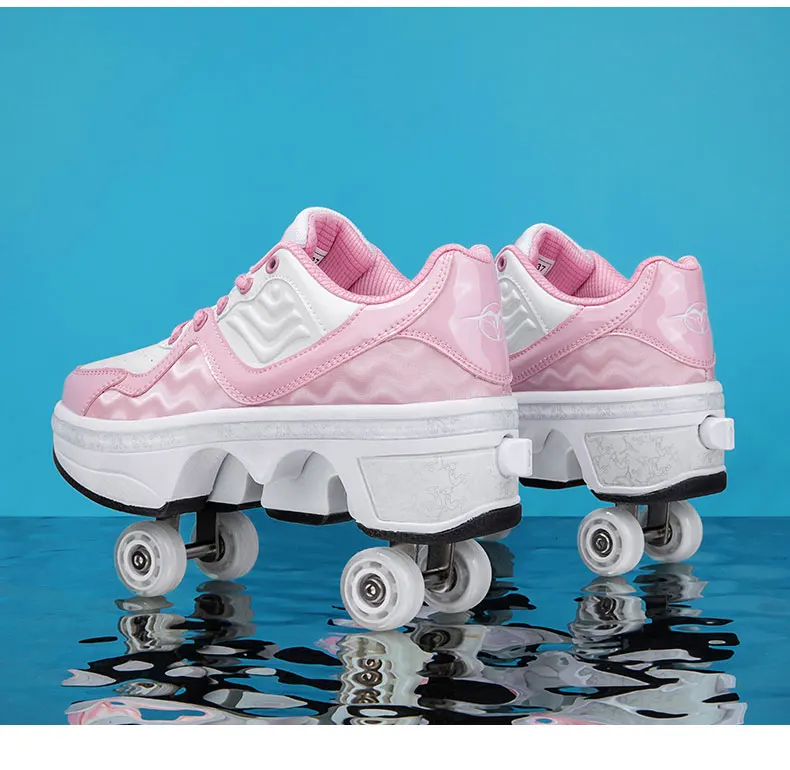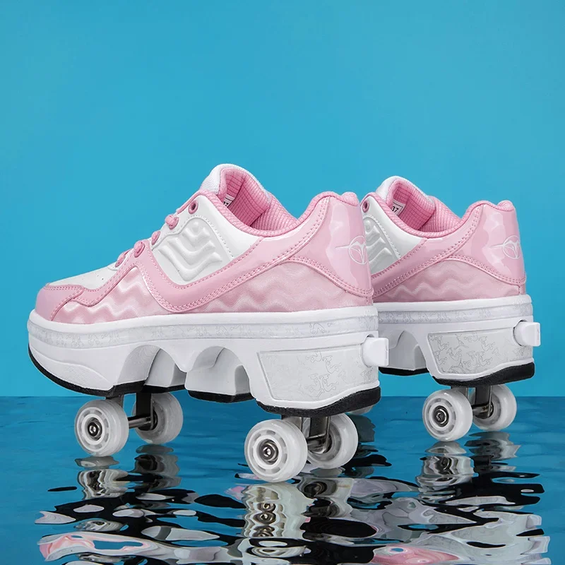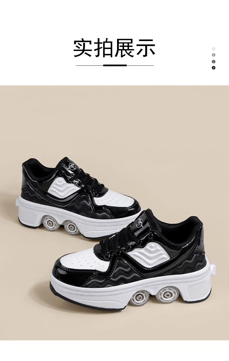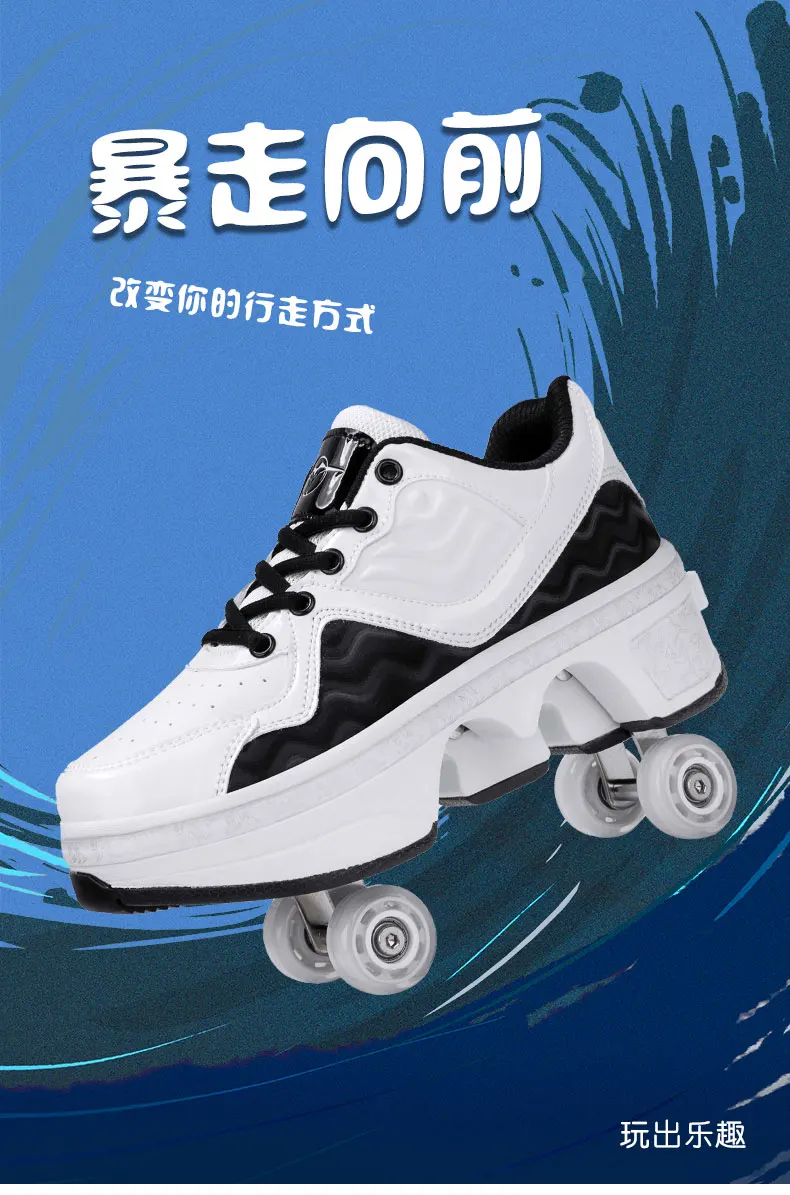Kids Roller Skate Shoes Boys Girls Outdoor Children 4 Wheels Detachable Casual Running Fashion Deformation Parkour Skating Shoes