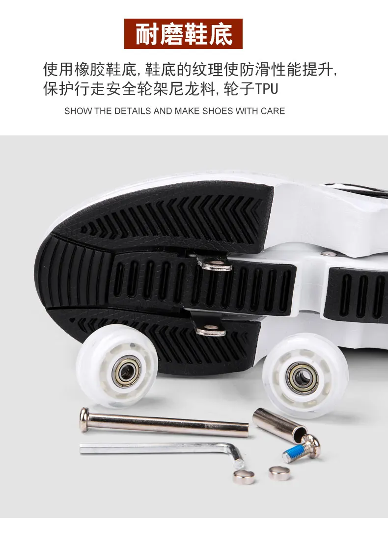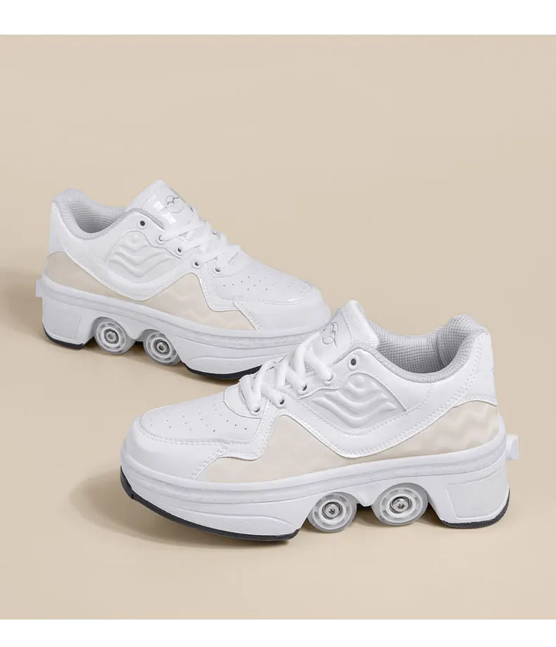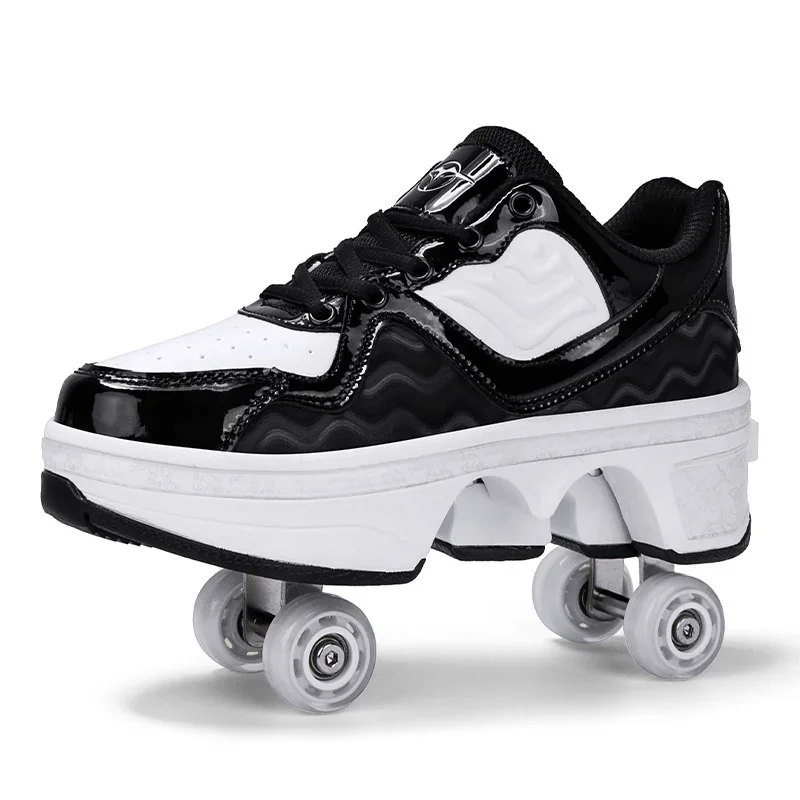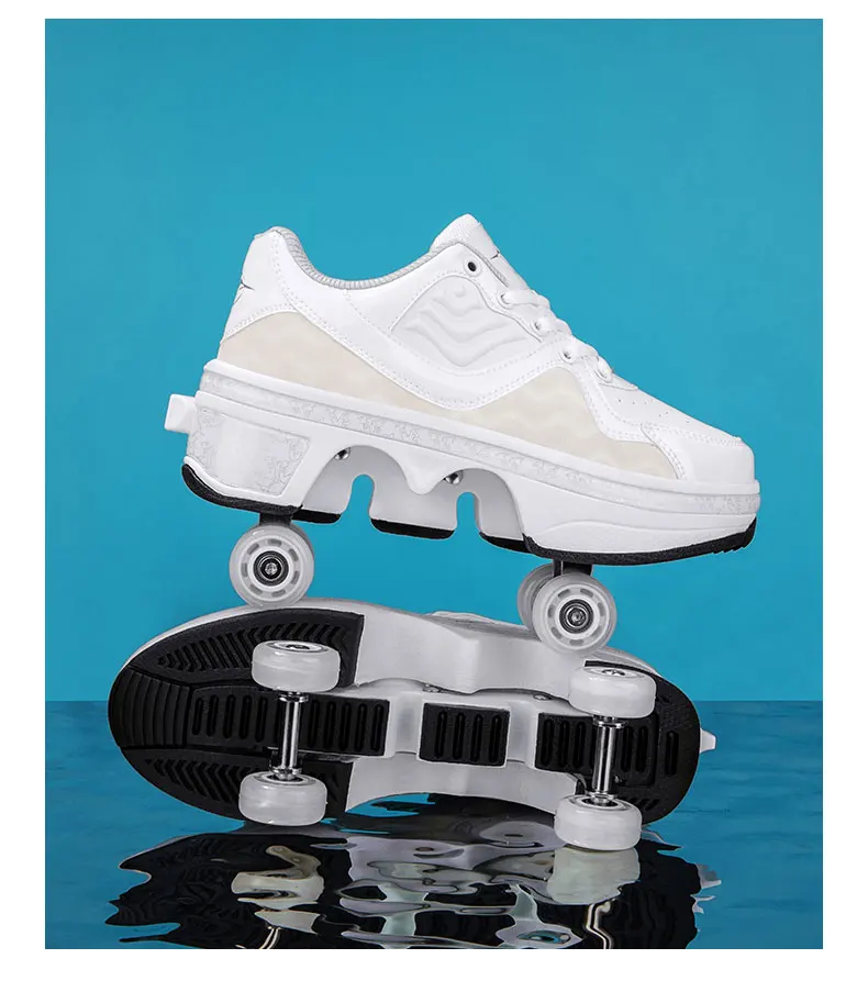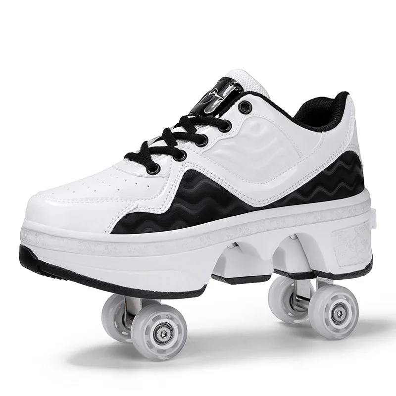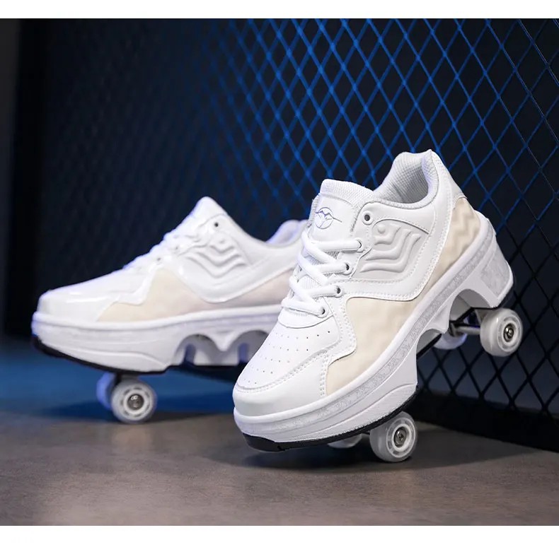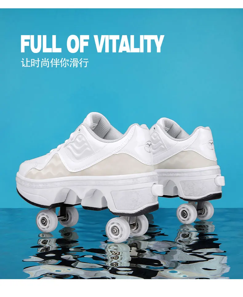 Kids Roller Skate Shoes Boys Girls Outdoor Children 4 Wheels Detachable Casual Running Fashion Deformation Parkour Skating Shoes