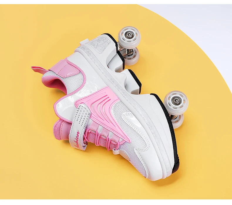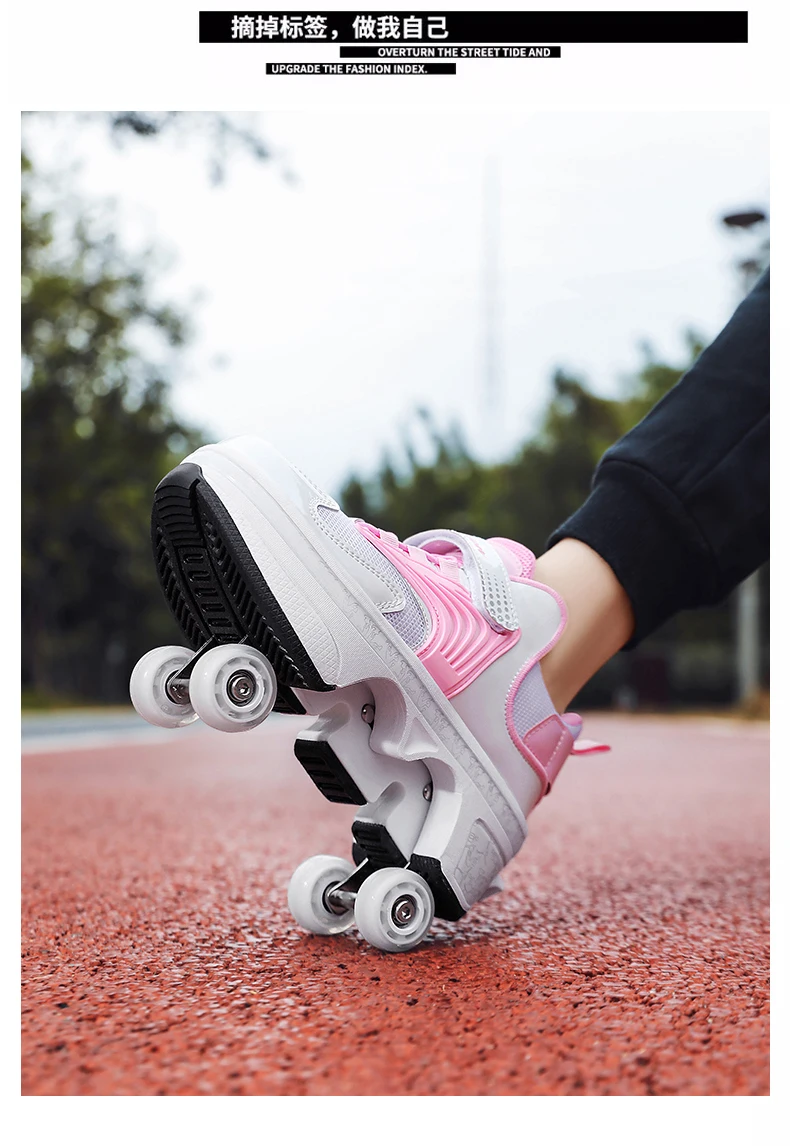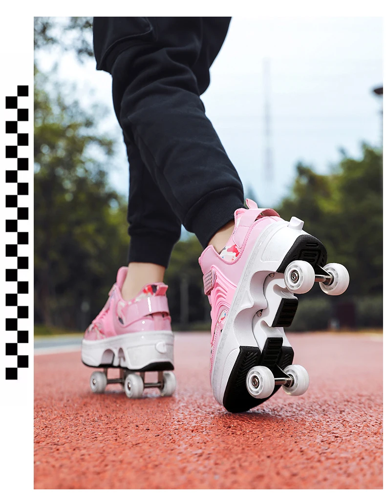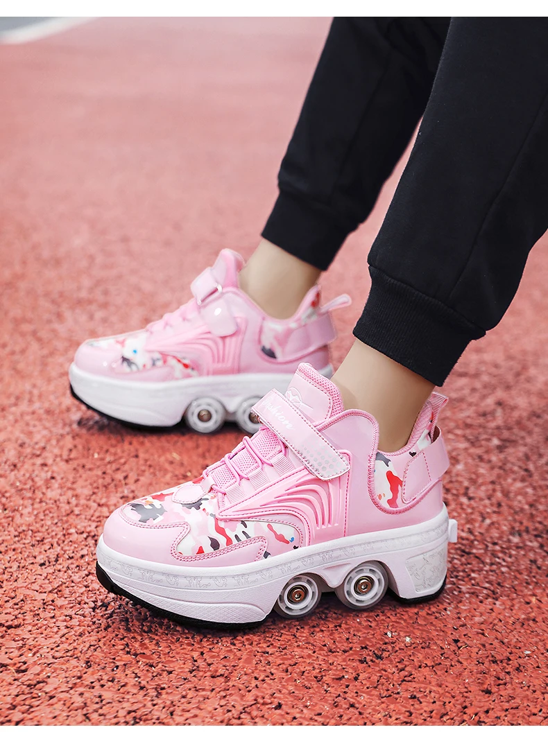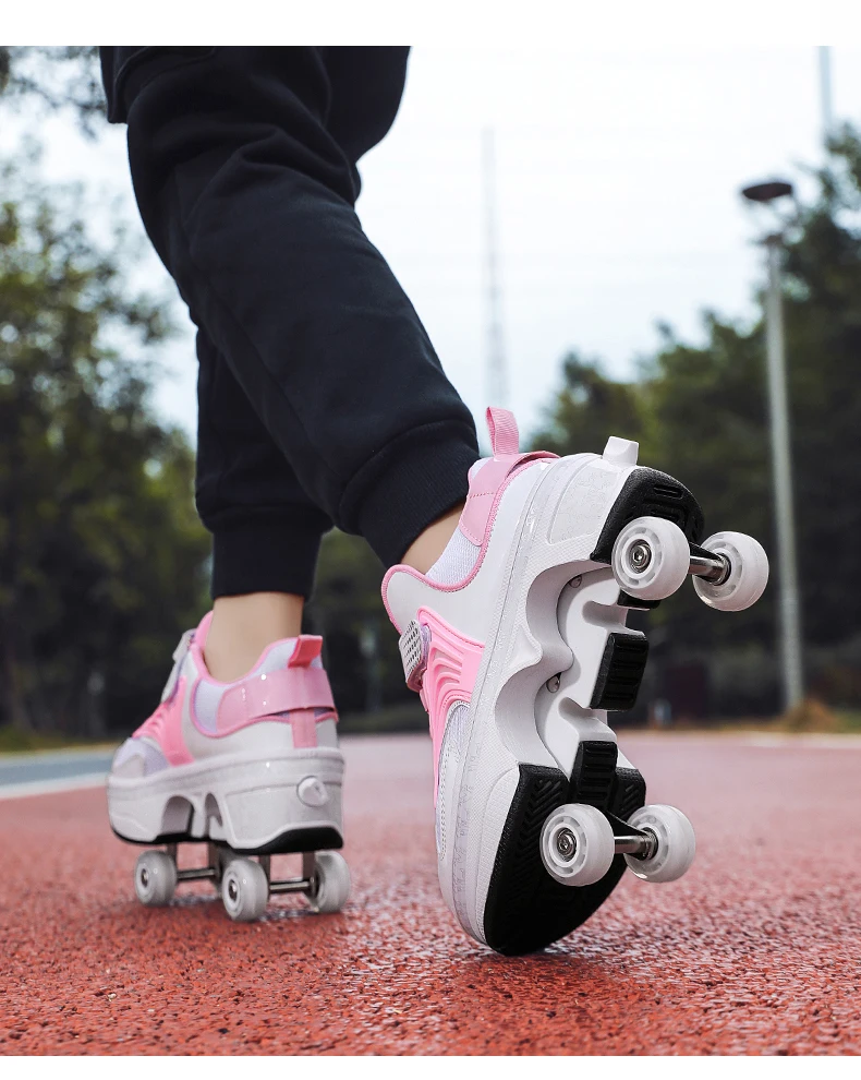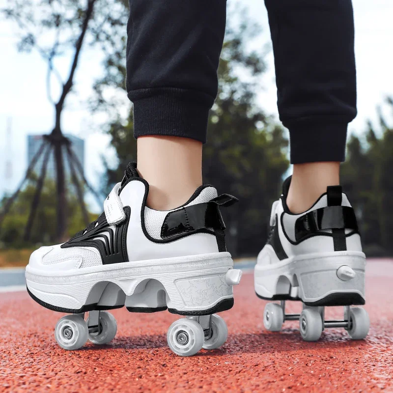 Kids Roller Skate Shoes Children Boys Girls 4 Wheels Detachable Casual Running Fashion Parkour Deformation Outdoor Skating Shoes