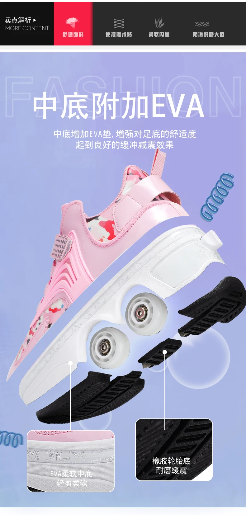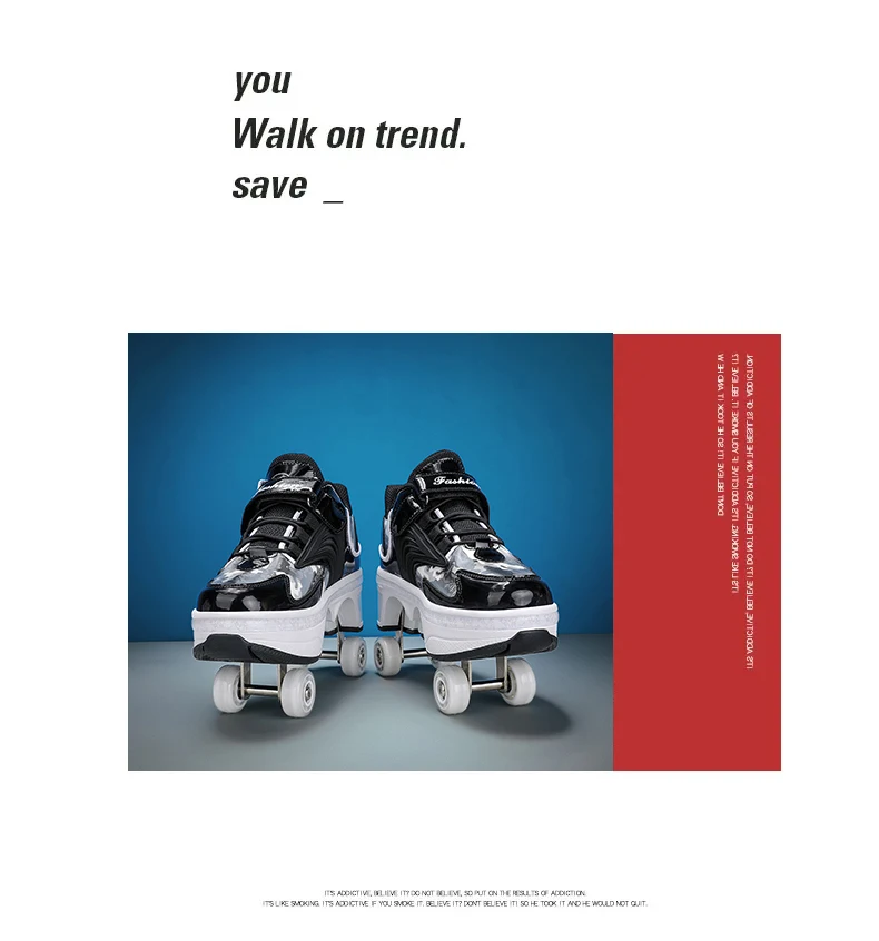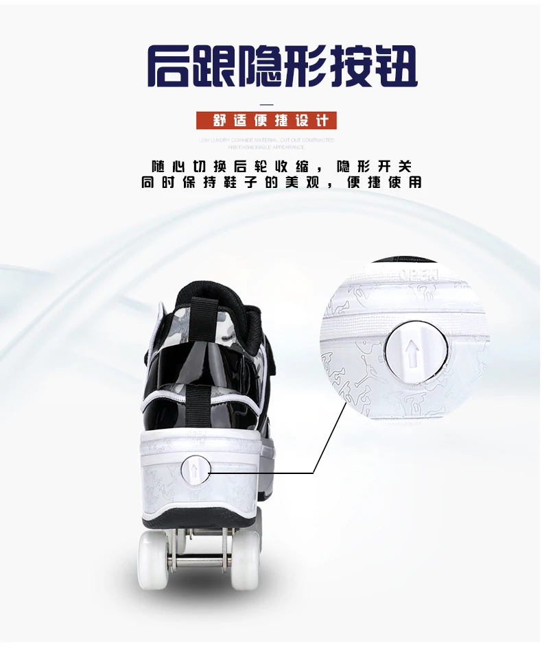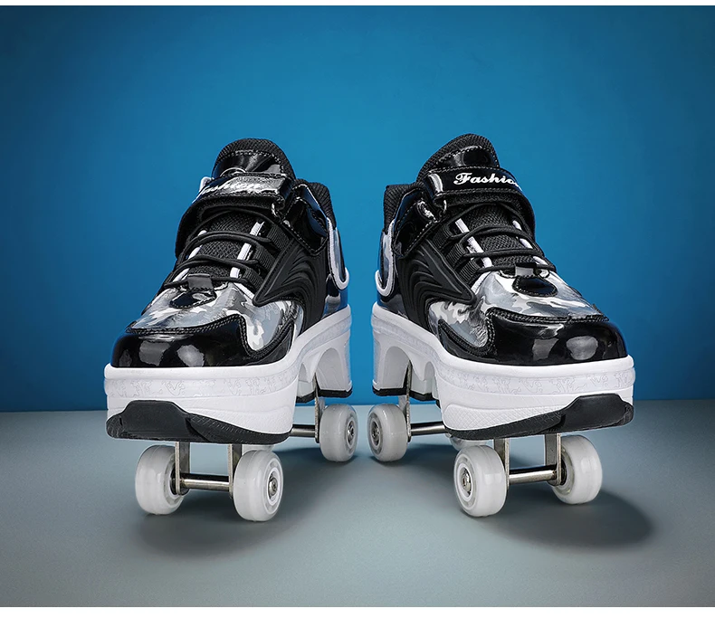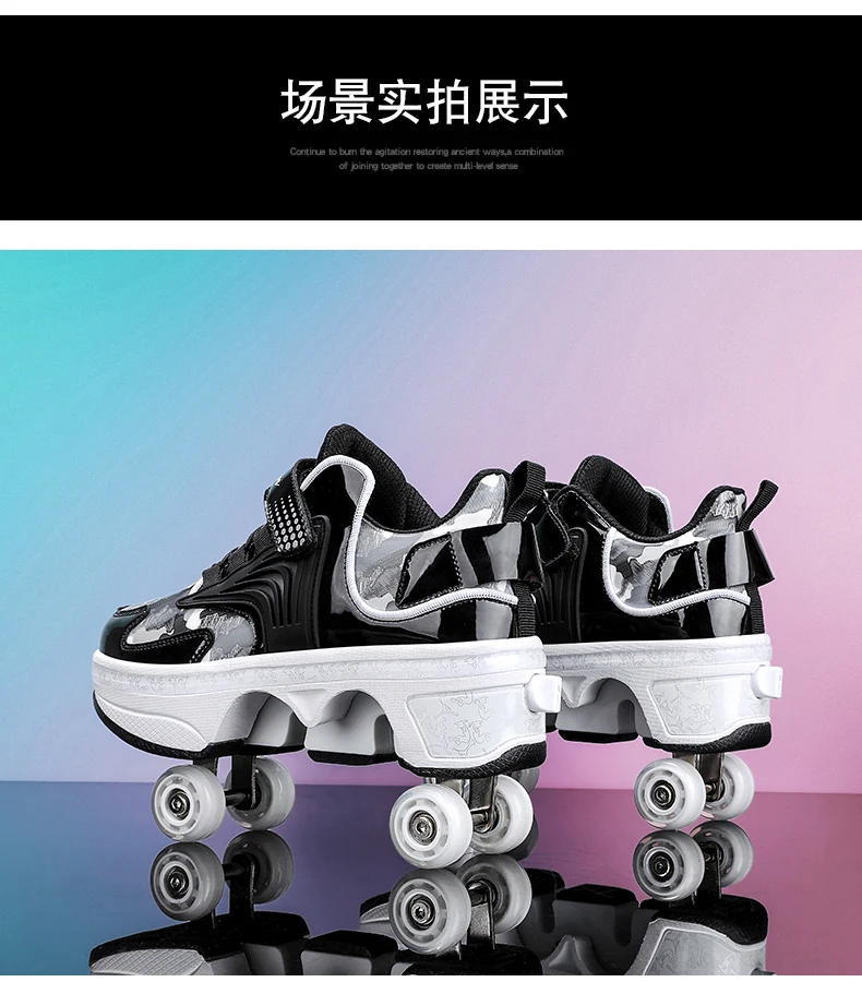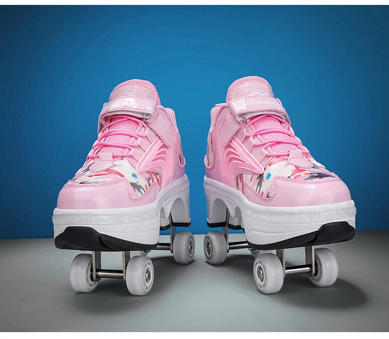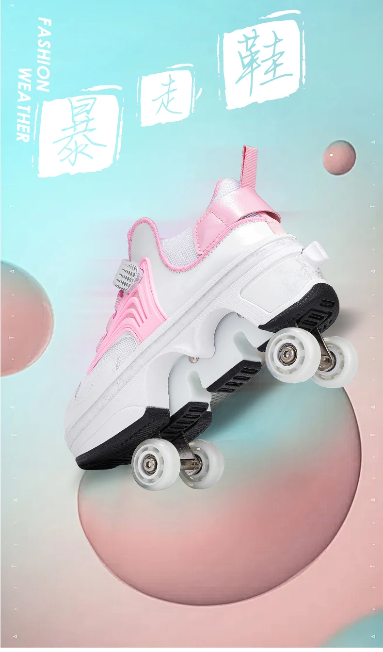 Kids Roller Skate Shoes Children Boys Girls 4 Wheels Detachable Casual Running Fashion Parkour Deformation Outdoor Skating Shoes
