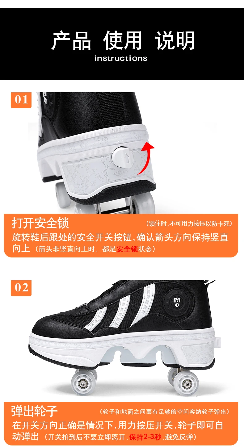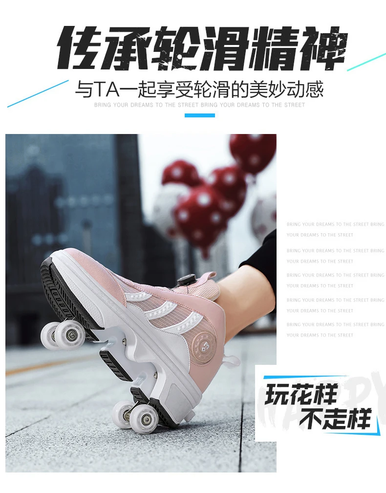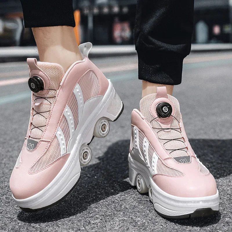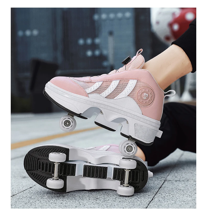 Kids Roller Skate Shoes Children Rollerskates Boys Girls Detachable 4 Wheels Fashion Deformation Outdoor Sports Skating Shoes