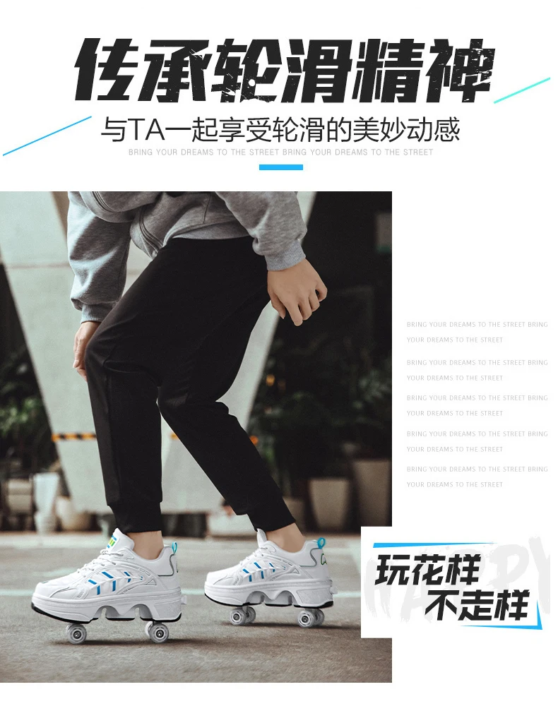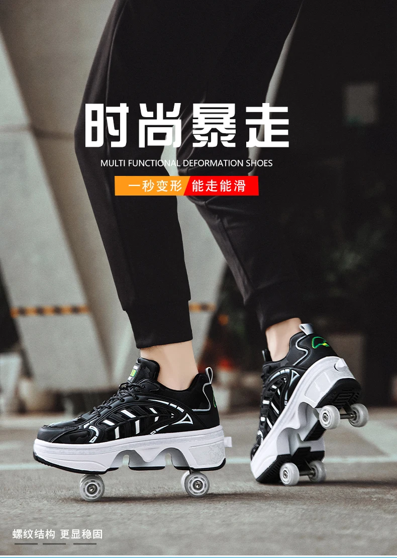 Kids Roller Skate Shoes Children Sports Roller Skates Fashion Boys Girls Detachable 4 Wheels Deformation Outdoor Skating Shoes
