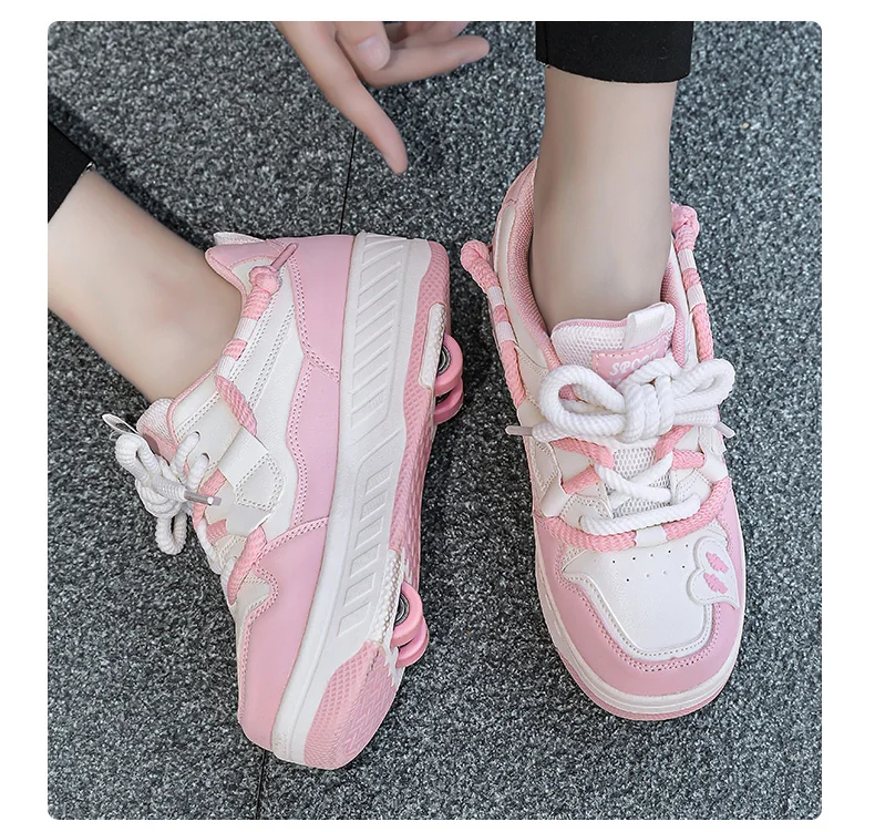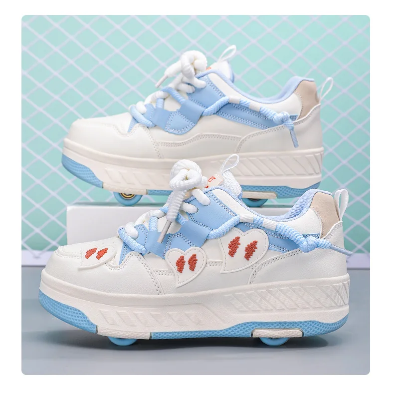 Kids Roller Skate Shoes Children With 4 Wheels Rollerskates Fashion Girls Boys Outdoor Deformation Skating Shoes Sneakers Sports