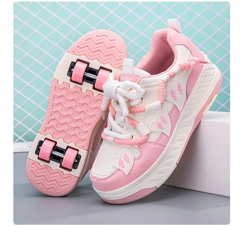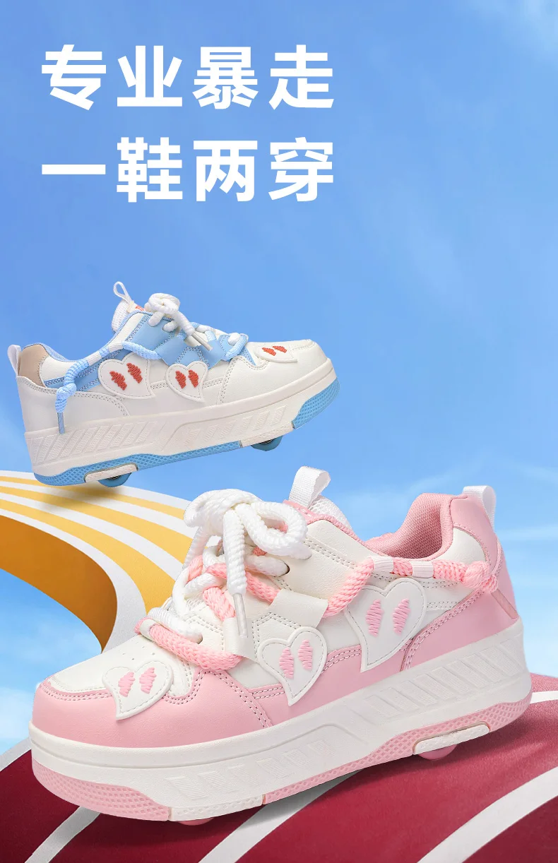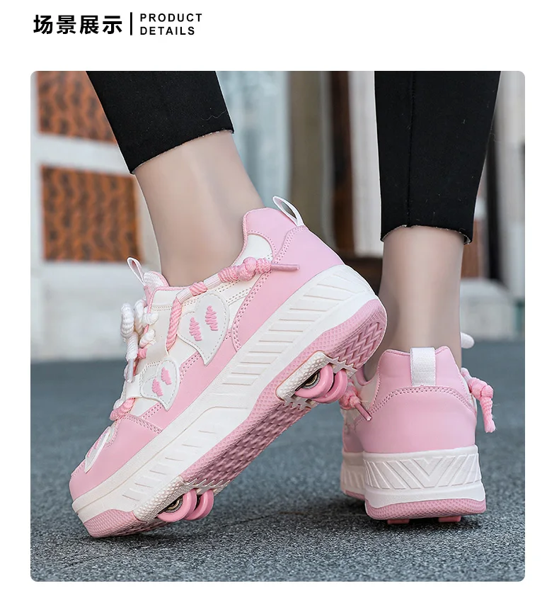 Kids Roller Skate Shoes Children With 4 Wheels Rollerskates Fashion Girls Boys Outdoor Deformation Skating Shoes Sneakers Sports
