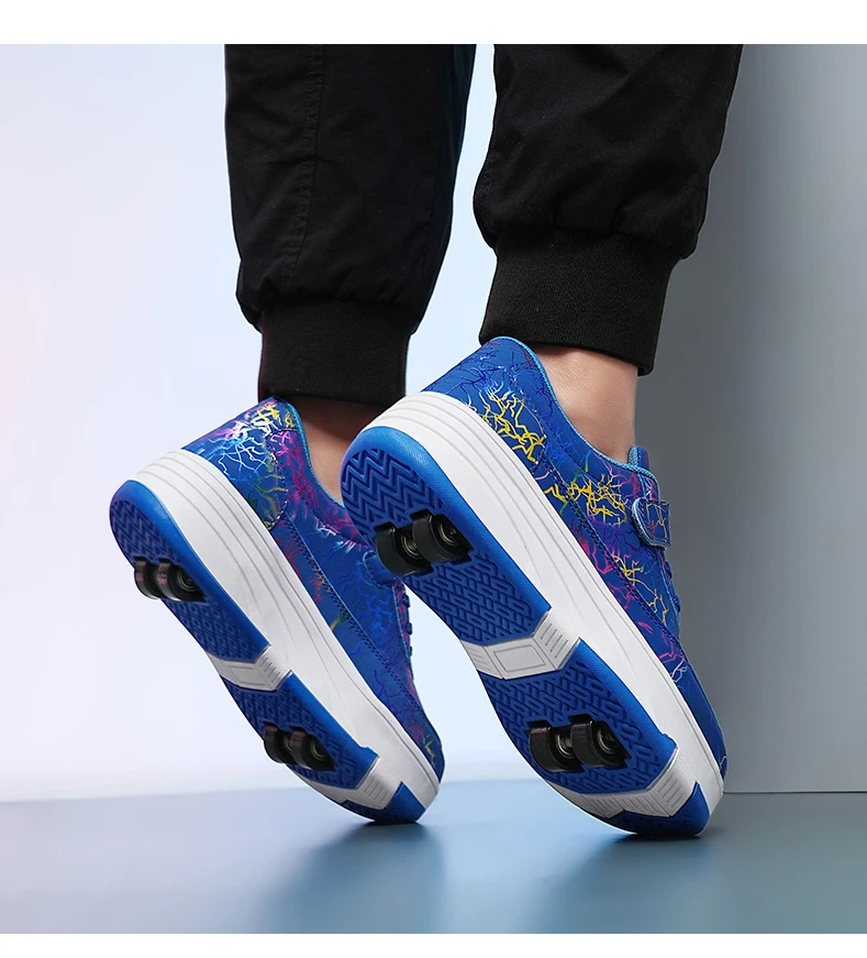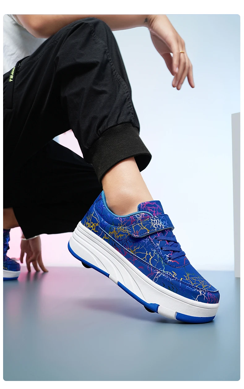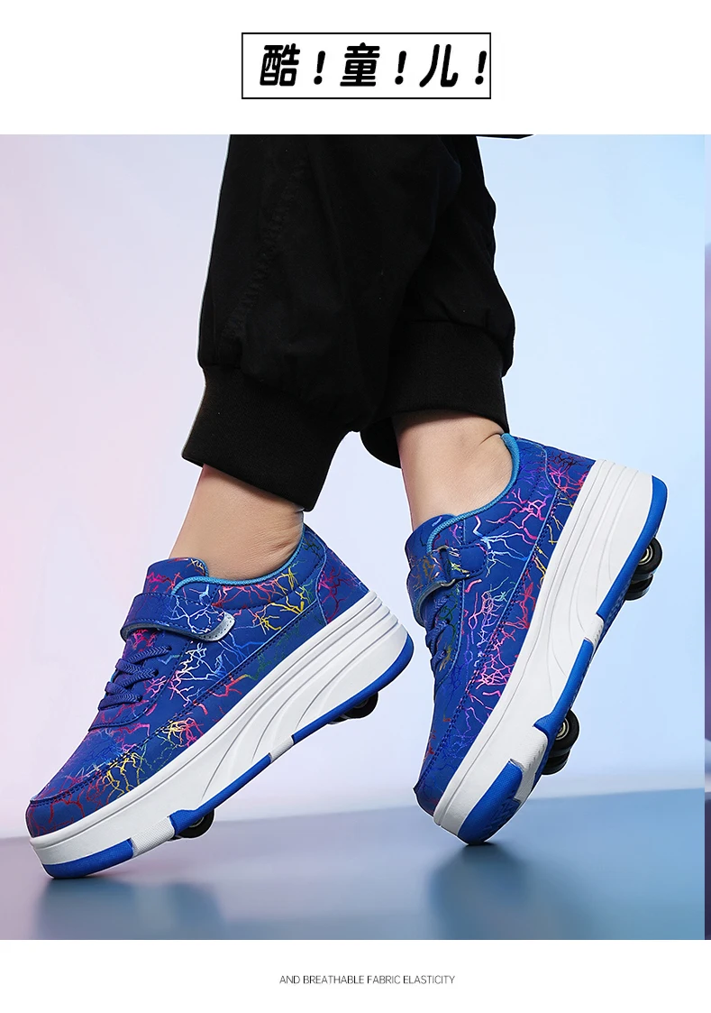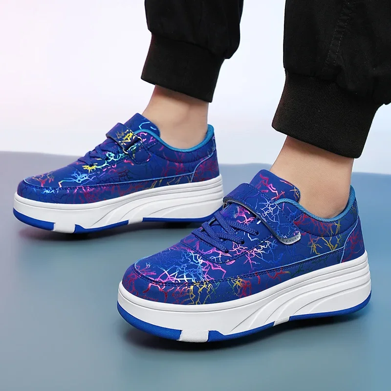 Kids Roller Skate Shoes Deformation Outdoor Children Fashion 2 Wheels Boys Girls Casual Detachable Parkour Running Skating Shoes