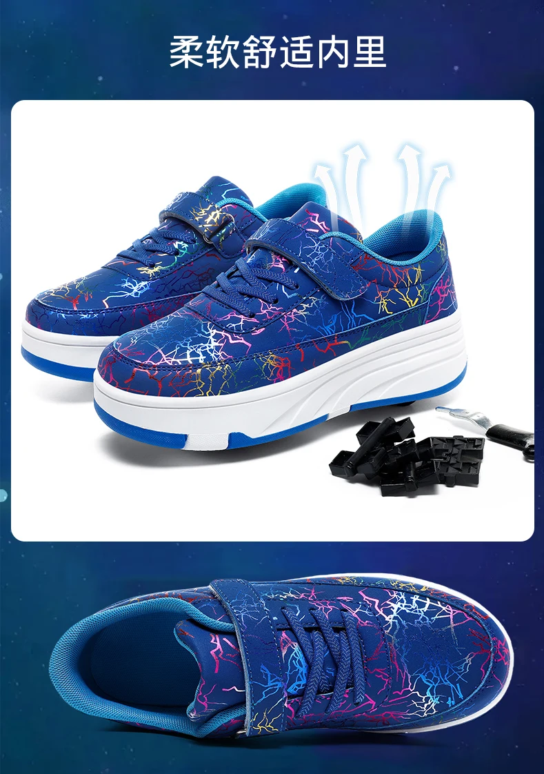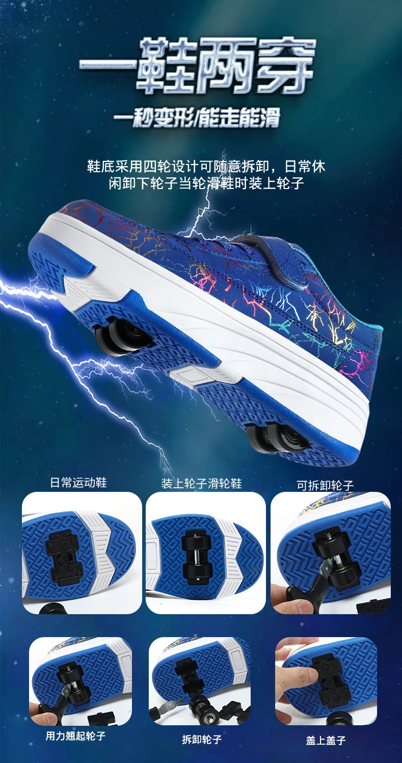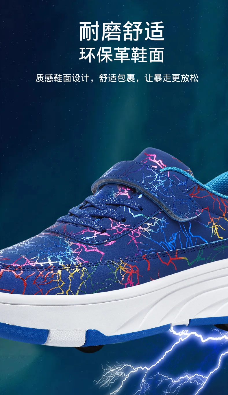 Kids Roller Skate Shoes Deformation Outdoor Children Fashion 2 Wheels Boys Girls Casual Detachable Parkour Running Skating Shoes