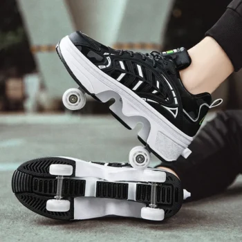 Kids Roller Skate Shoes Deformation Outdoor Children Fashion 4 Wheels Boys Girls Casual Adults Parkour Running Skating Shoes