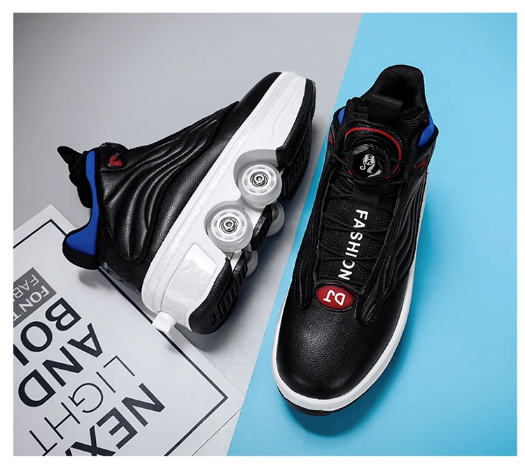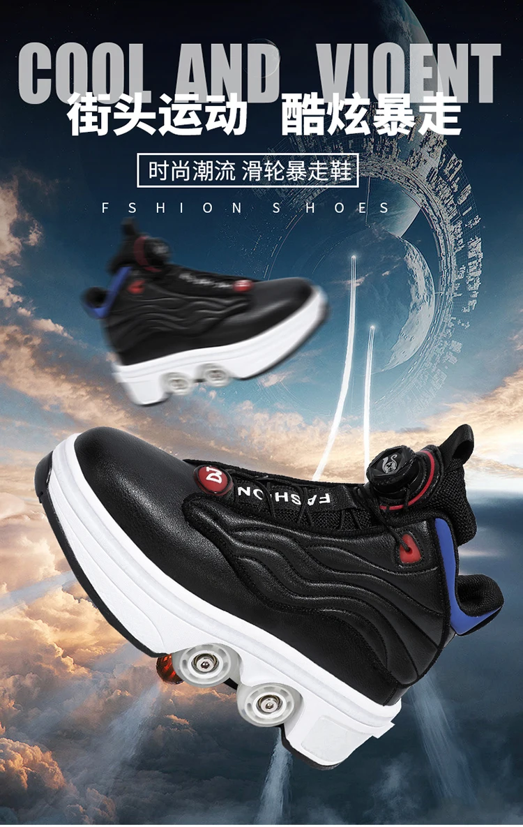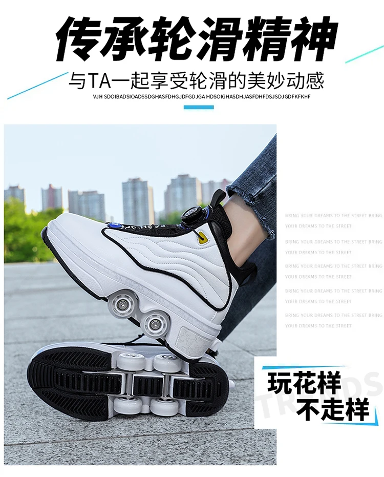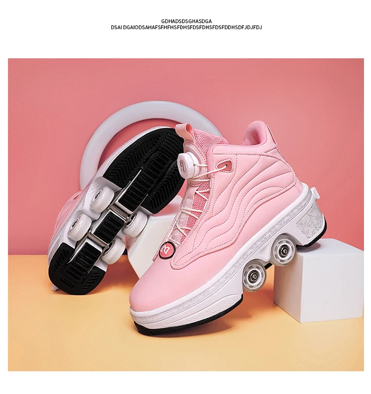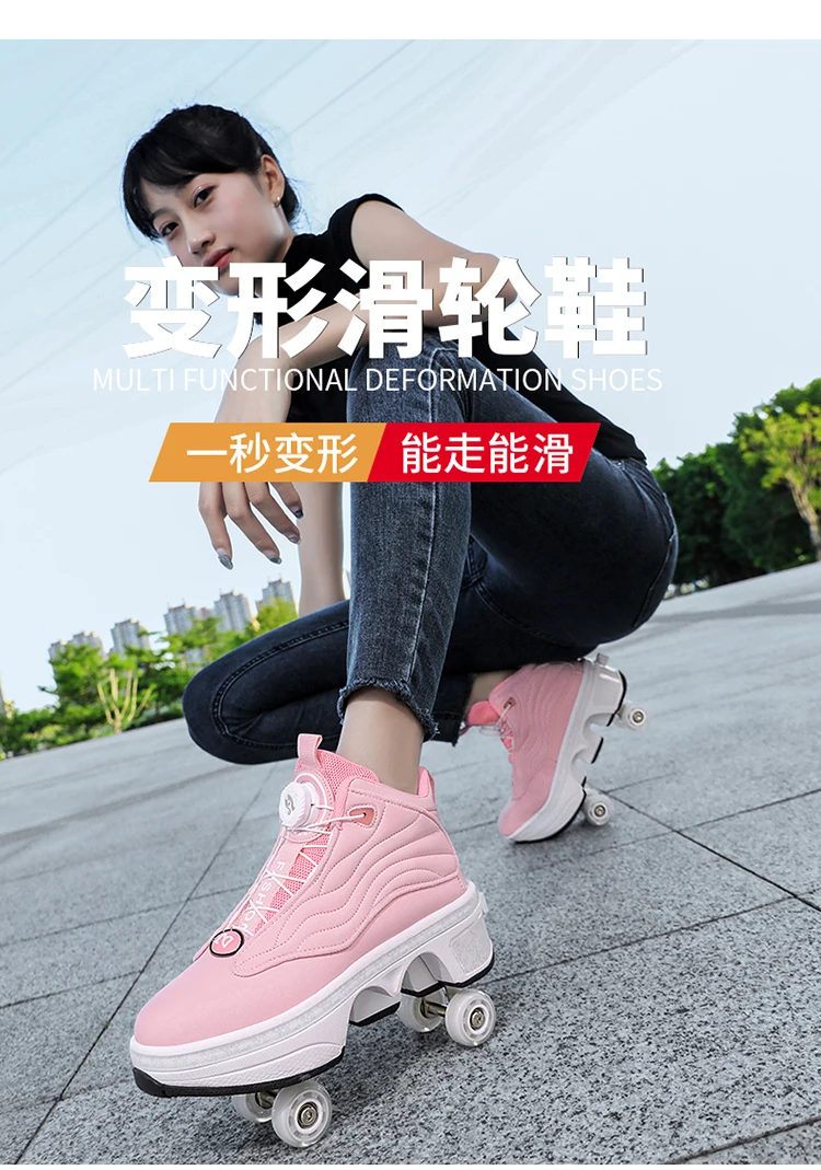 Kids Roller Skate Shoes Deformation Outdoor Children Fashion 4 Wheels Boys Girls Casual Adults Parkour Running Skating Shoes