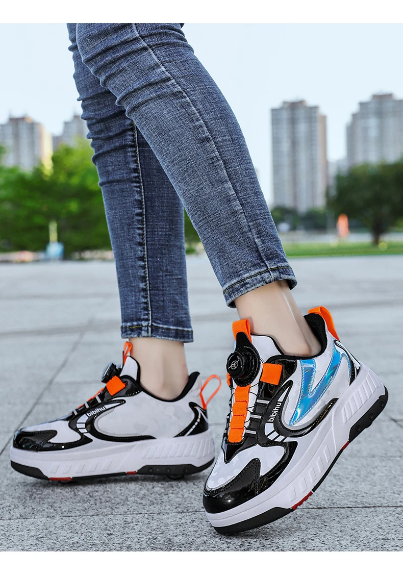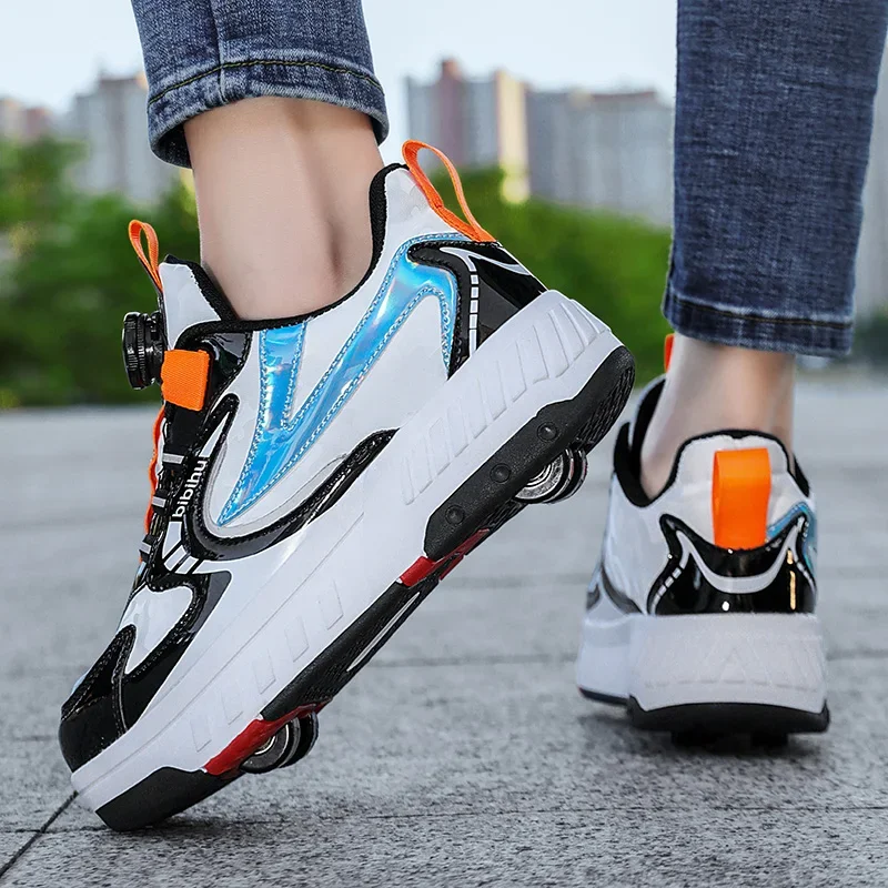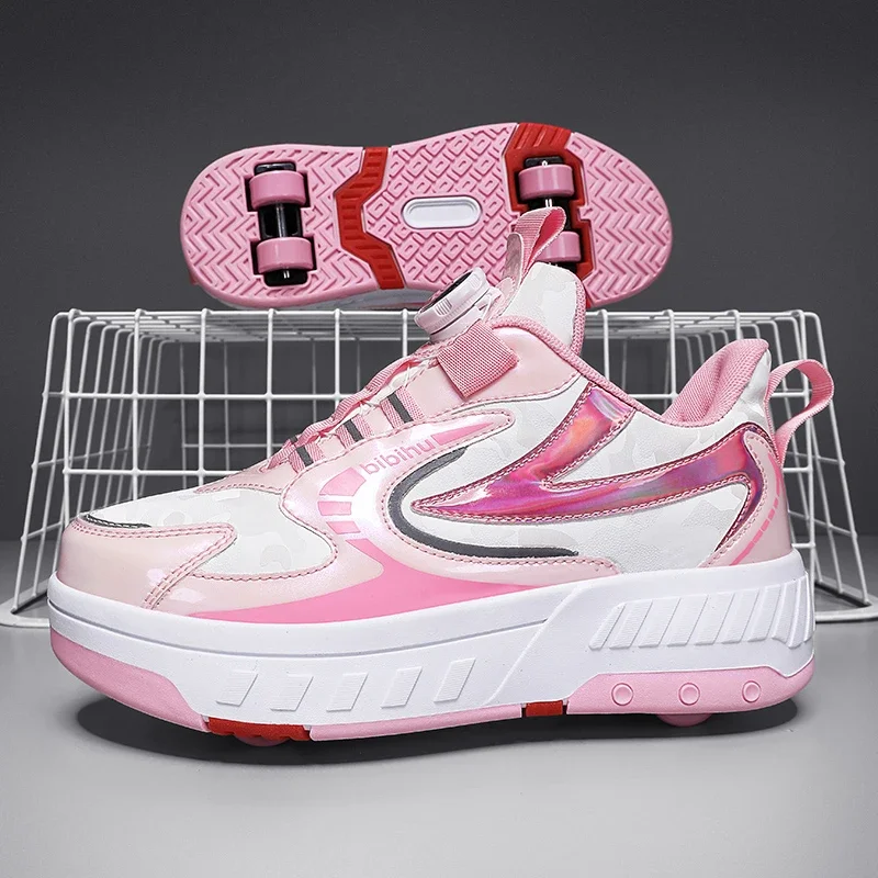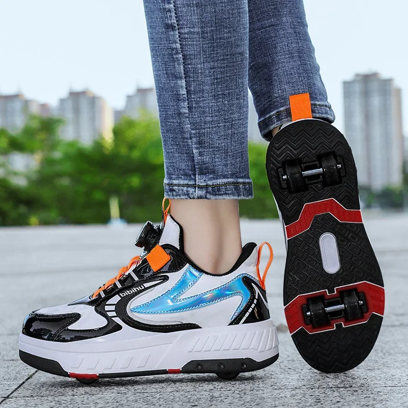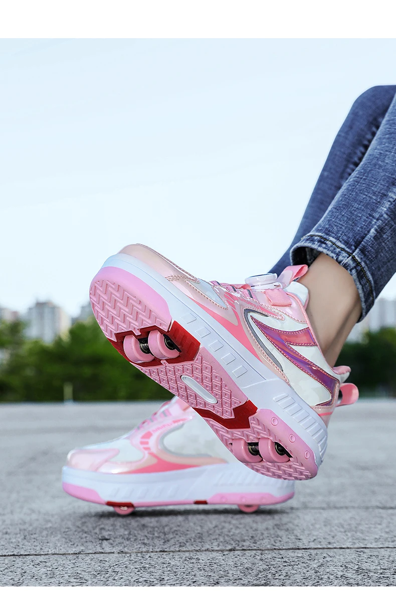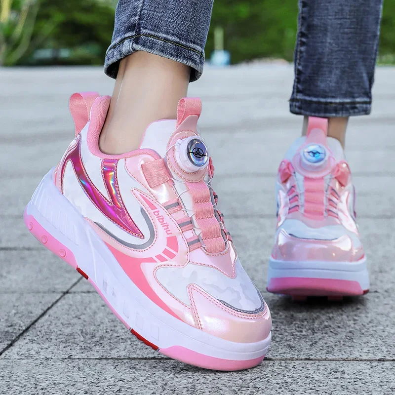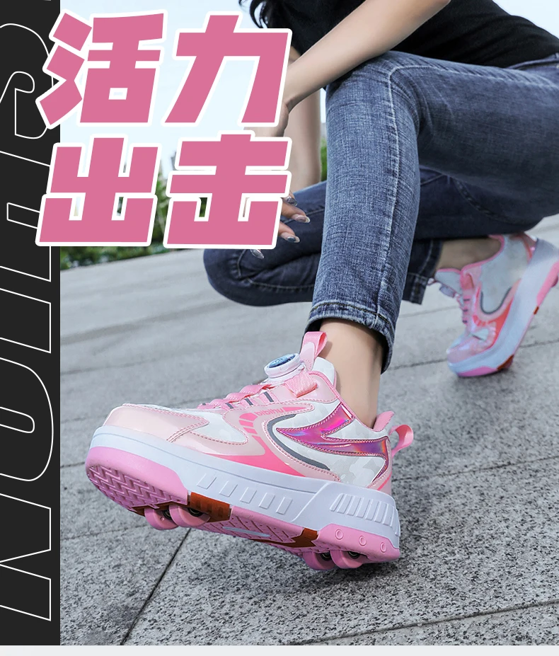 Kids Roller Skate Shoes Detachable 4 Wheels Parkour Casual Boys Girls Fashion Running Children Deformation Outdoor Skating Shoes