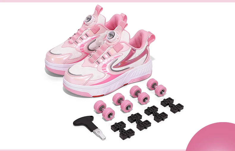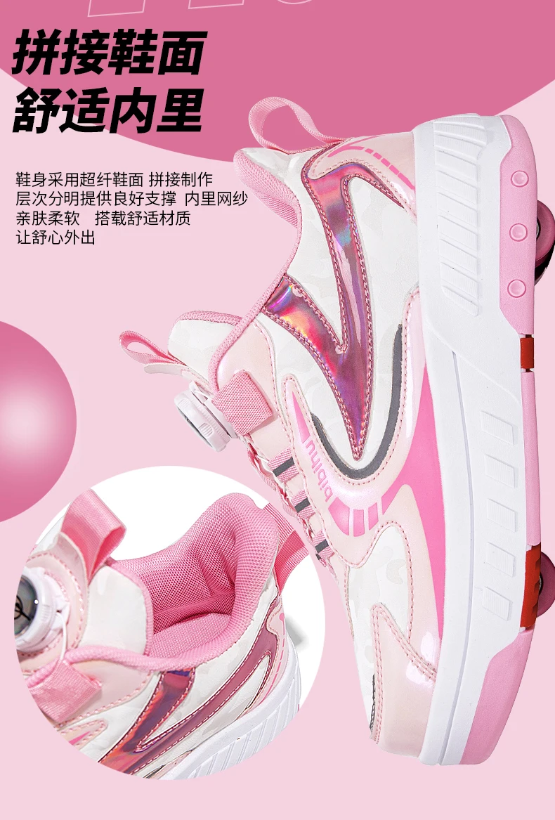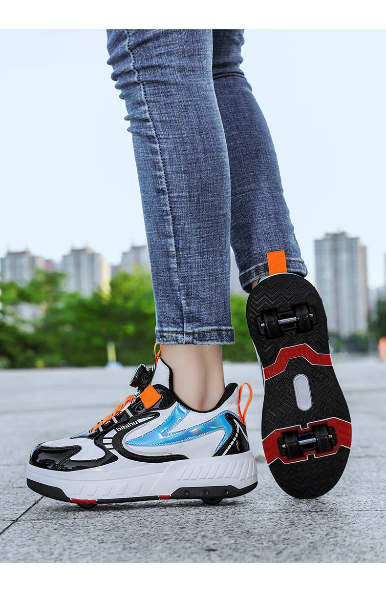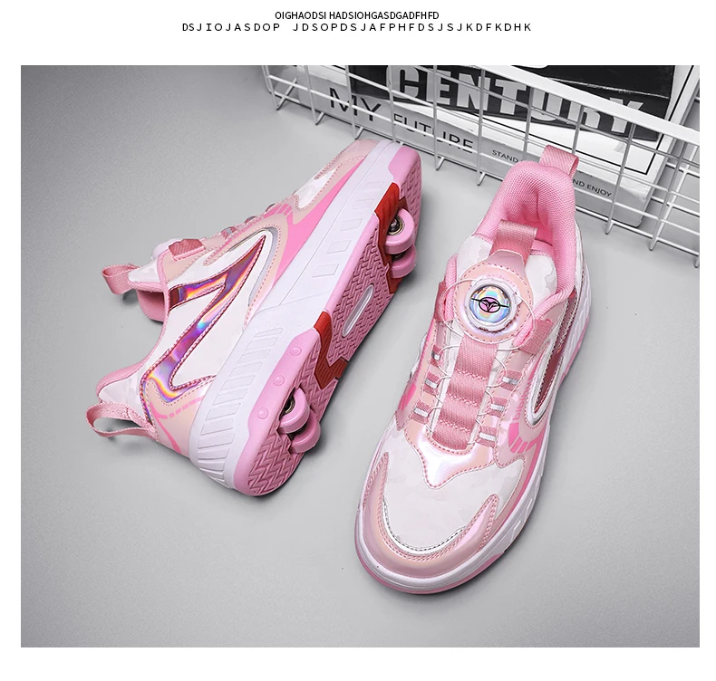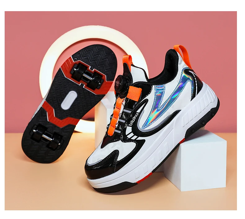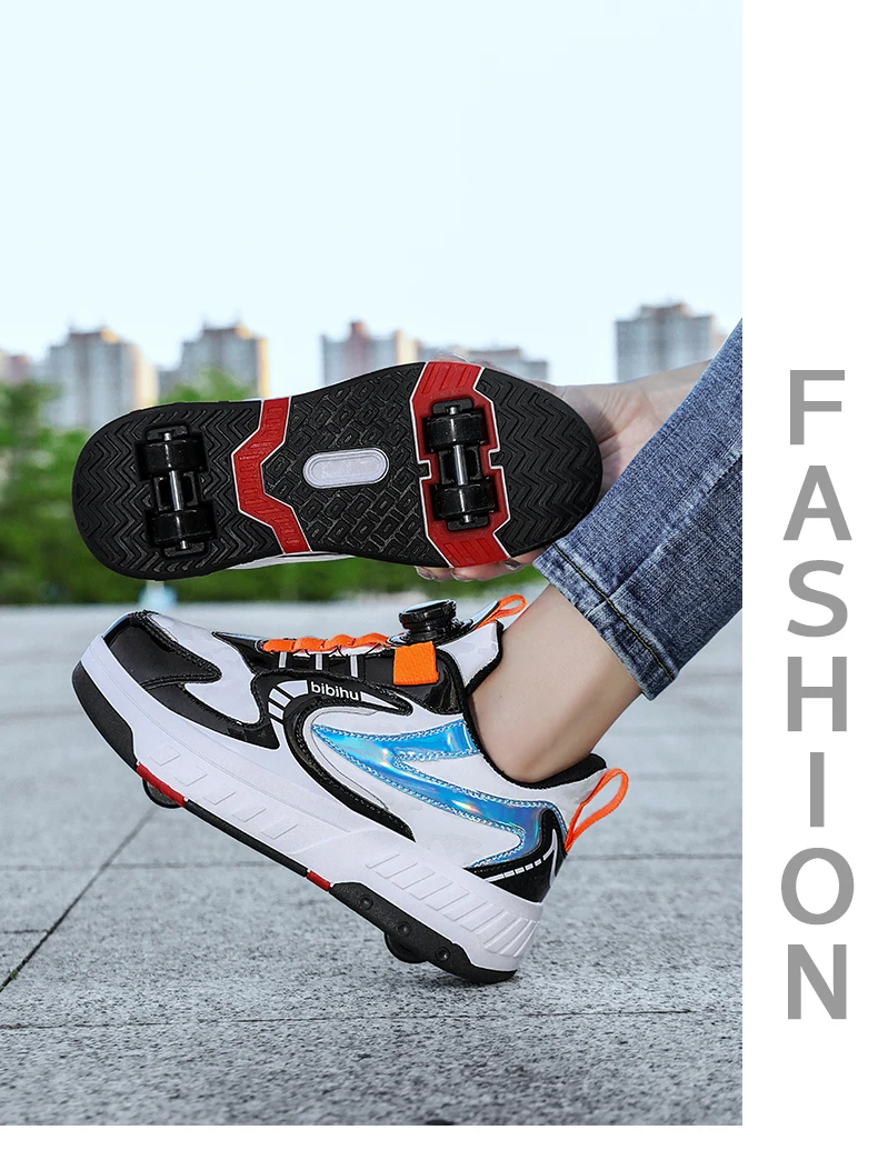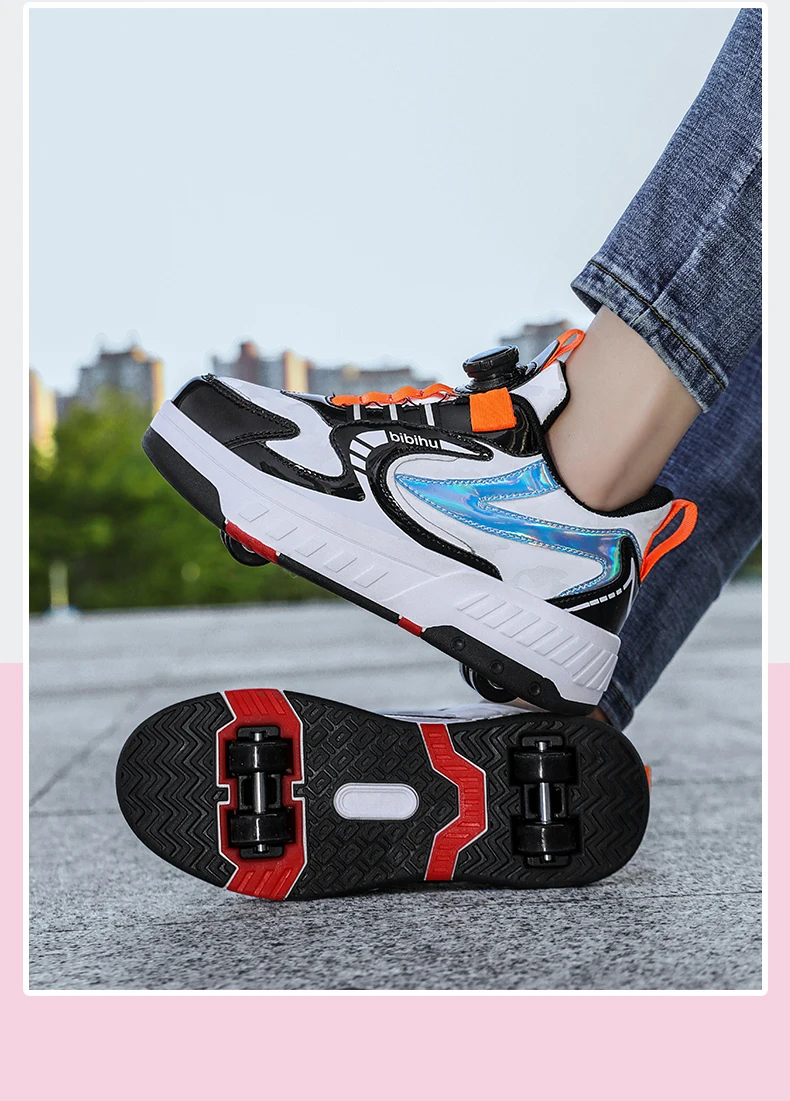 Kids Roller Skate Shoes Detachable 4 Wheels Parkour Casual Boys Girls Fashion Running Children Deformation Outdoor Skating Shoes