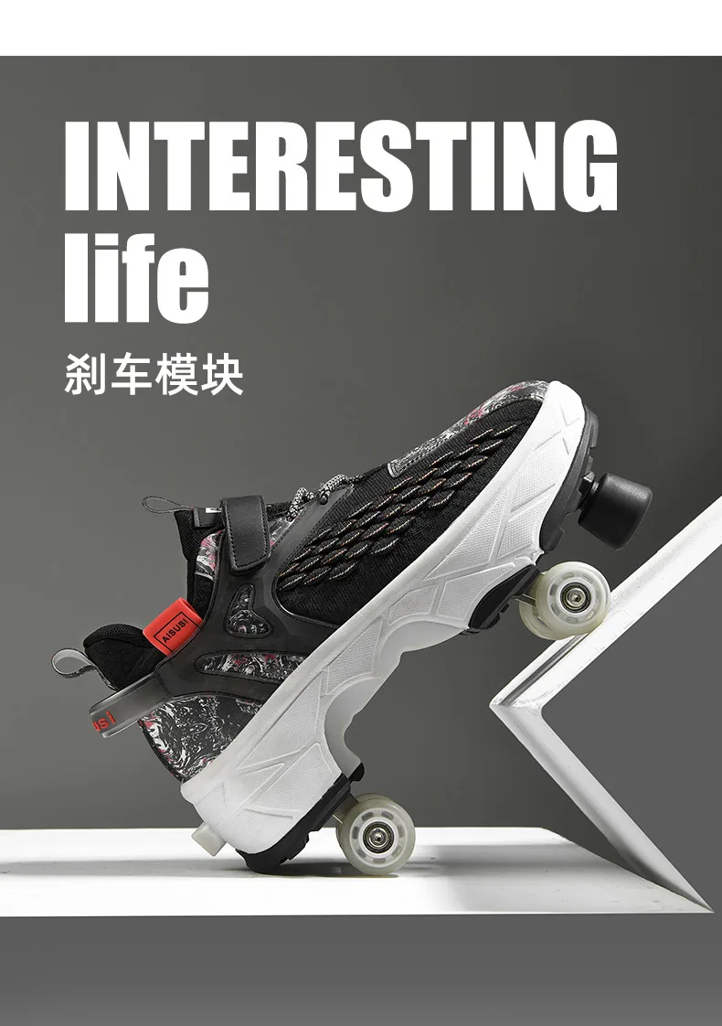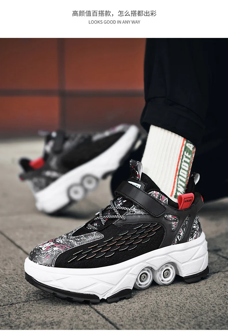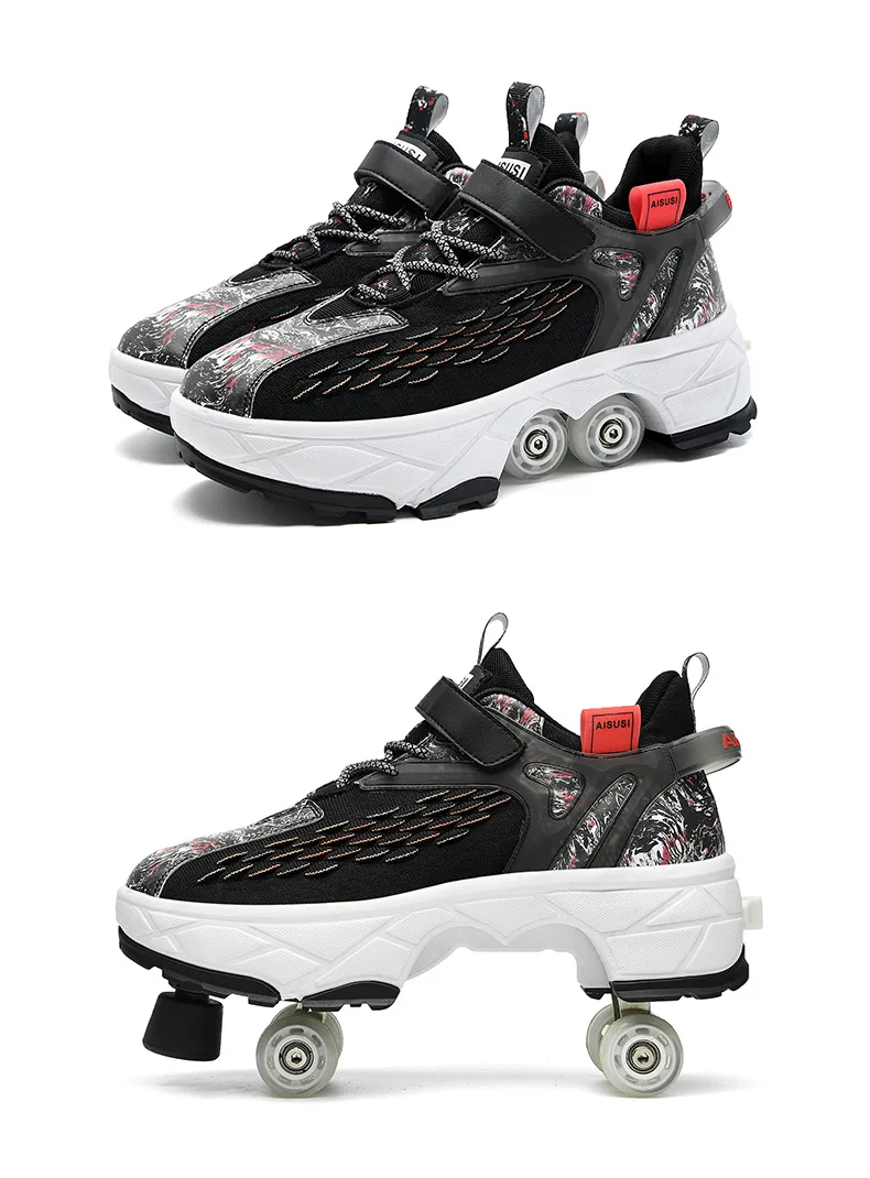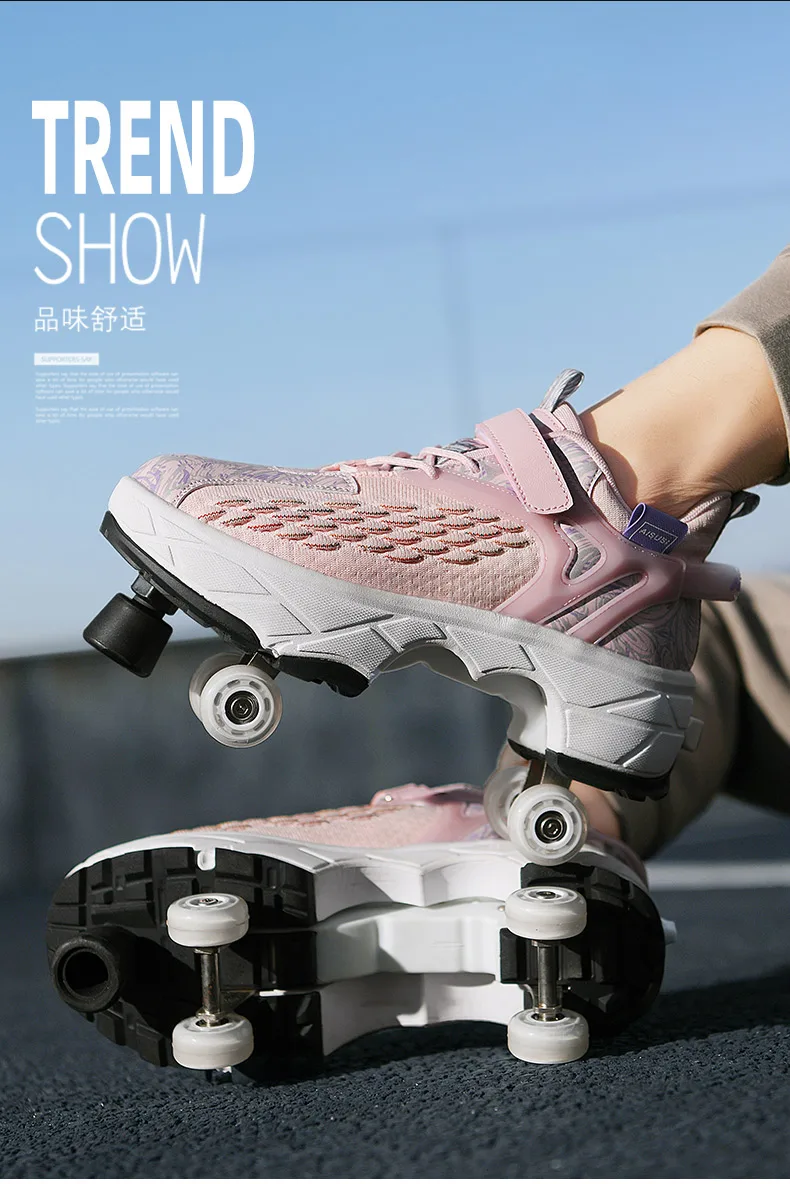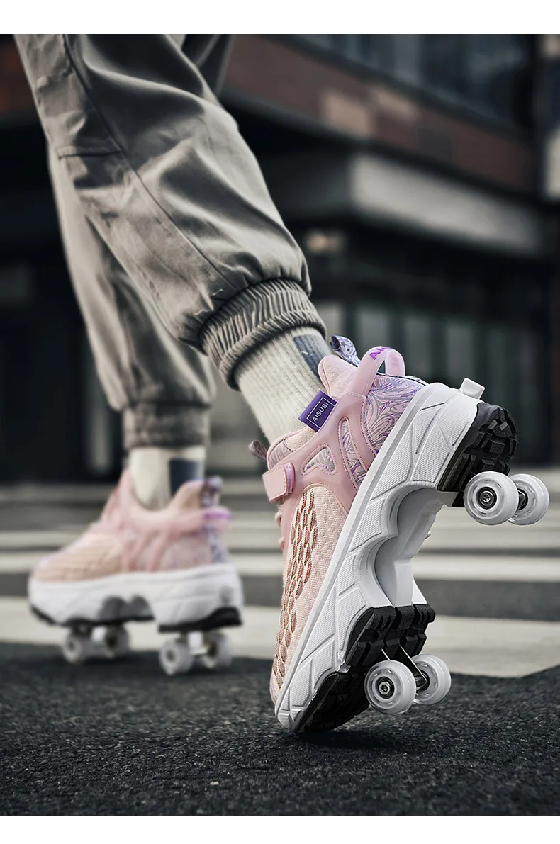 Kids Roller Skate Shoes Outdoor 4 Wheels Casual Parkour Detachable Fashion Boys Girls Running Children Deformation Skating Shoes