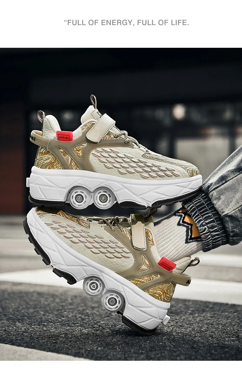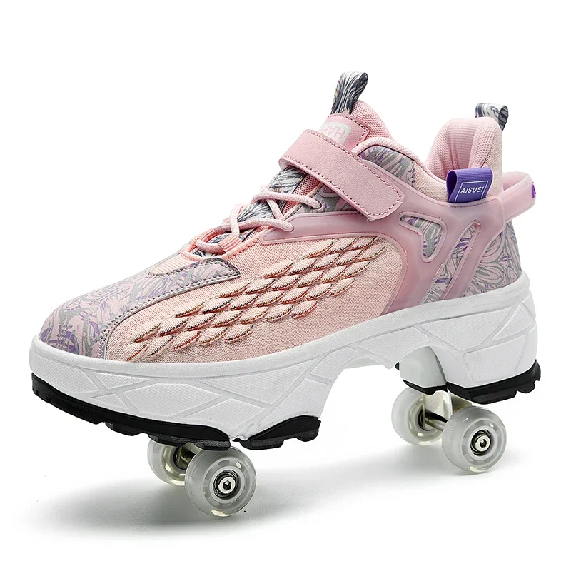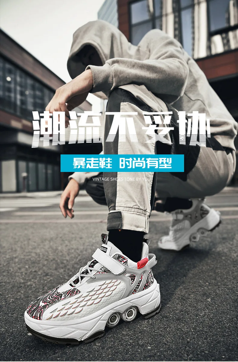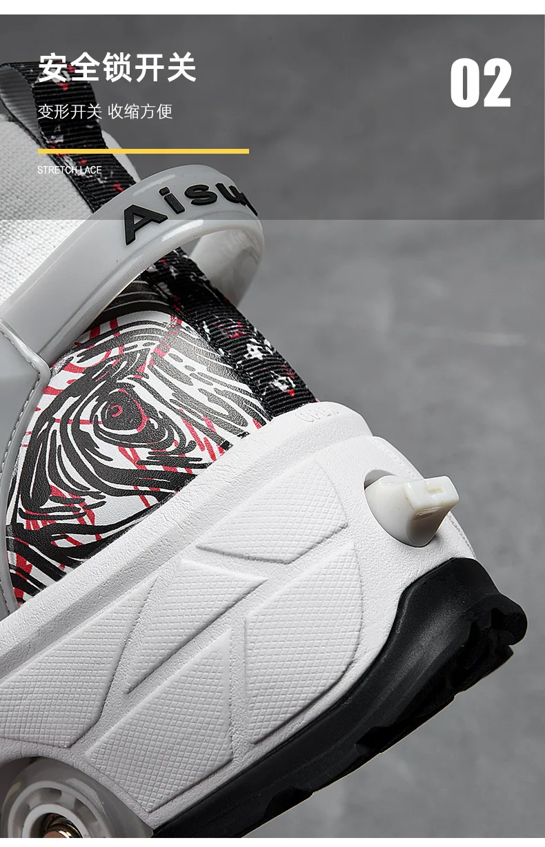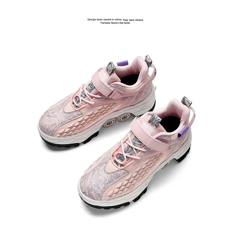 Kids Roller Skate Shoes Outdoor 4 Wheels Casual Parkour Detachable Fashion Boys Girls Running Children Deformation Skating Shoes