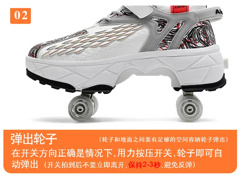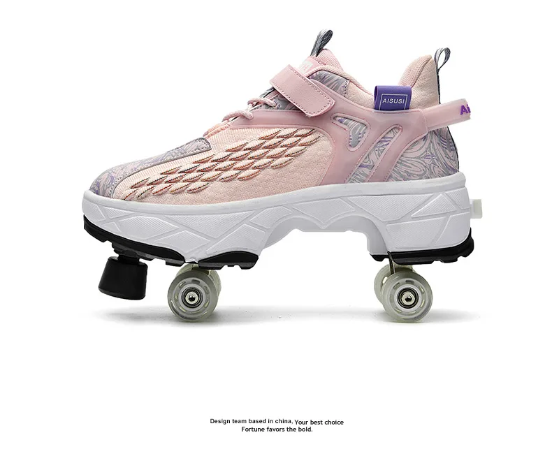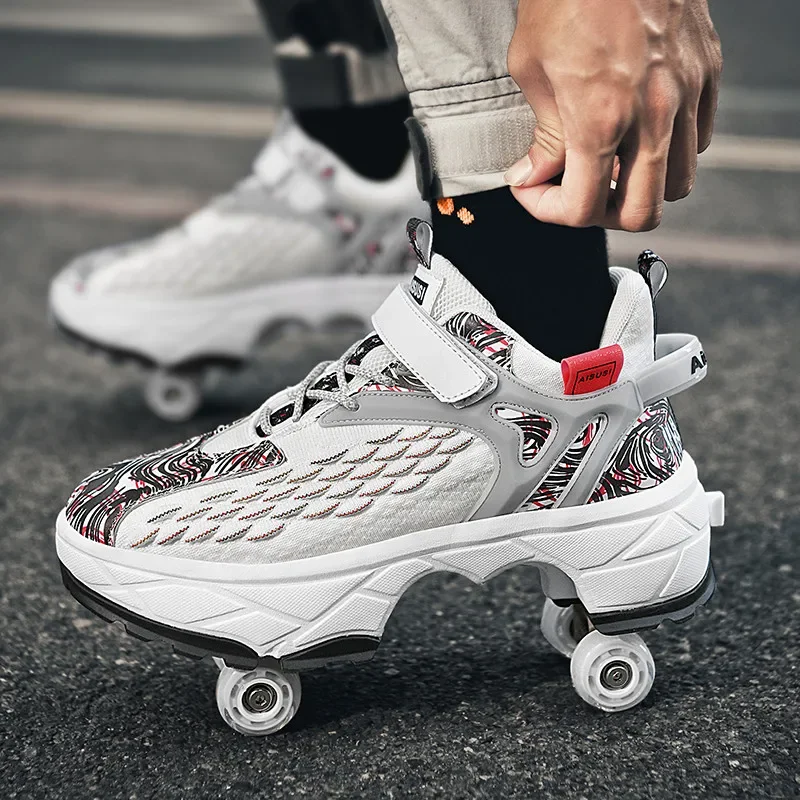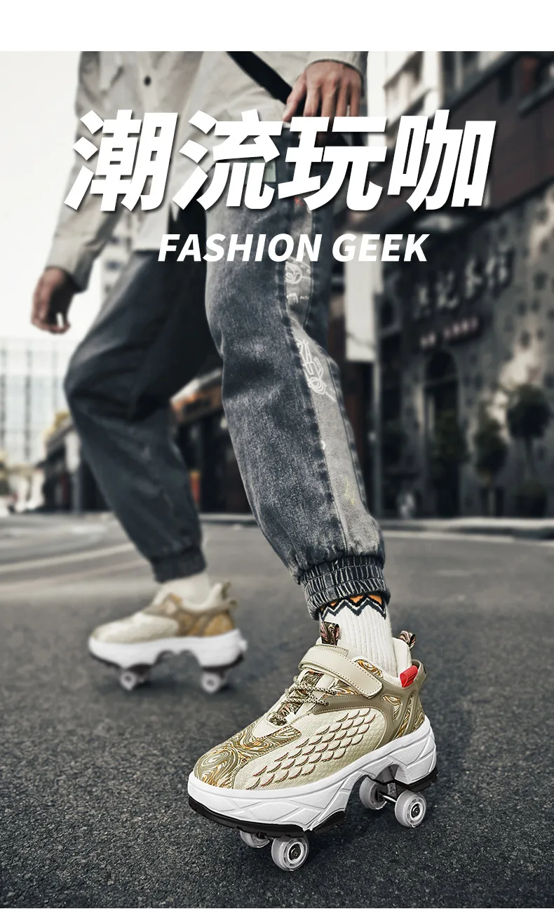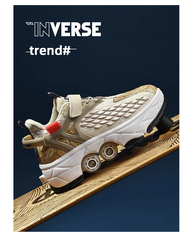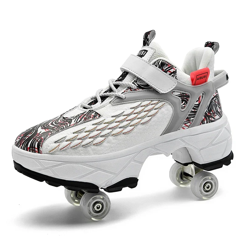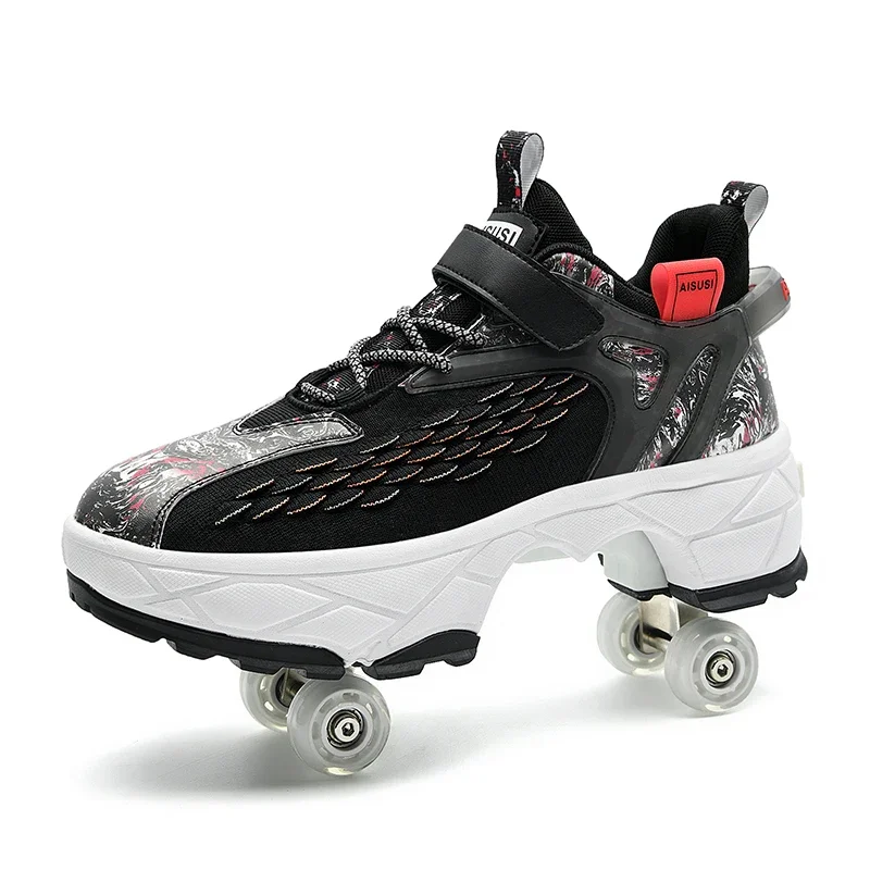 Kids Roller Skate Shoes Outdoor 4 Wheels Casual Parkour Detachable Fashion Boys Girls Running Children Deformation Skating Shoes
