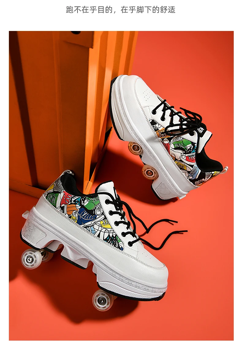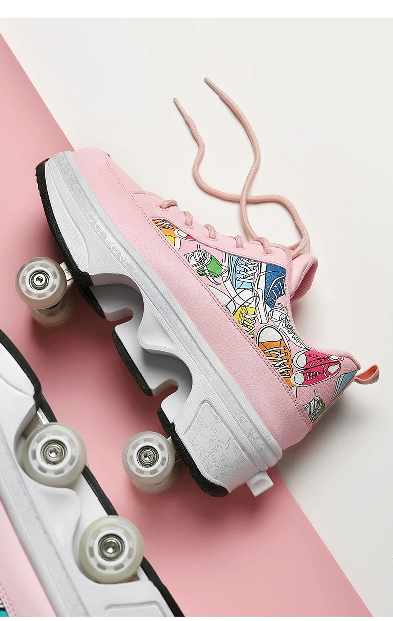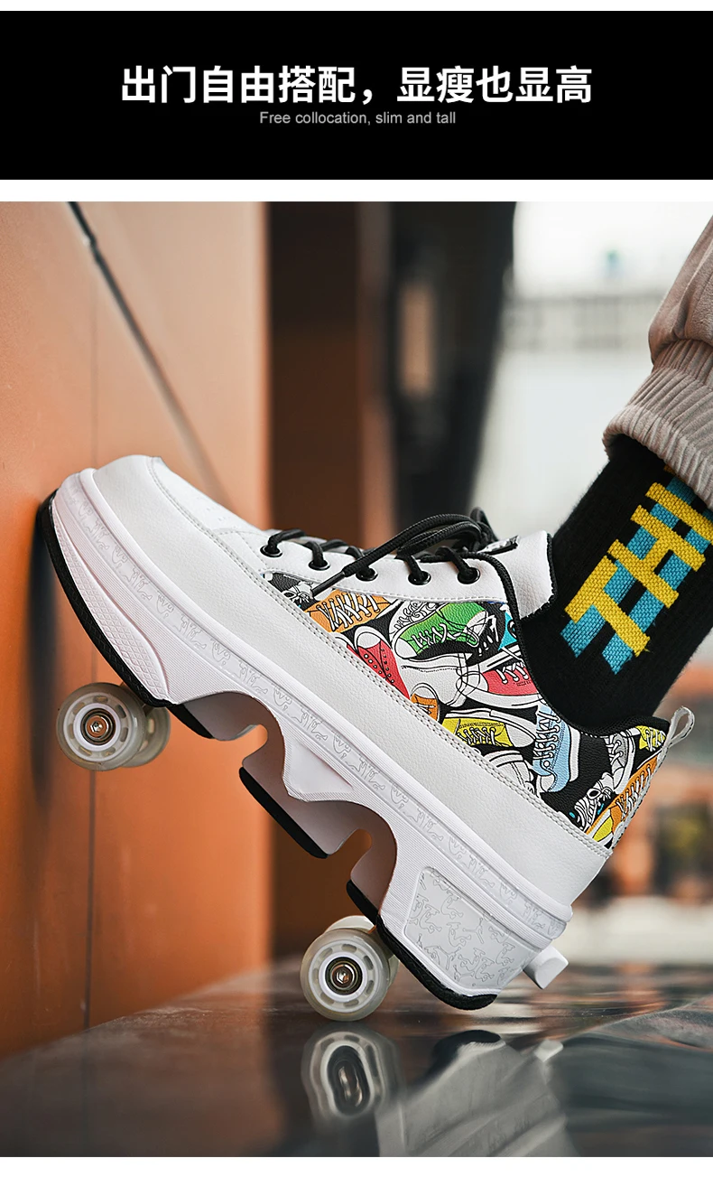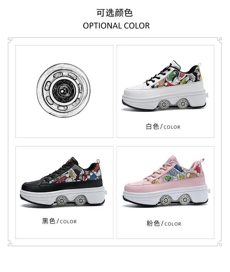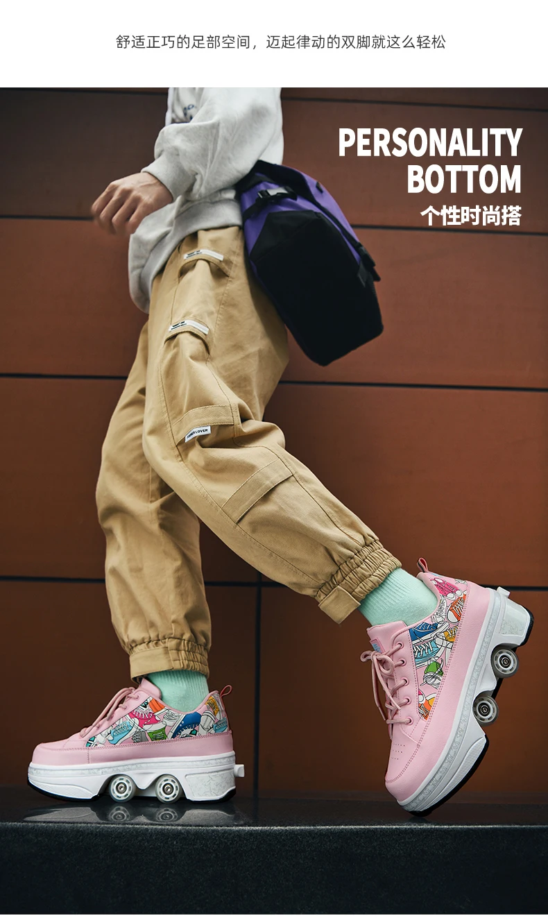 Kids Roller Skate Shoes Outdoor Boys Girls 4 Wheels Detachable Fashion Running Children Deformation Casual Parkour Skating Shoes
