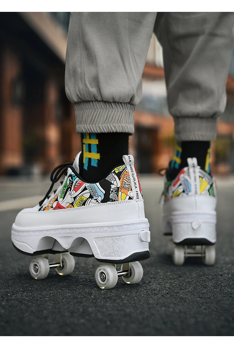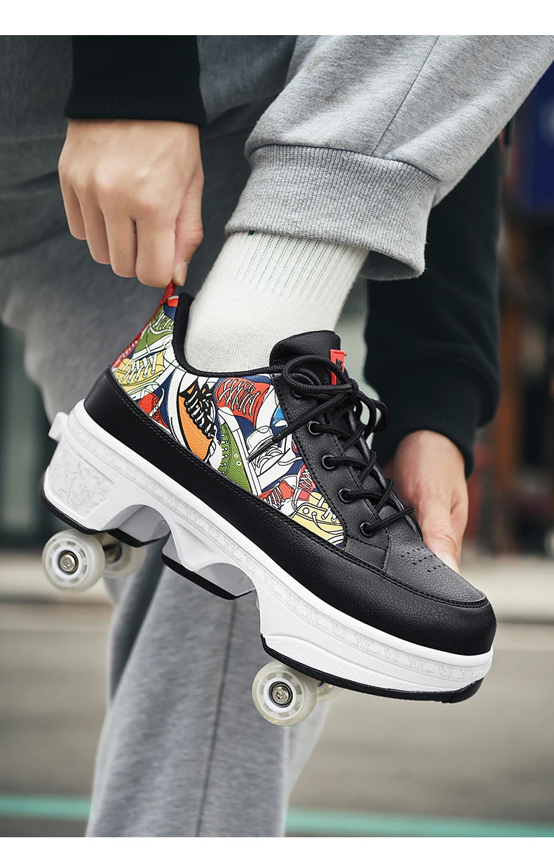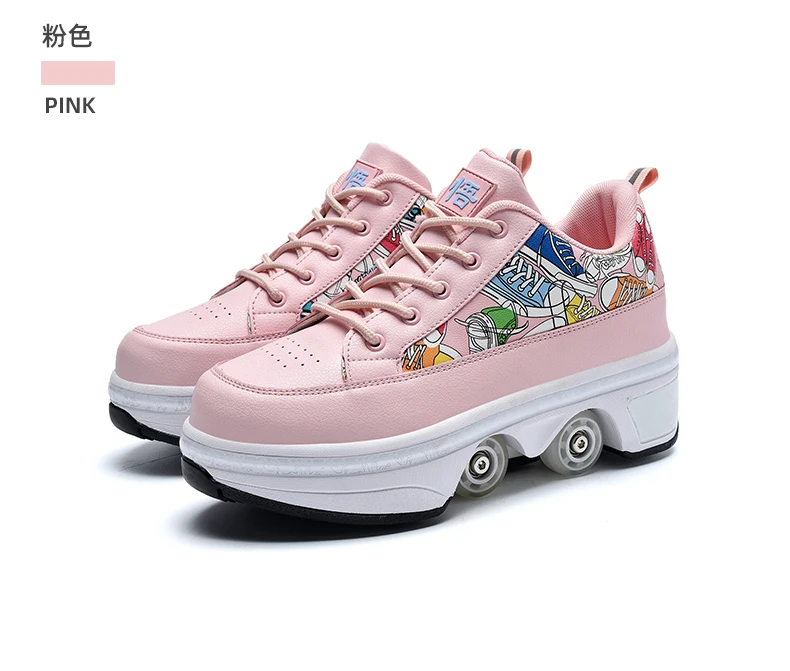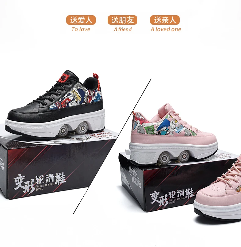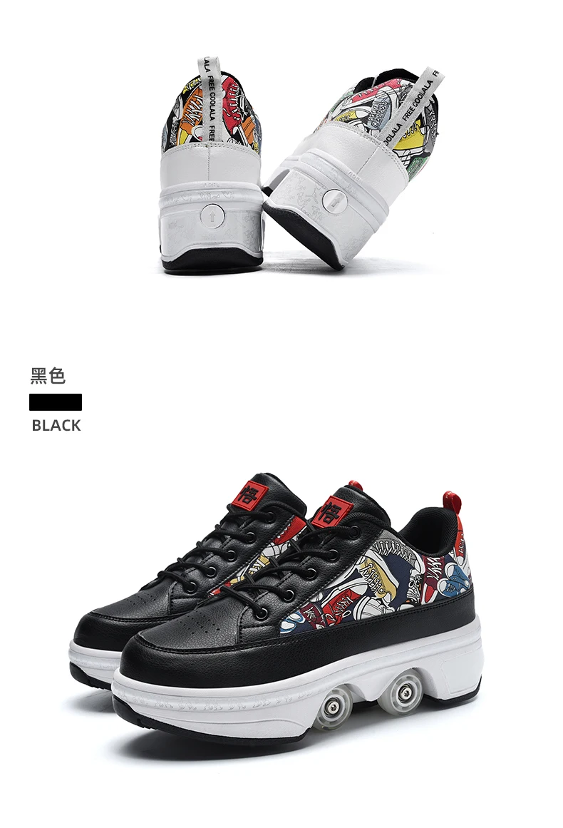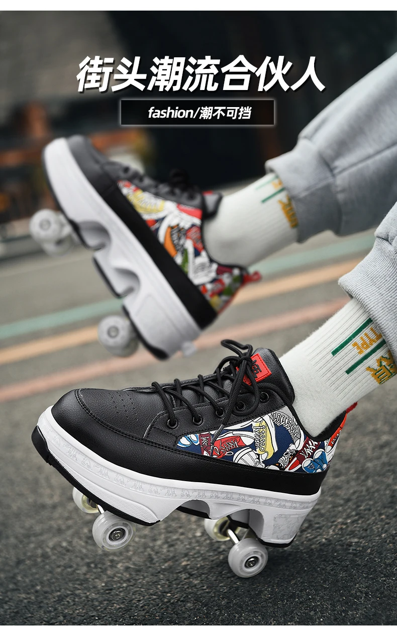Kids Roller Skate Shoes Outdoor Boys Girls 4 Wheels Detachable Fashion Running Children Deformation Casual Parkour Skating Shoes