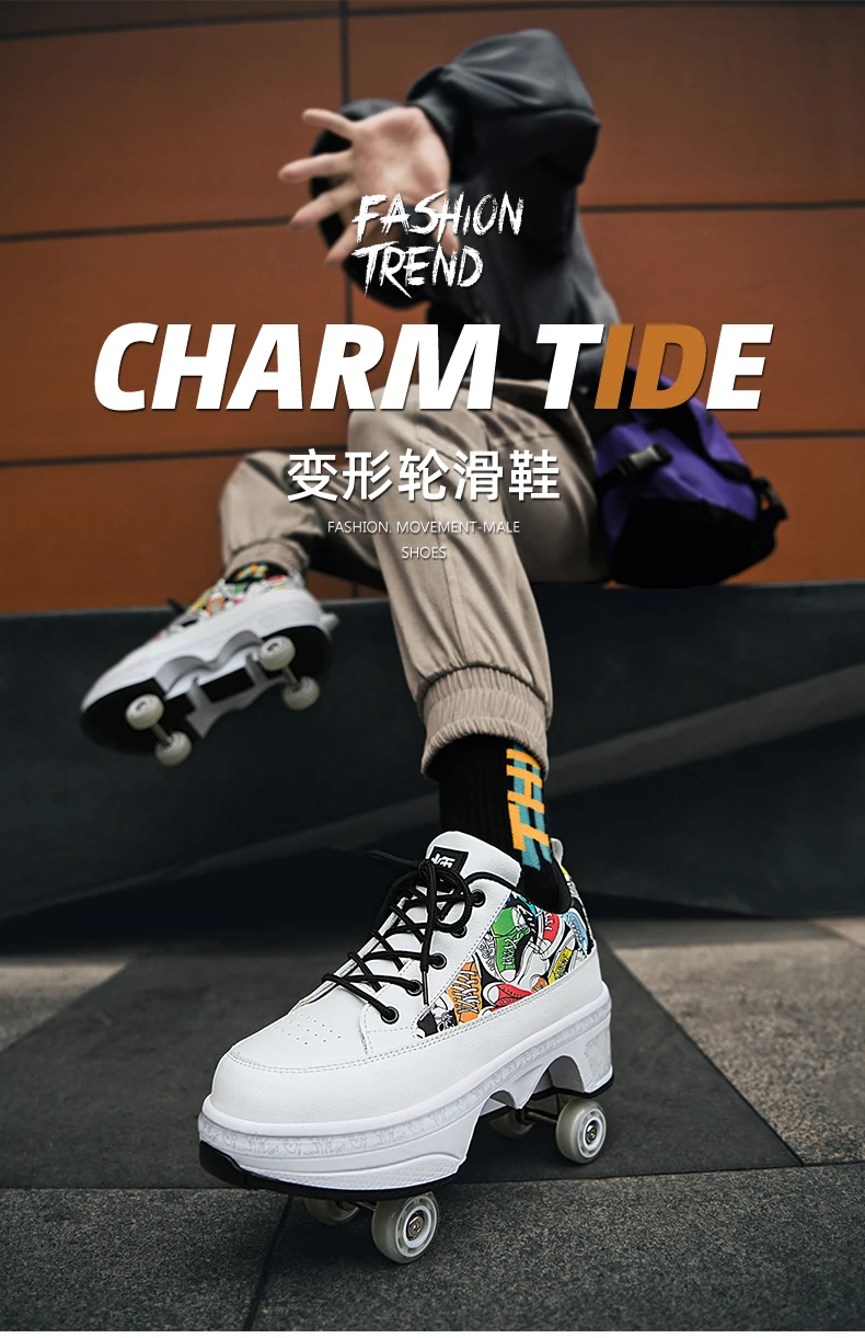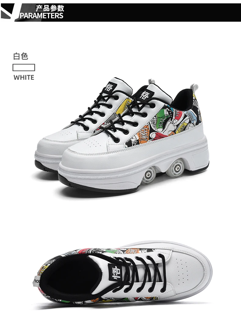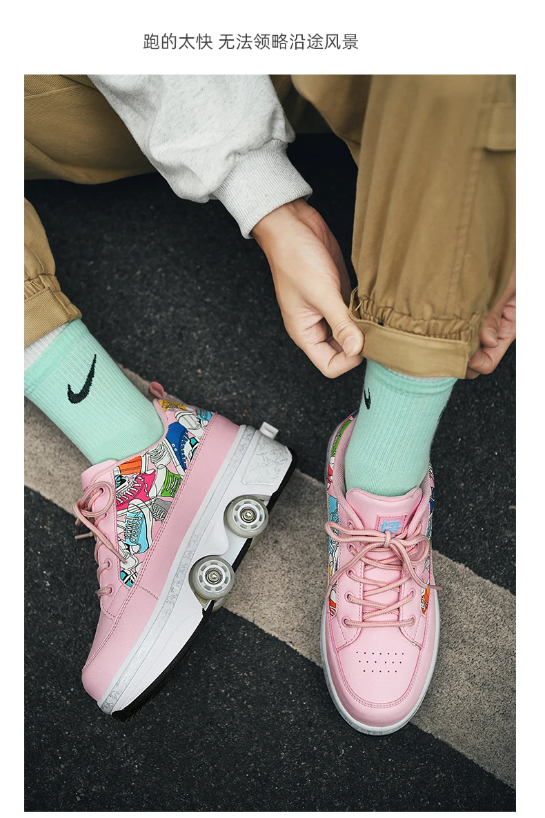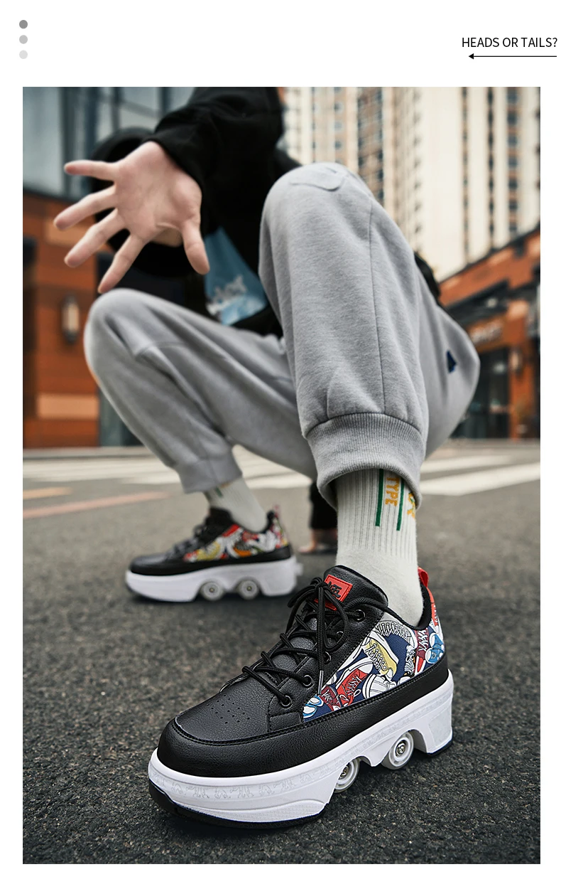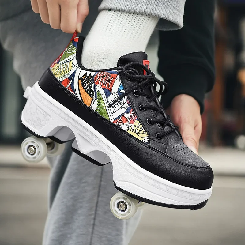 Kids Roller Skate Shoes Outdoor Boys Girls 4 Wheels Detachable Fashion Running Children Deformation Casual Parkour Skating Shoes