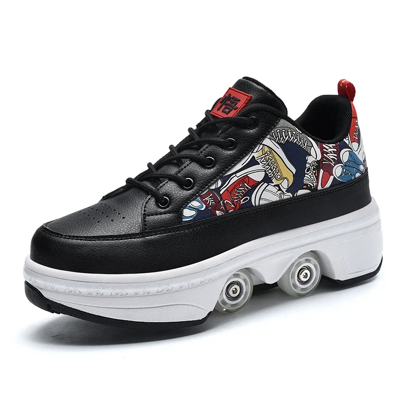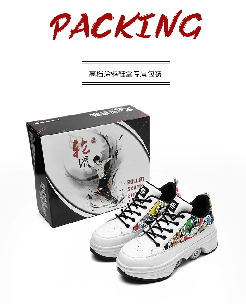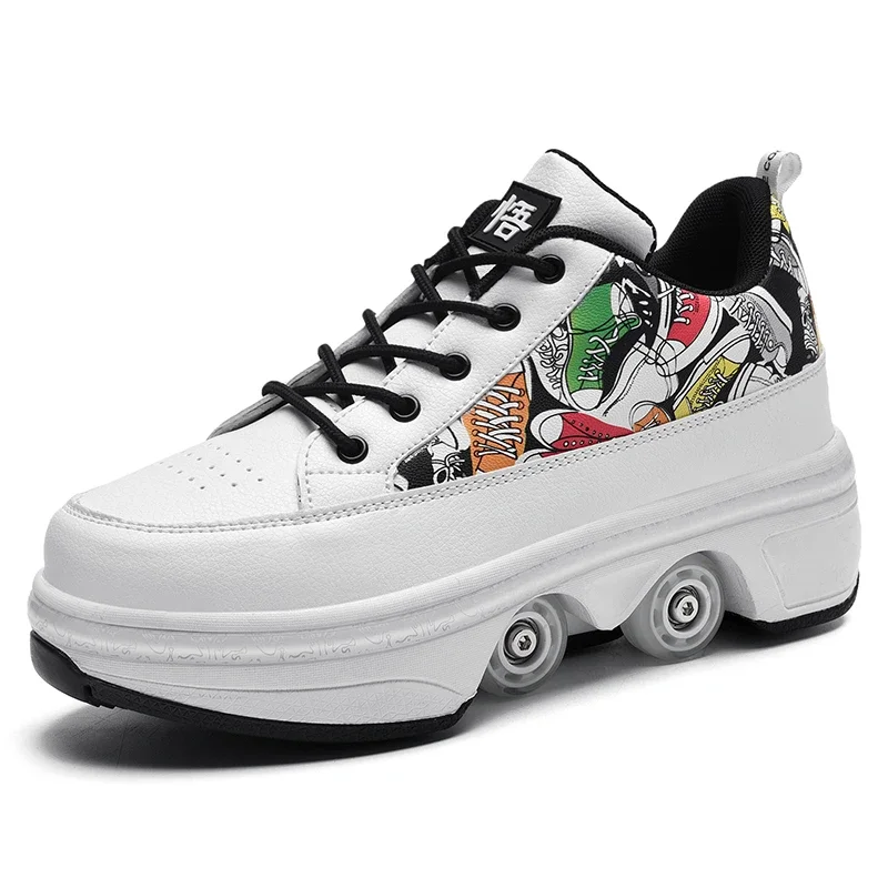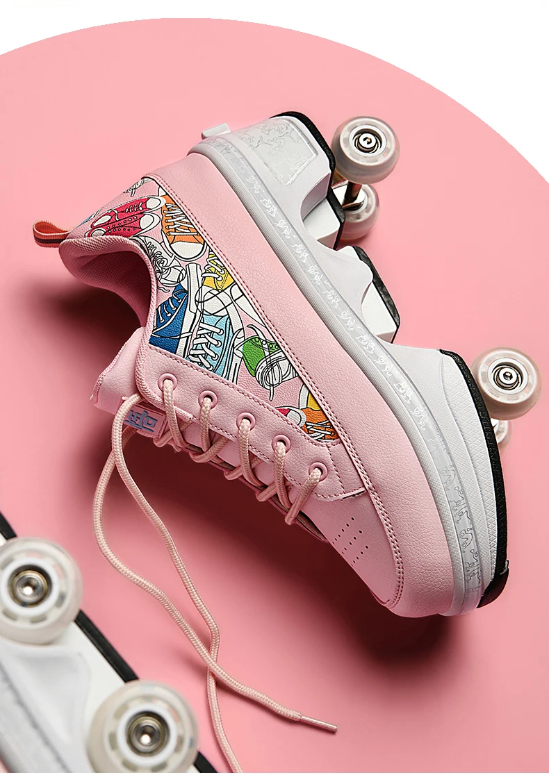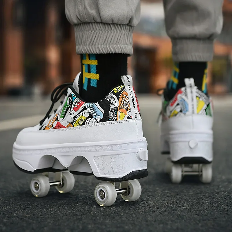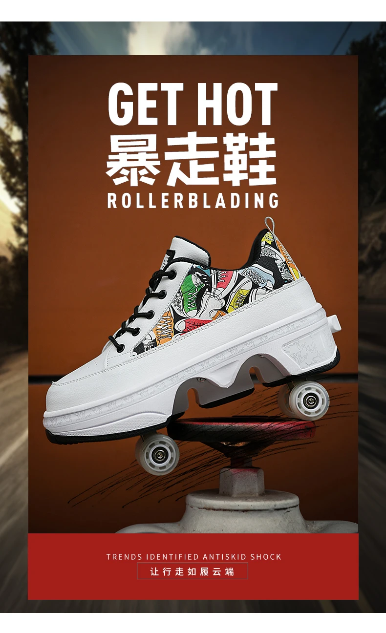 Kids Roller Skate Shoes Outdoor Boys Girls 4 Wheels Detachable Fashion Running Children Deformation Casual Parkour Skating Shoes