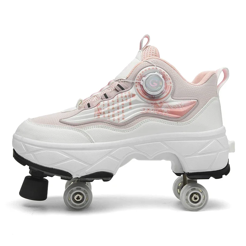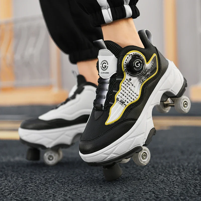 Kids Roller Skate Shoes Outdoor Casual 4 Wheels Boys Girls Parkour Deformation Running Children Fashion Detachable Skating Shoes