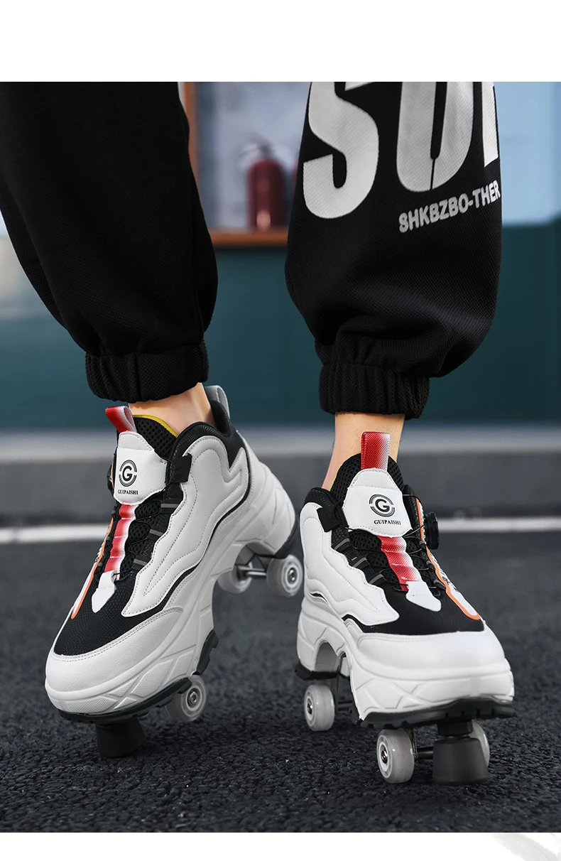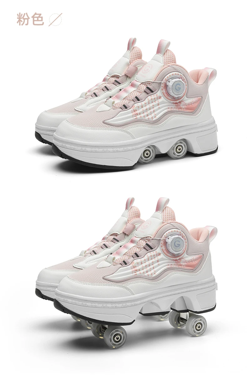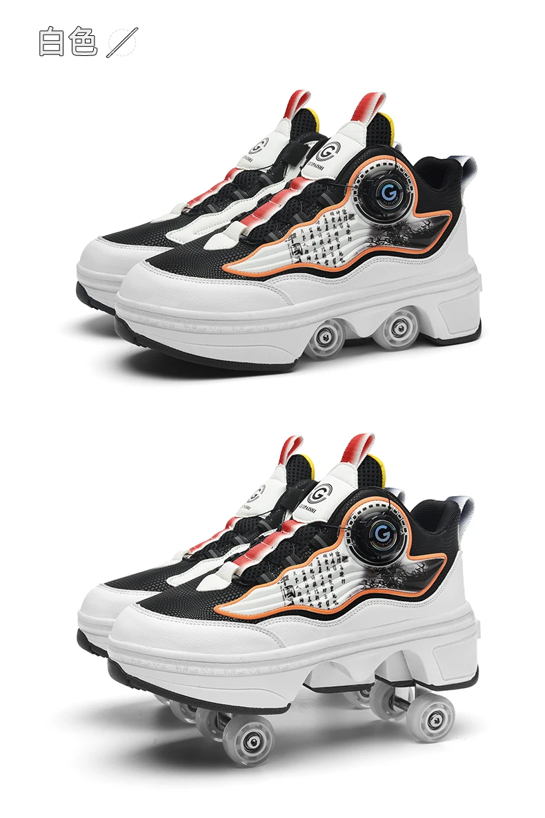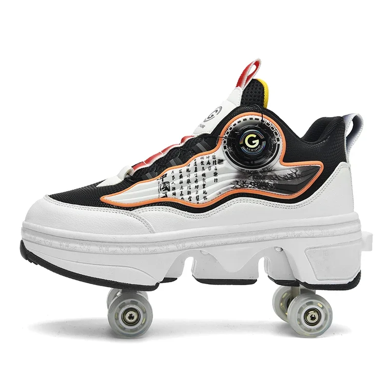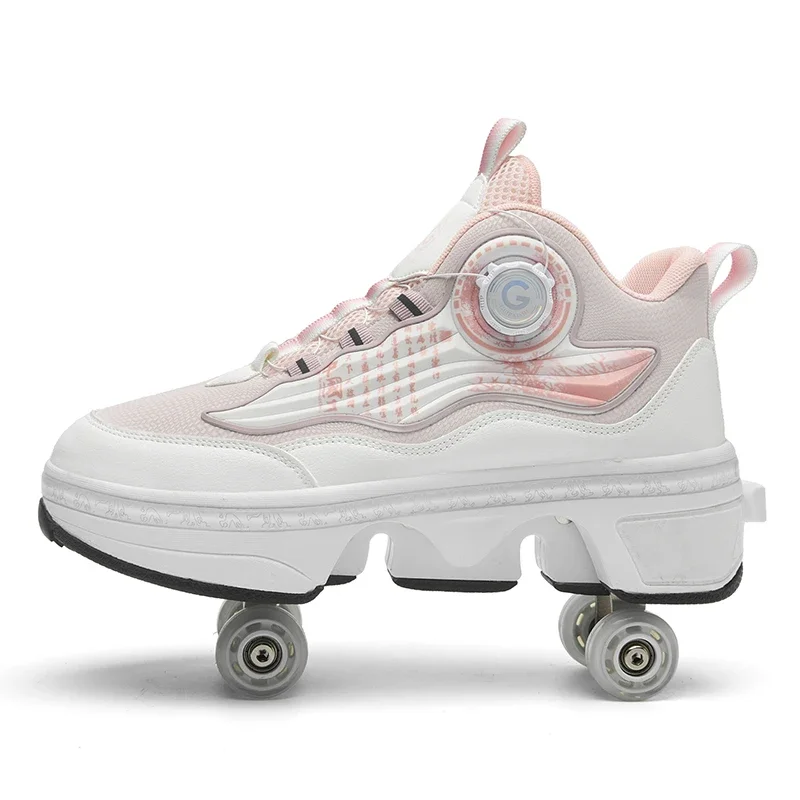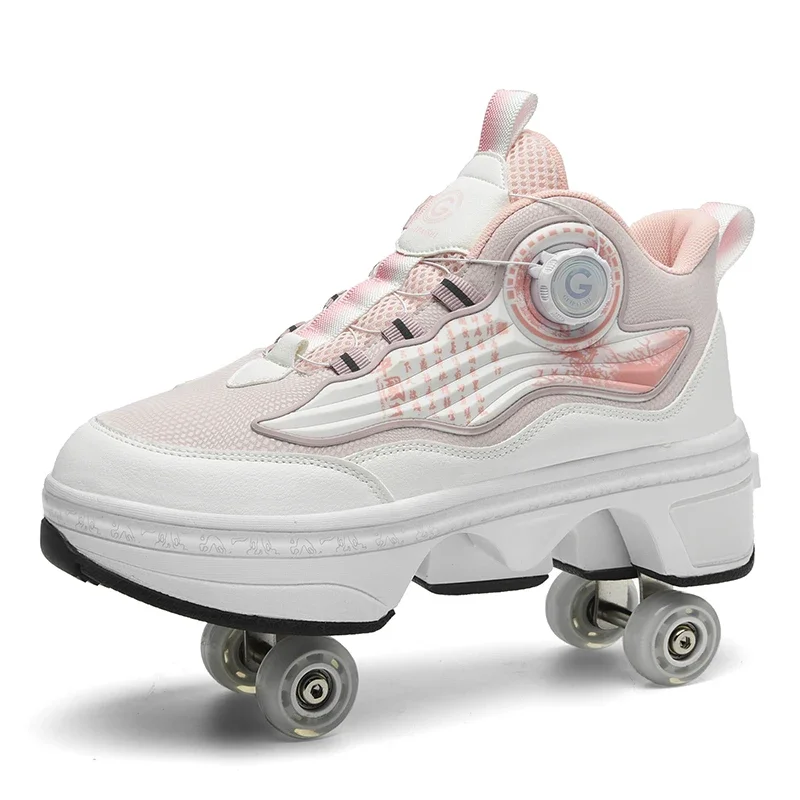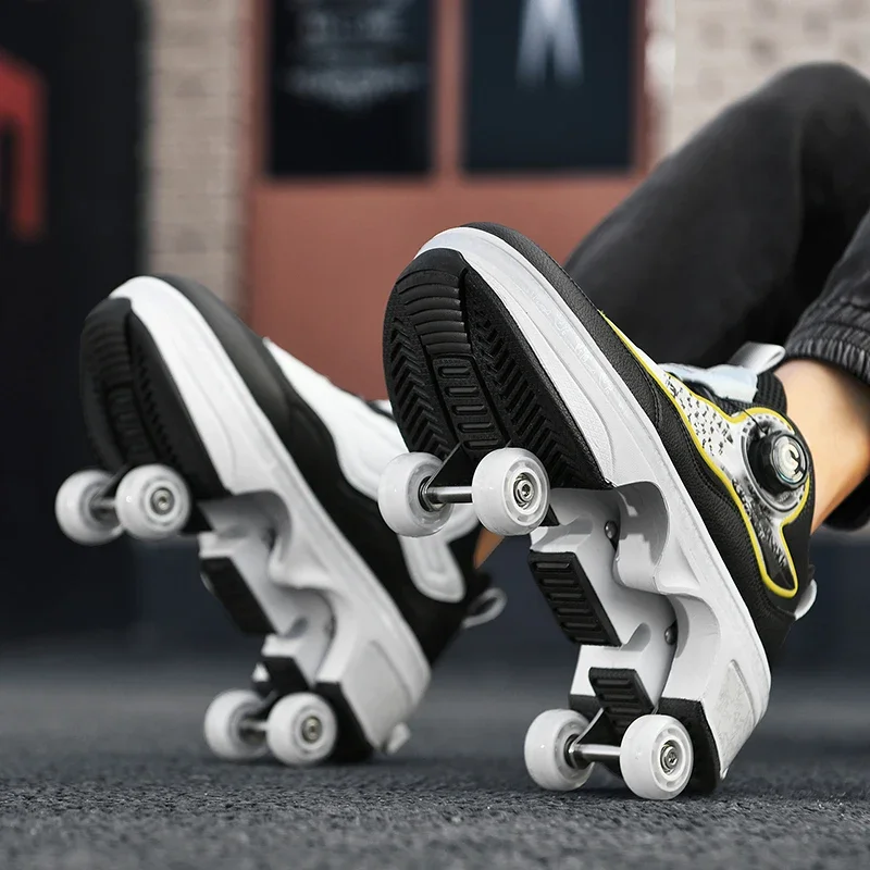 Kids Roller Skate Shoes Outdoor Running 4 Wheels Boys Girls Parkour Deformation Children Casual Fashion Detachable Skating Shoes