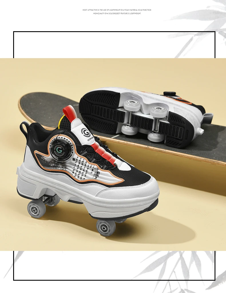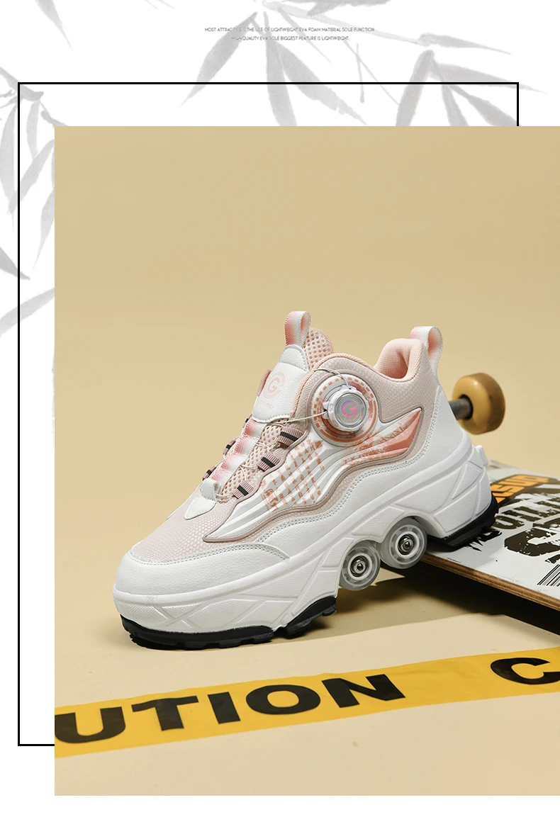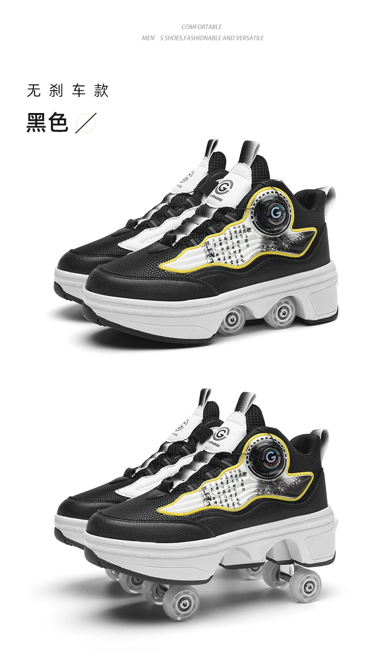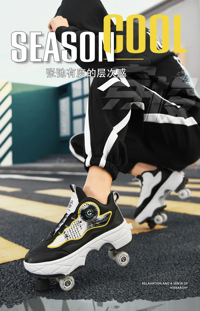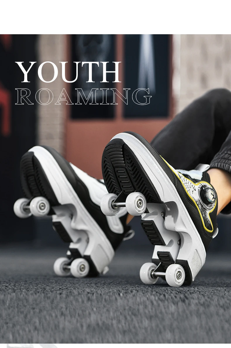 Kids Roller Skate Shoes Outdoor Running 4 Wheels Boys Girls Parkour Deformation Children Casual Fashion Detachable Skating Shoes