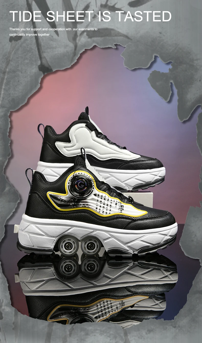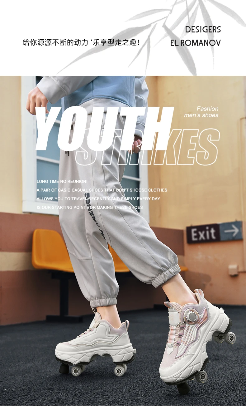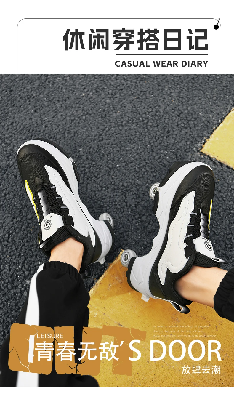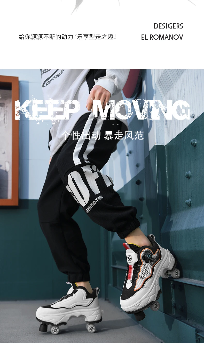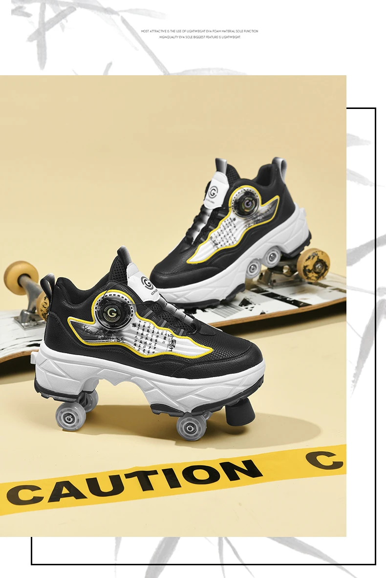 Kids Roller Skate Shoes Outdoor Running 4 Wheels Boys Girls Parkour Deformation Children Casual Fashion Detachable Skating Shoes