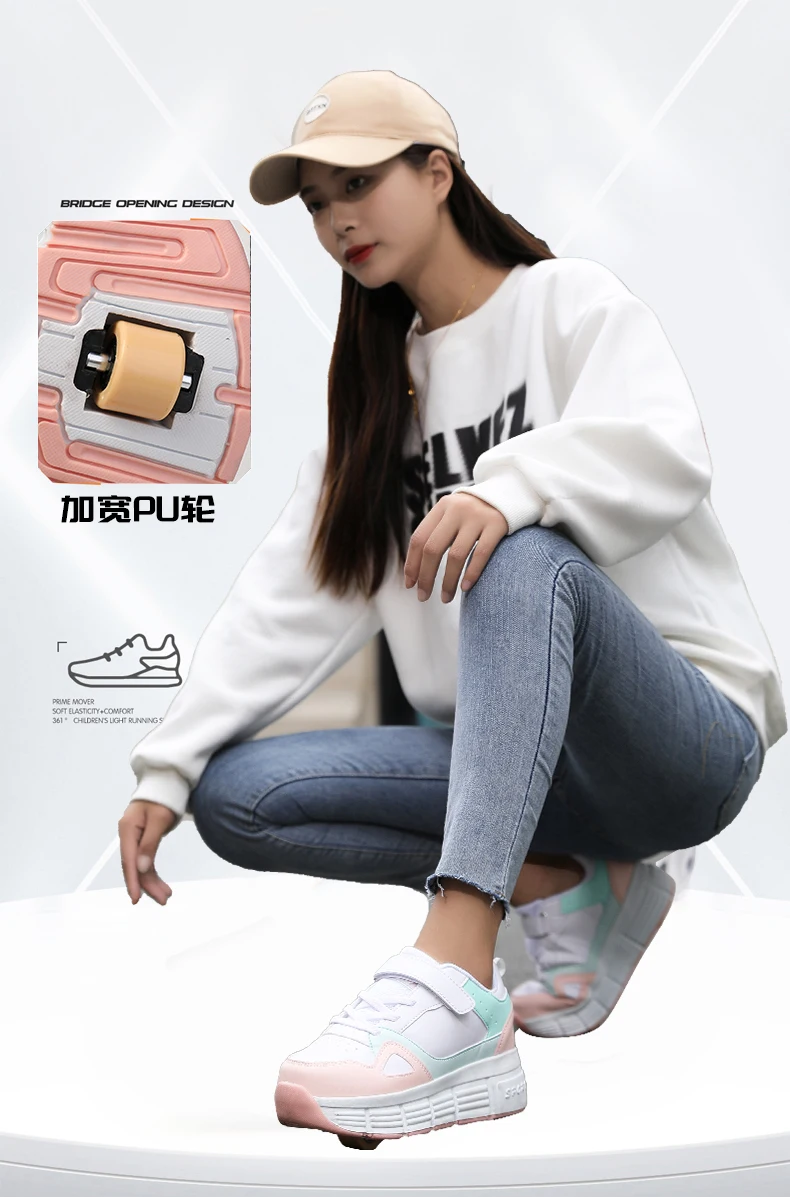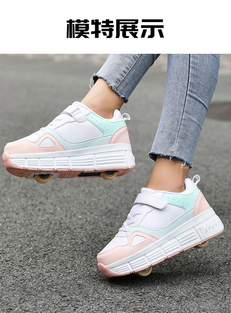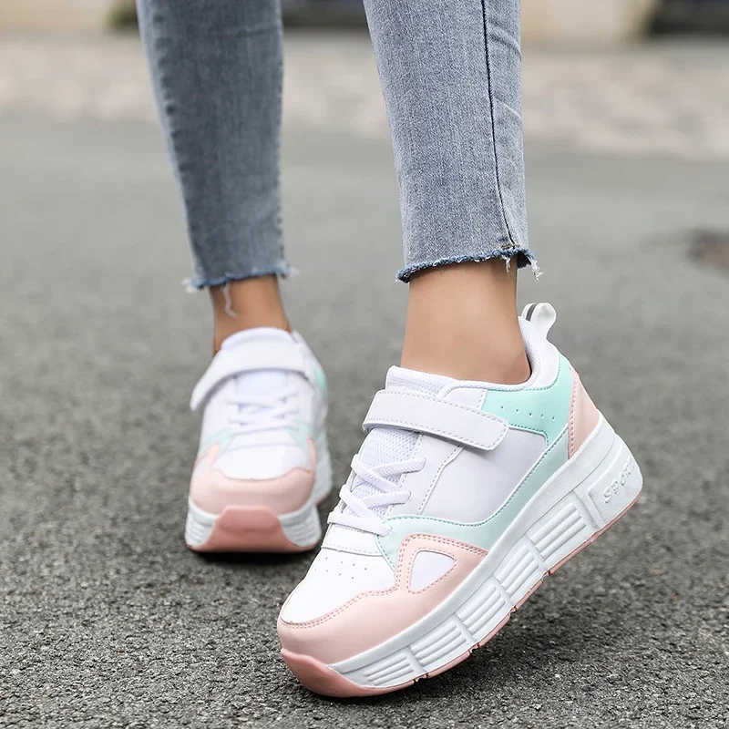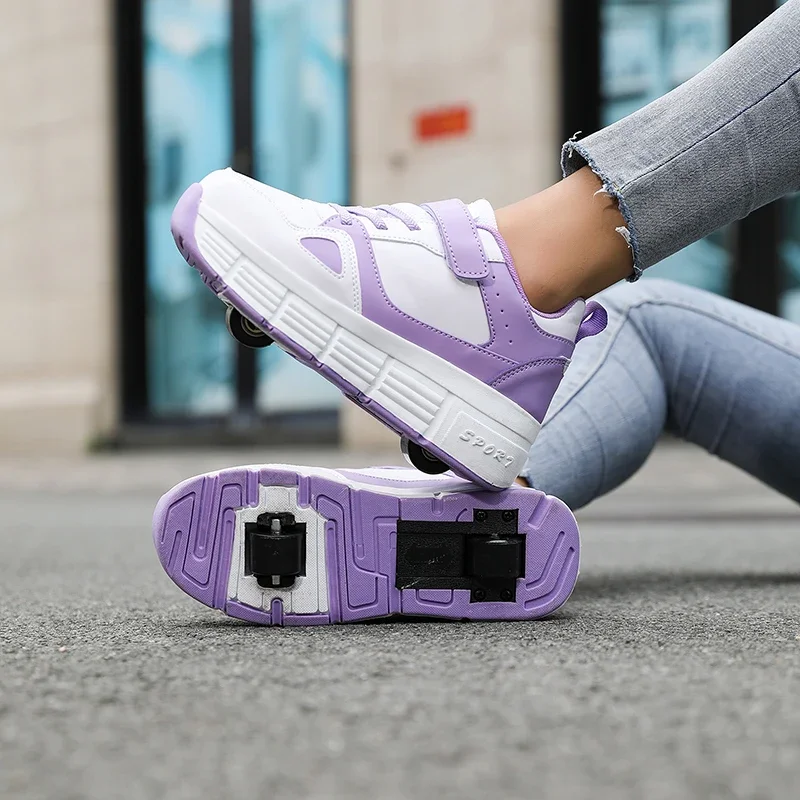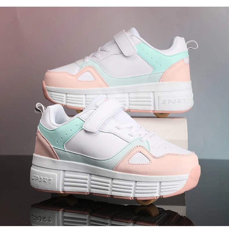 Kids Roller Skate Shoes Parkour Boys Girls Deformation Running Children Fashion 2 Wheels Casual Outdoor Detachable Skating Shoes