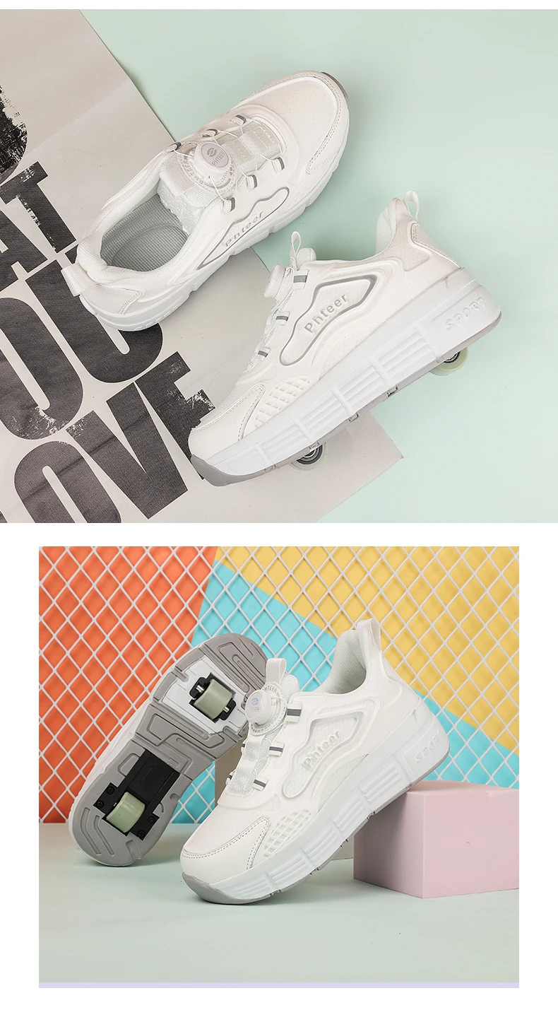 Kids Roller Skate Shoes Parkour Casual Outdoor Deformation Boys Girls Children Fashion 2 Wheels Running Detachable Skating Shoes