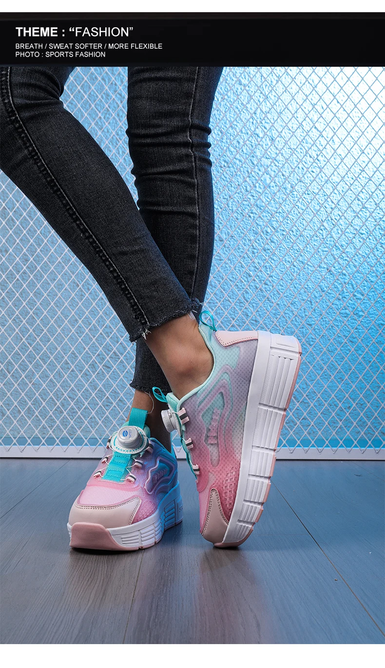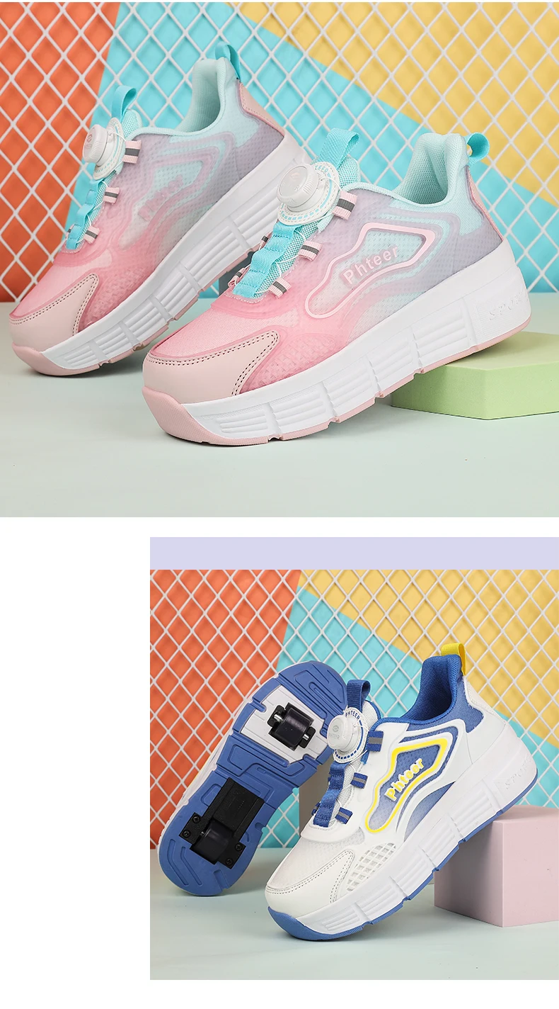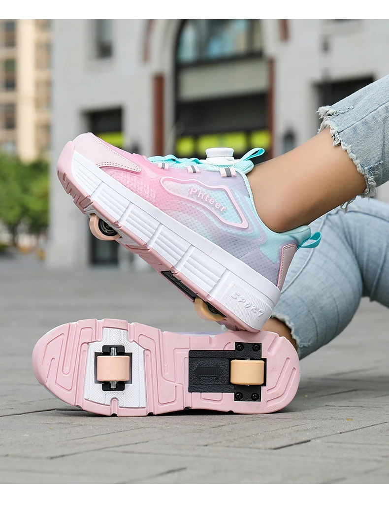 Kids Roller Skate Shoes Parkour Casual Outdoor Deformation Boys Girls Children Fashion 2 Wheels Running Detachable Skating Shoes