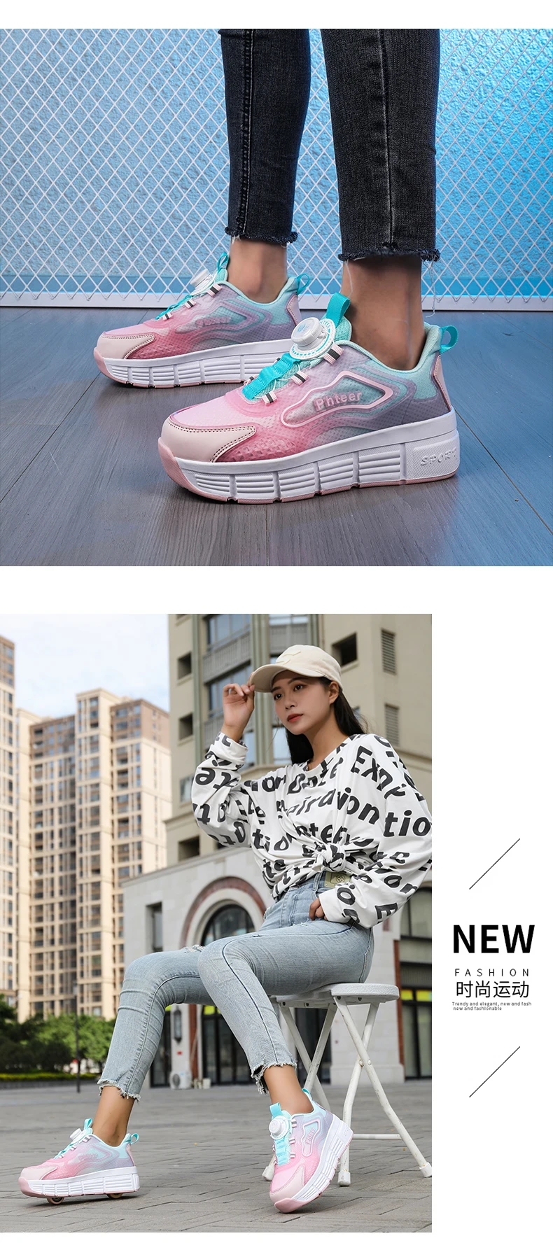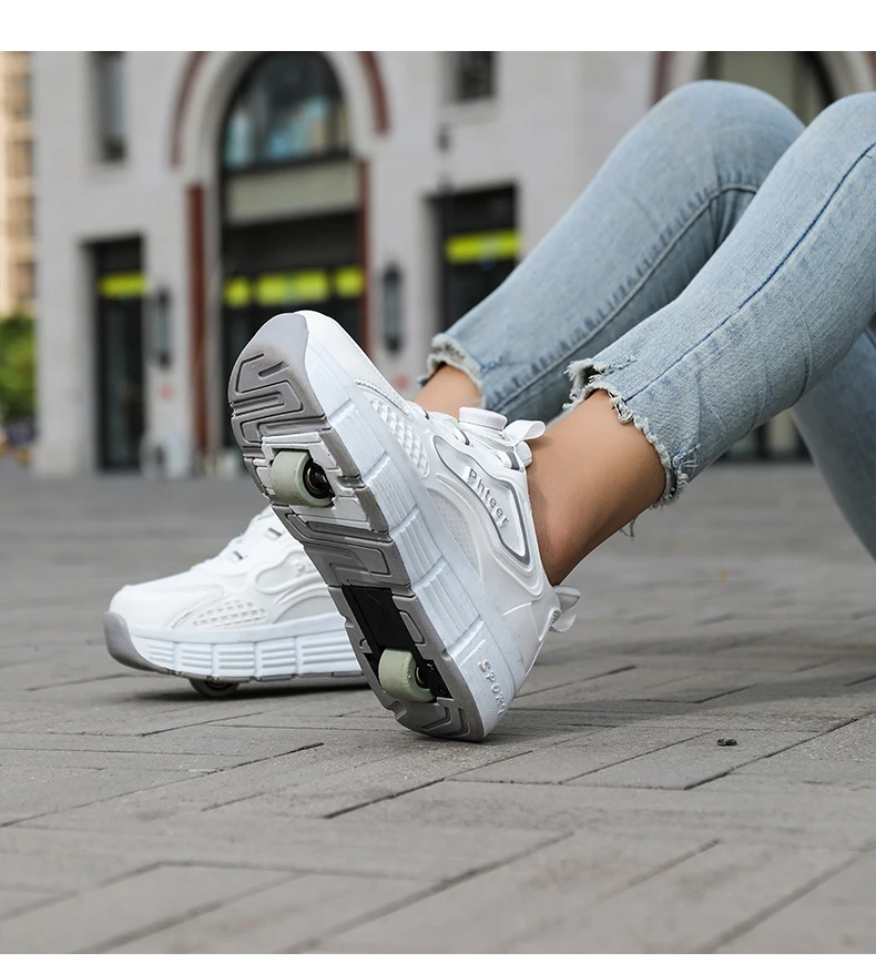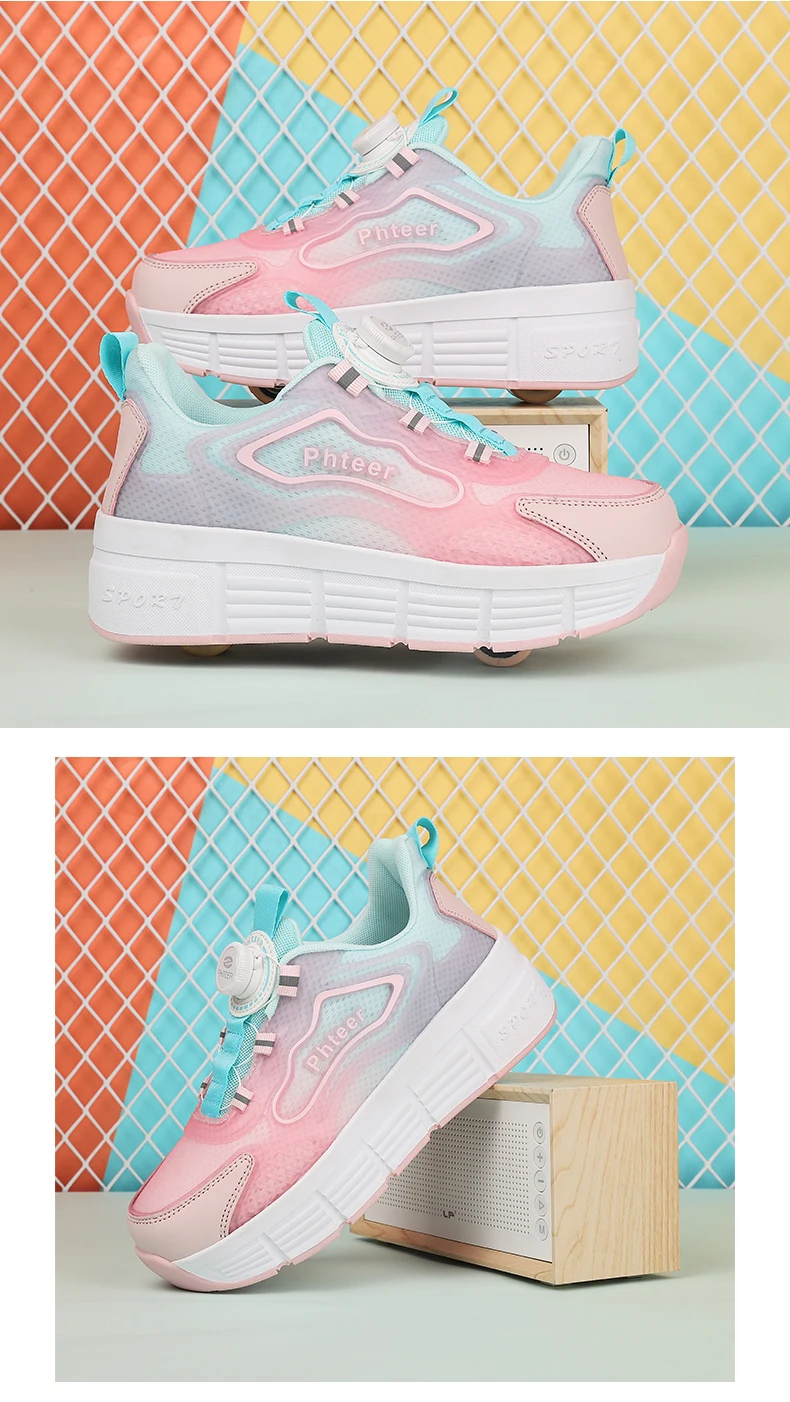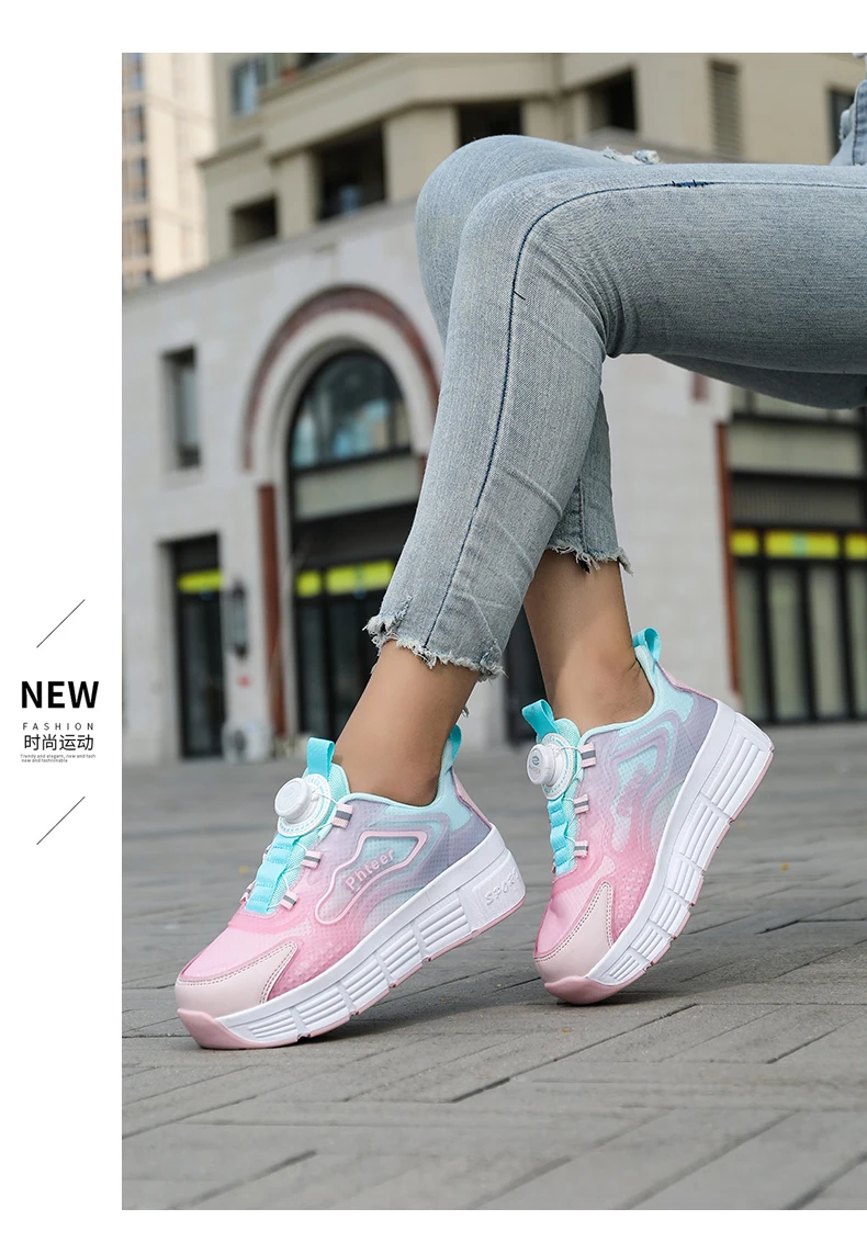 Kids Roller Skate Shoes Parkour Casual Outdoor Deformation Boys Girls Children Fashion 2 Wheels Running Detachable Skating Shoes