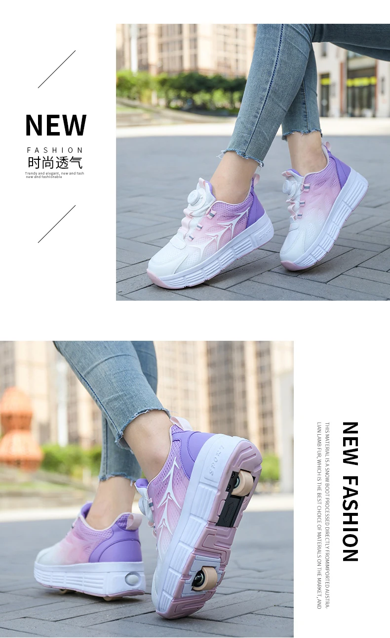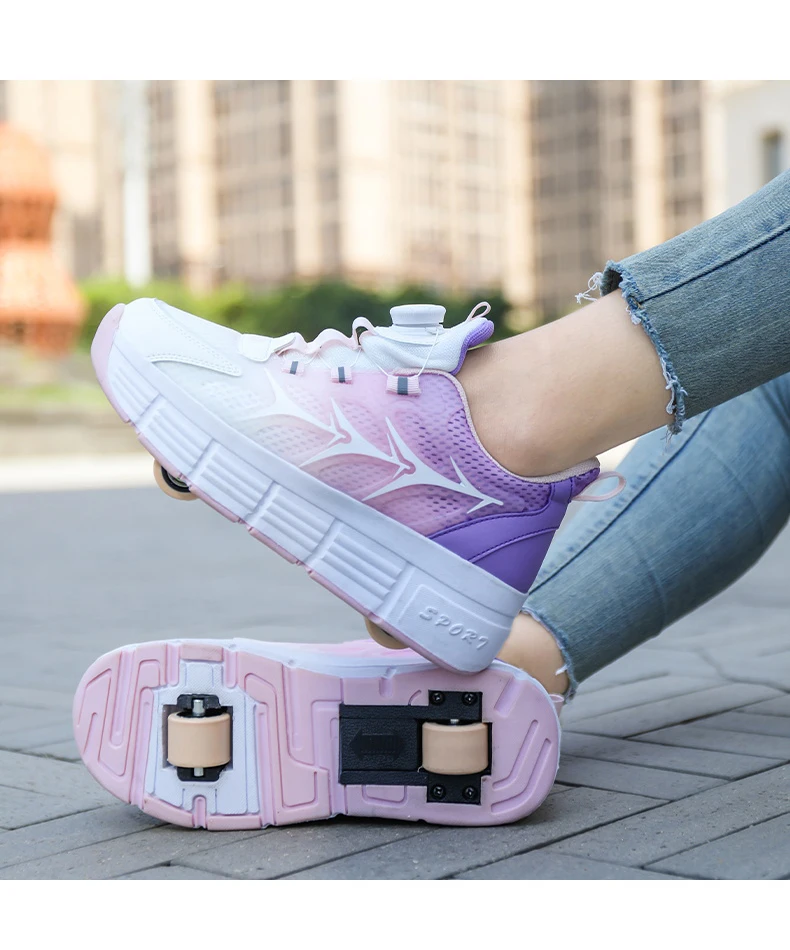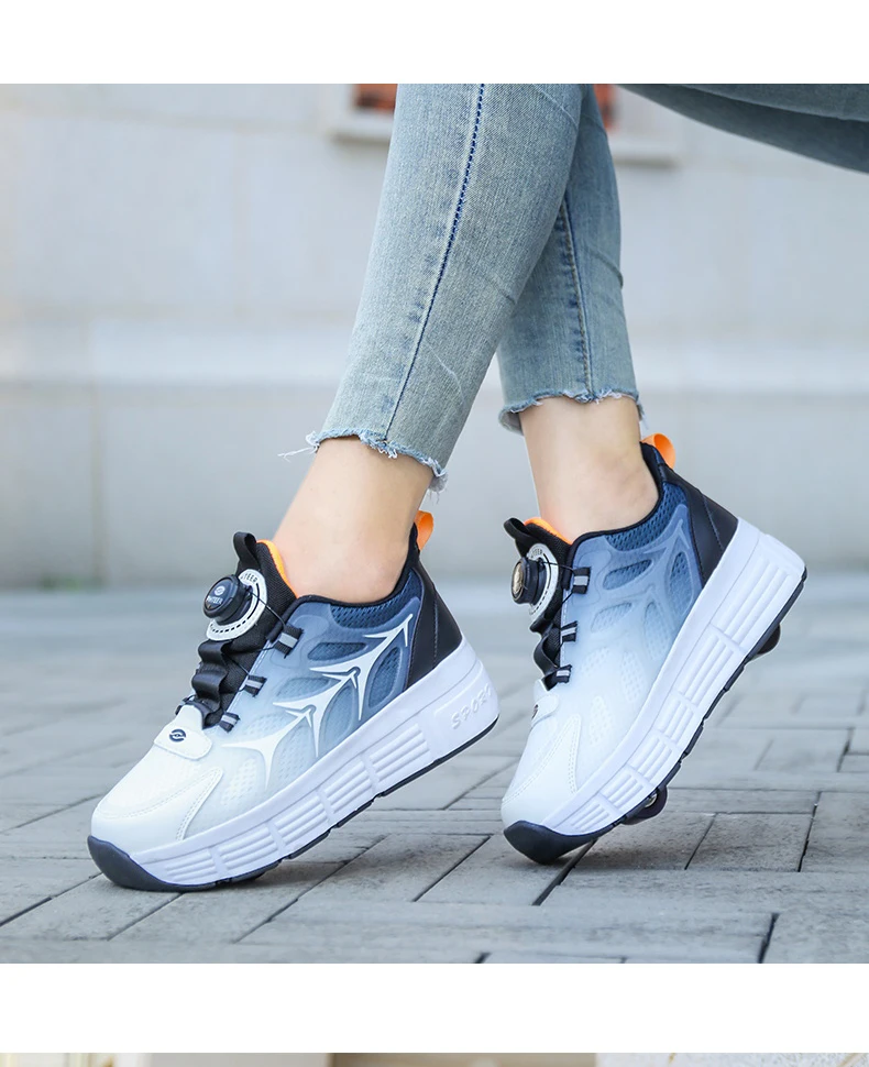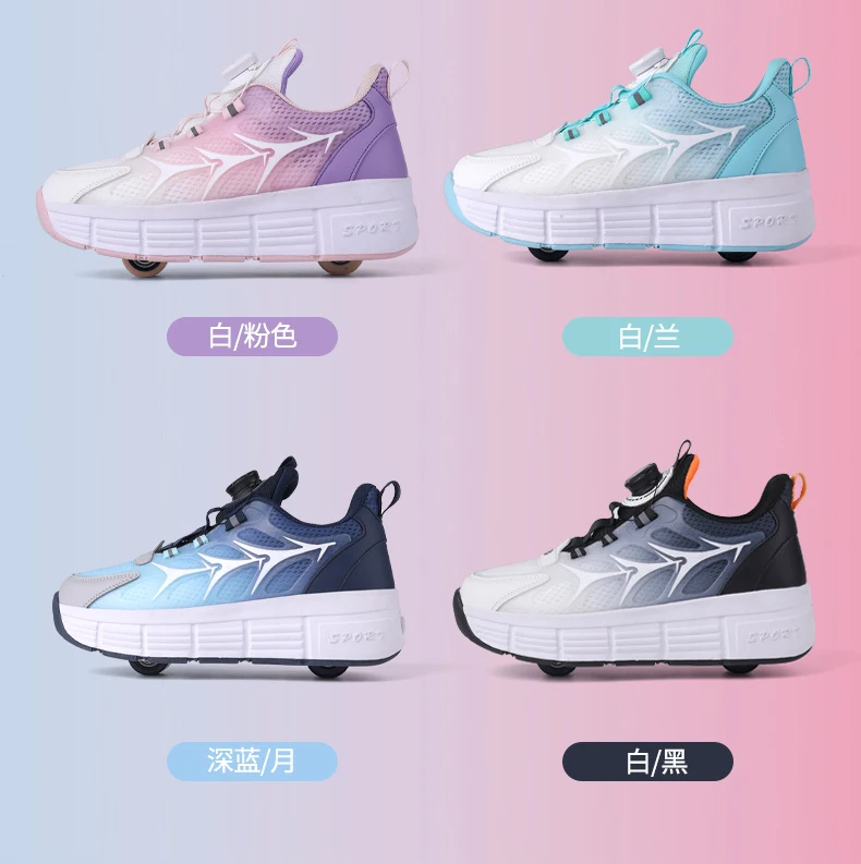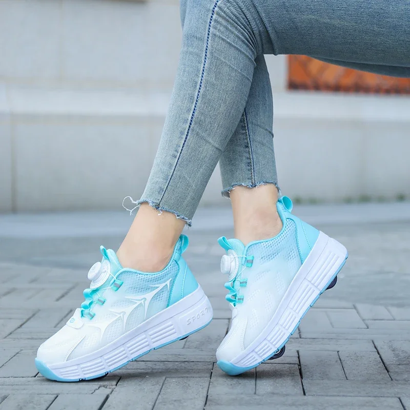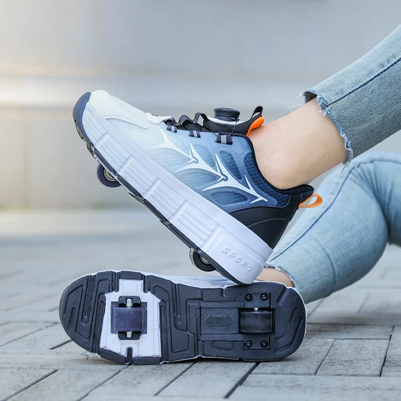 Kids Roller Skate Shoes Parkour Deformation Running Boys Girls Children Outdoor Fashion 2 Wheels Casual Detachable Skating Shoes