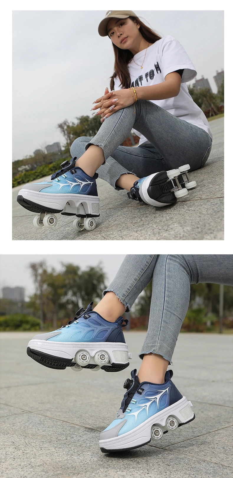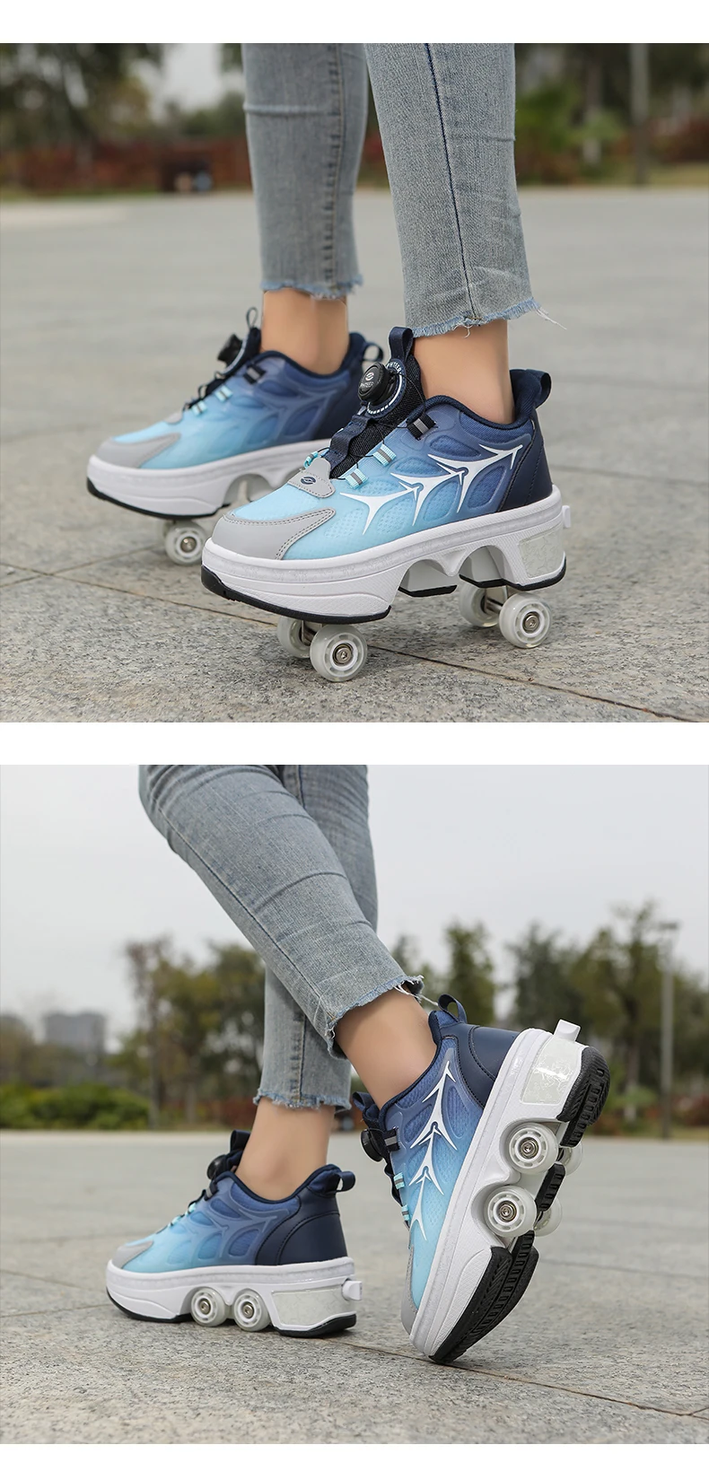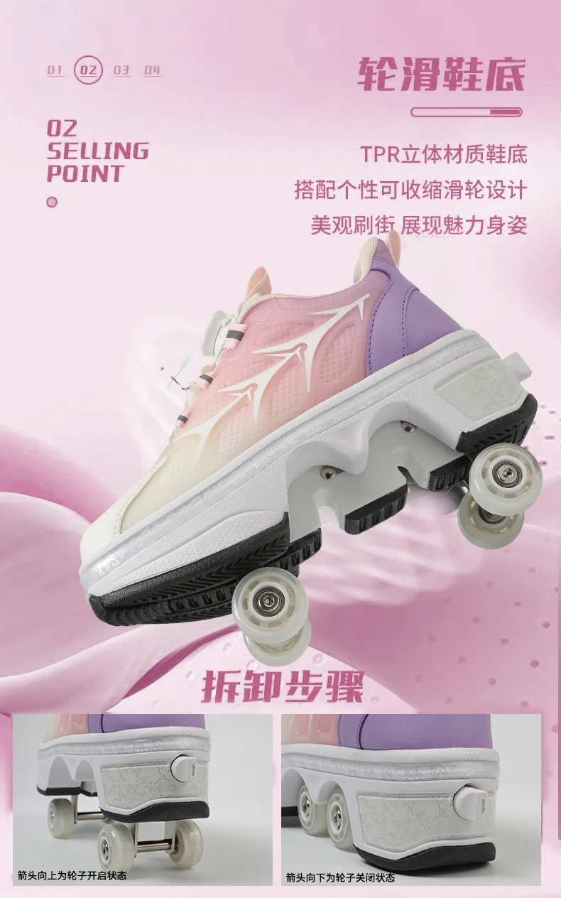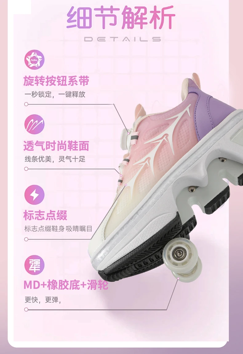 Kids Roller Skate Shoes Parkour Detachable 4 Wheels Boys Girls Children Casual Fashion Deformation Outdoor Running Skating Shoes