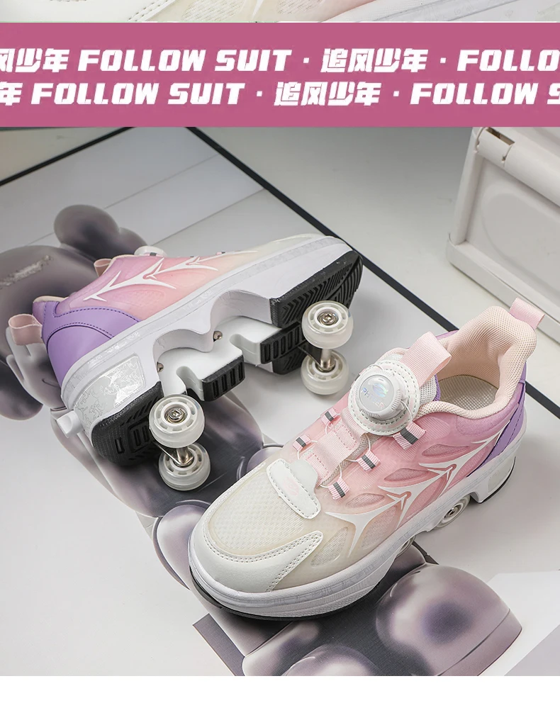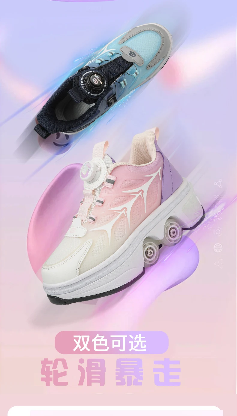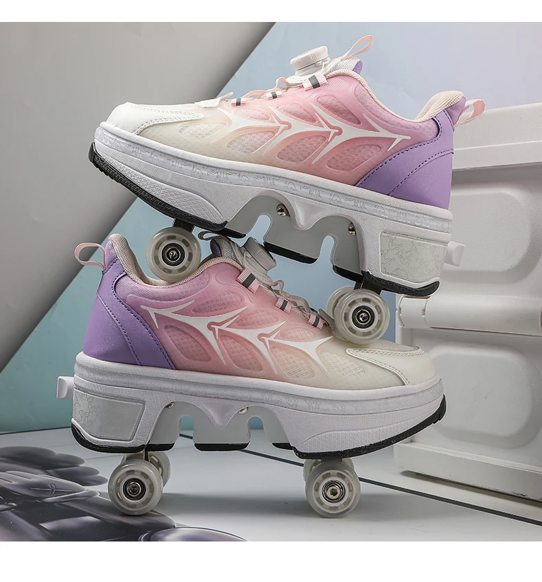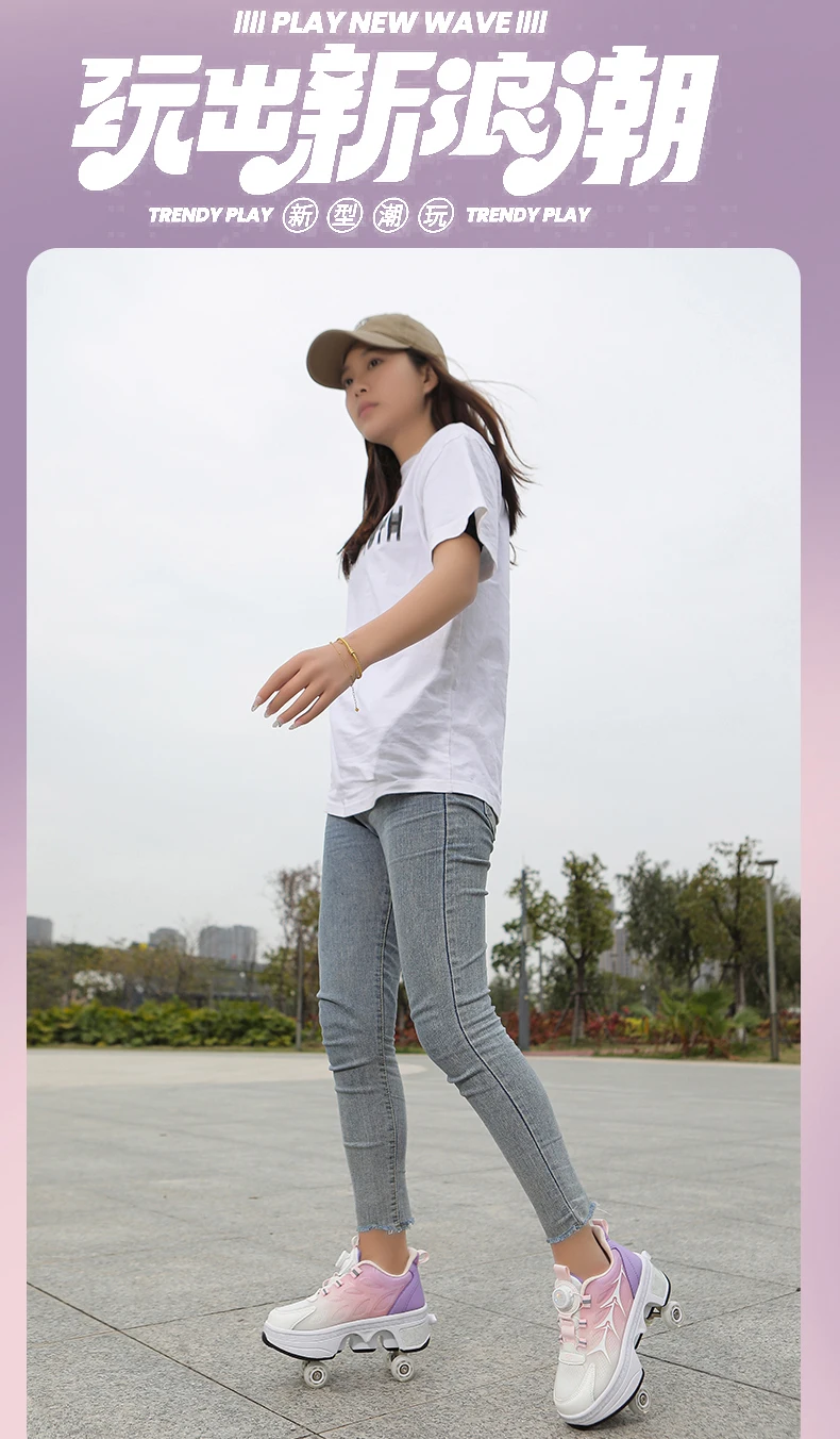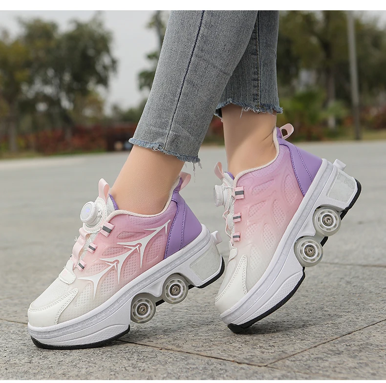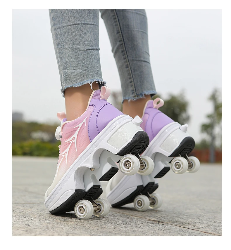 Kids Roller Skate Shoes Parkour Detachable 4 Wheels Boys Girls Children Casual Fashion Deformation Outdoor Running Skating Shoes