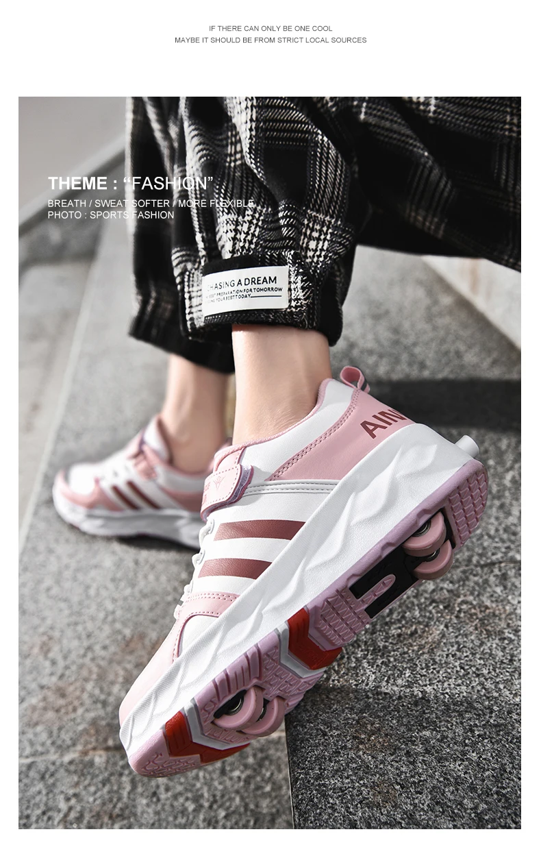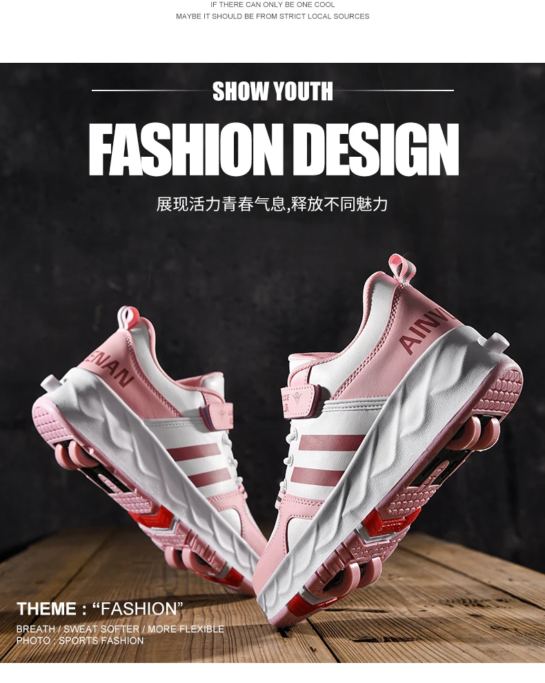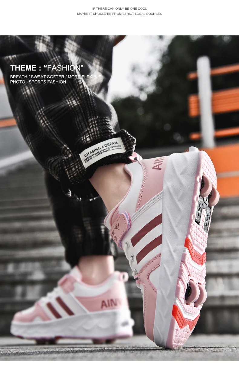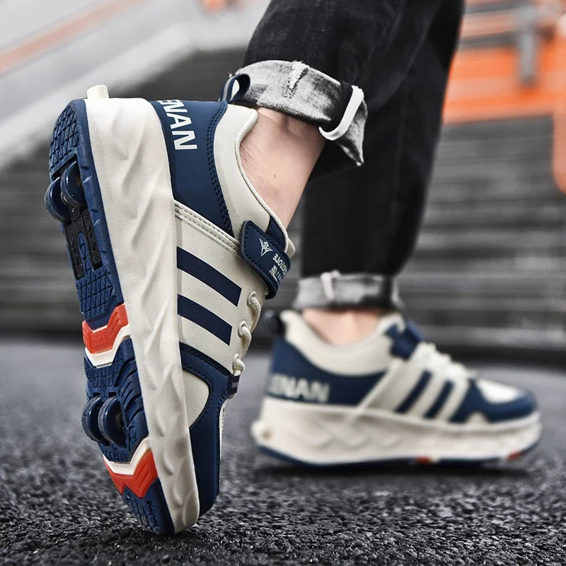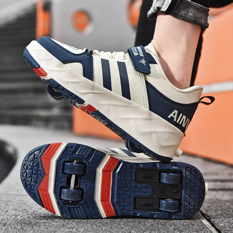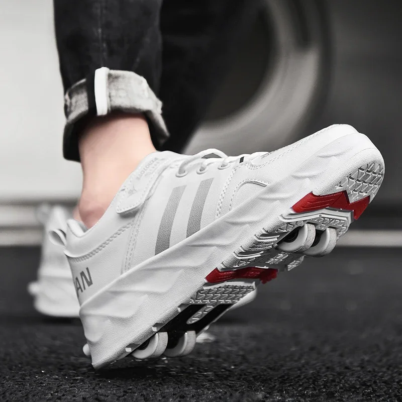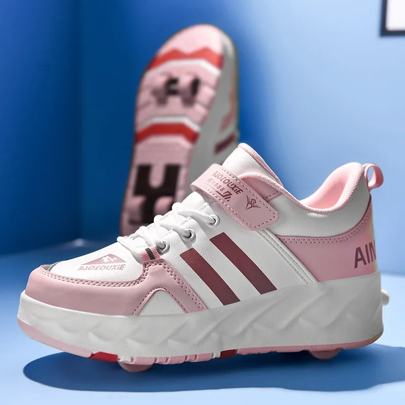 Kids Roller Skate Shoes Parkour Detachable 4 Wheels Running Boys Girls Casual Fashion Children Deformation Outdoor Skating Shoes