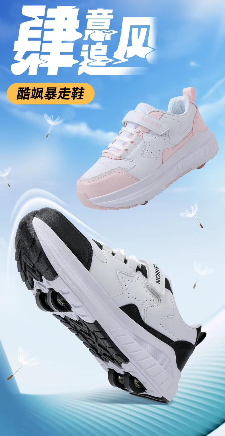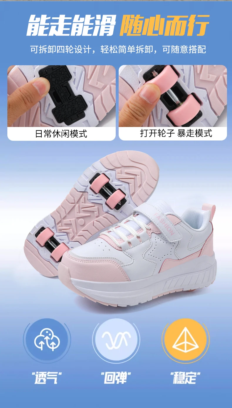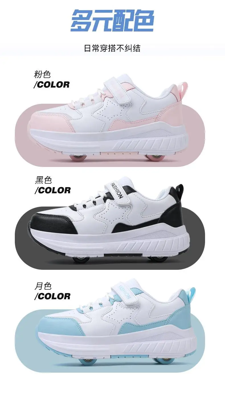 Kids Roller Skate Shoes Running Boys Girls Outdoor Detachable 4 Wheels Children Fashion Deformation Casual Parkour Skating Shoes