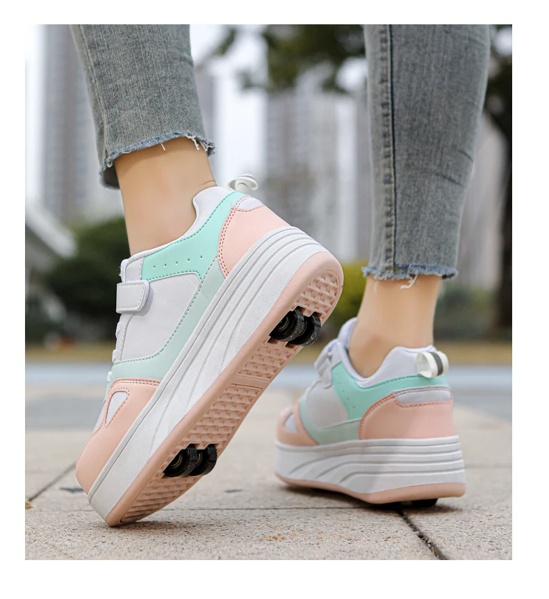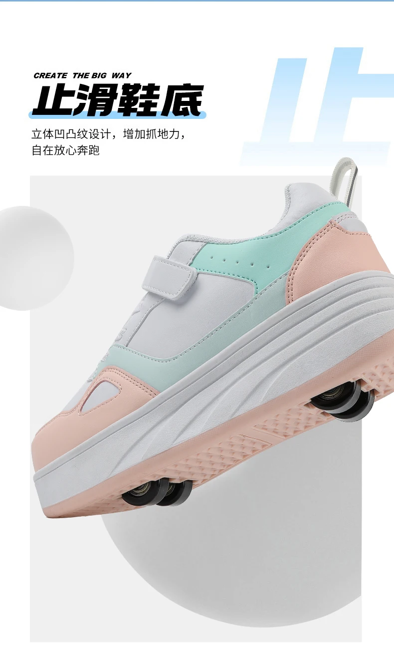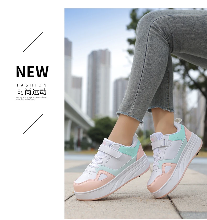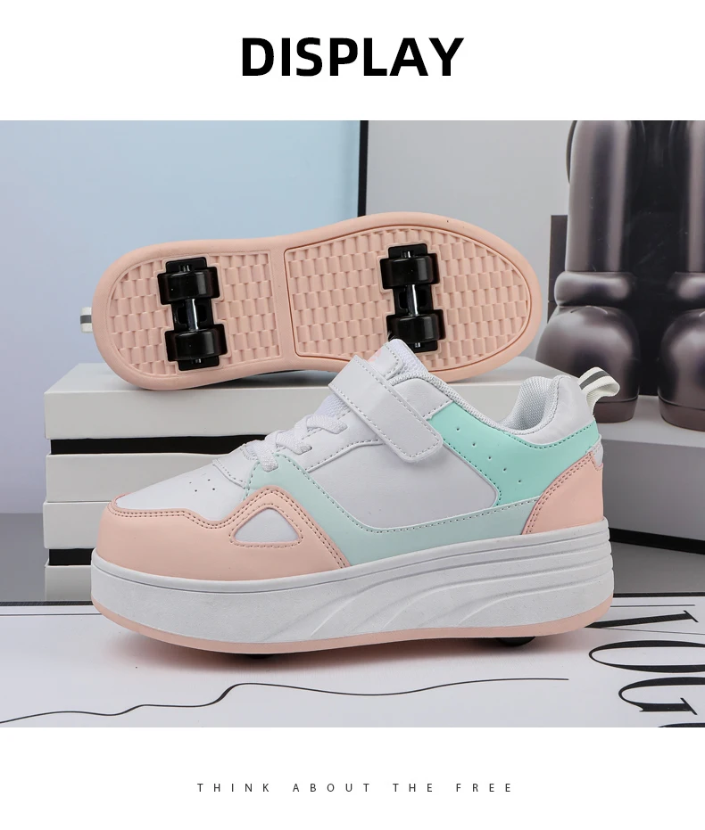 Kids Roller Skate Shoes Running Children Fashion Parkour Boys Girls Detachable 4 Wheels Casual Deformation Outdoor Skating Shoes