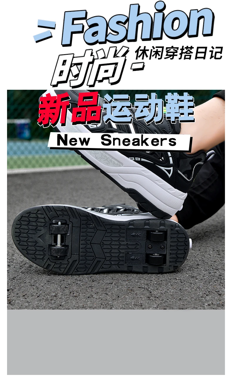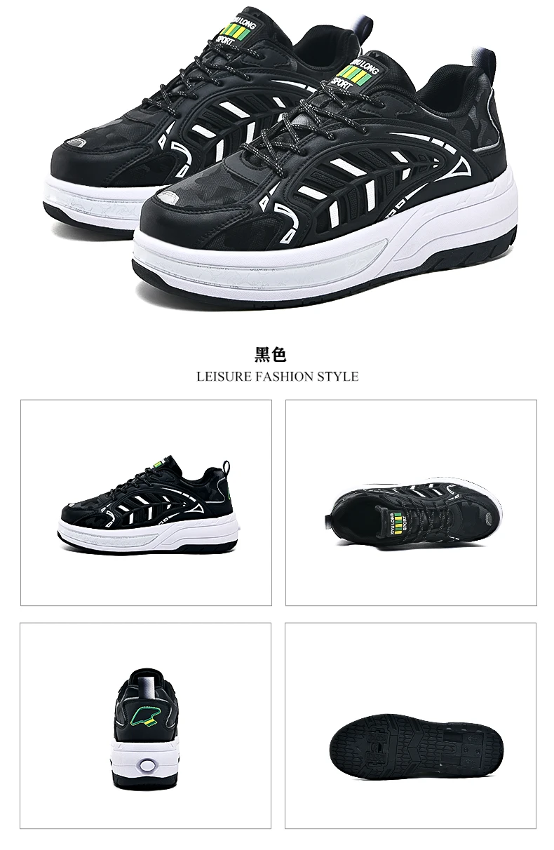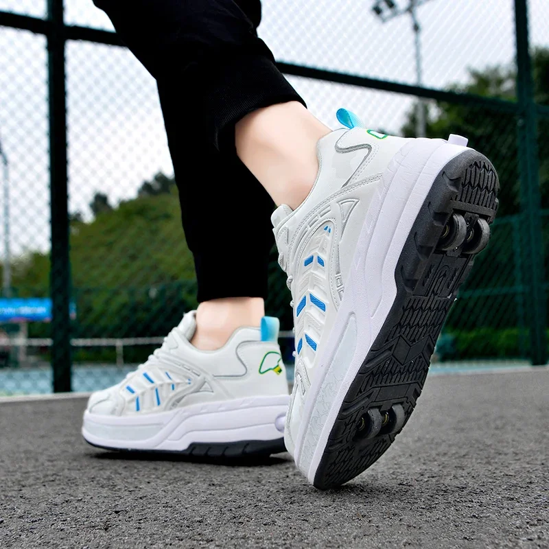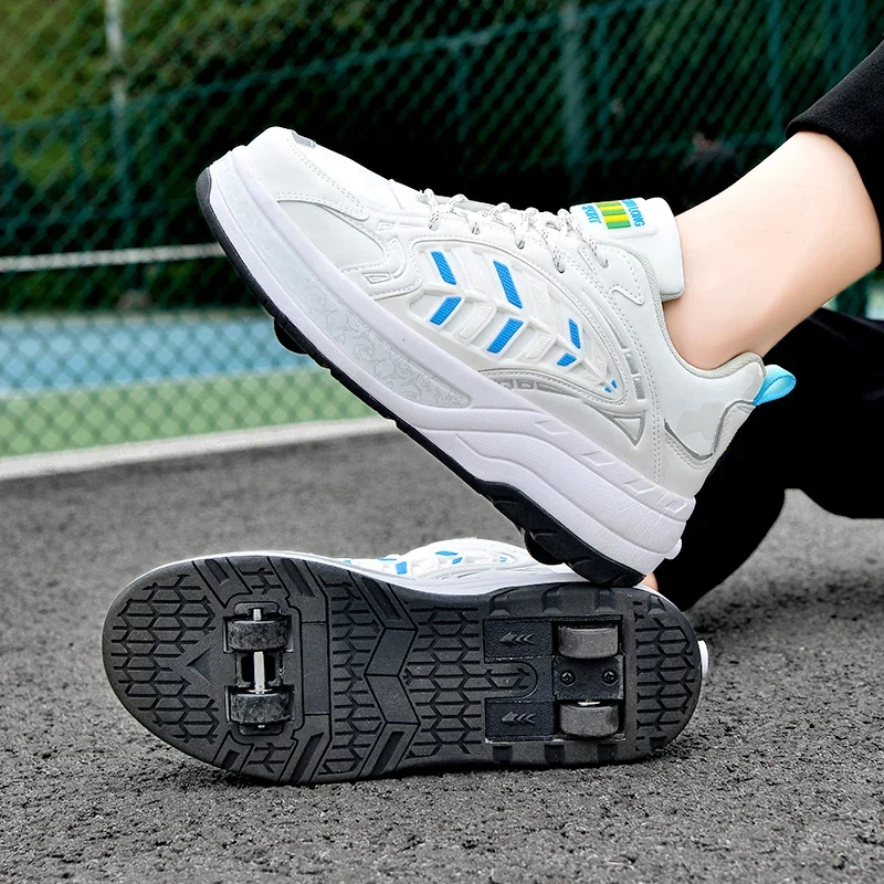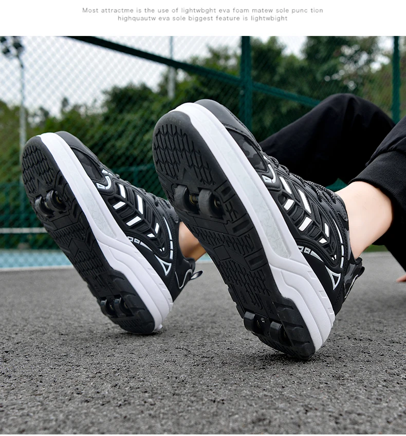 Kids Roller Skate Shoes Running Fashion 4 Wheels Boys Girls Free Shipping Casual Parkour Deformation Skating Shoes Adults Gift