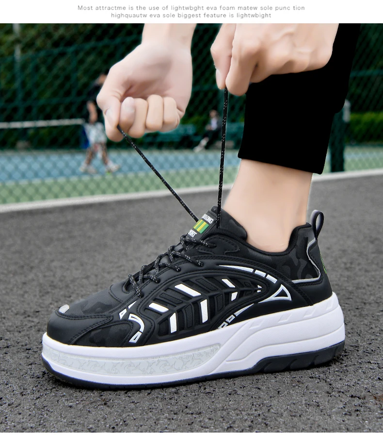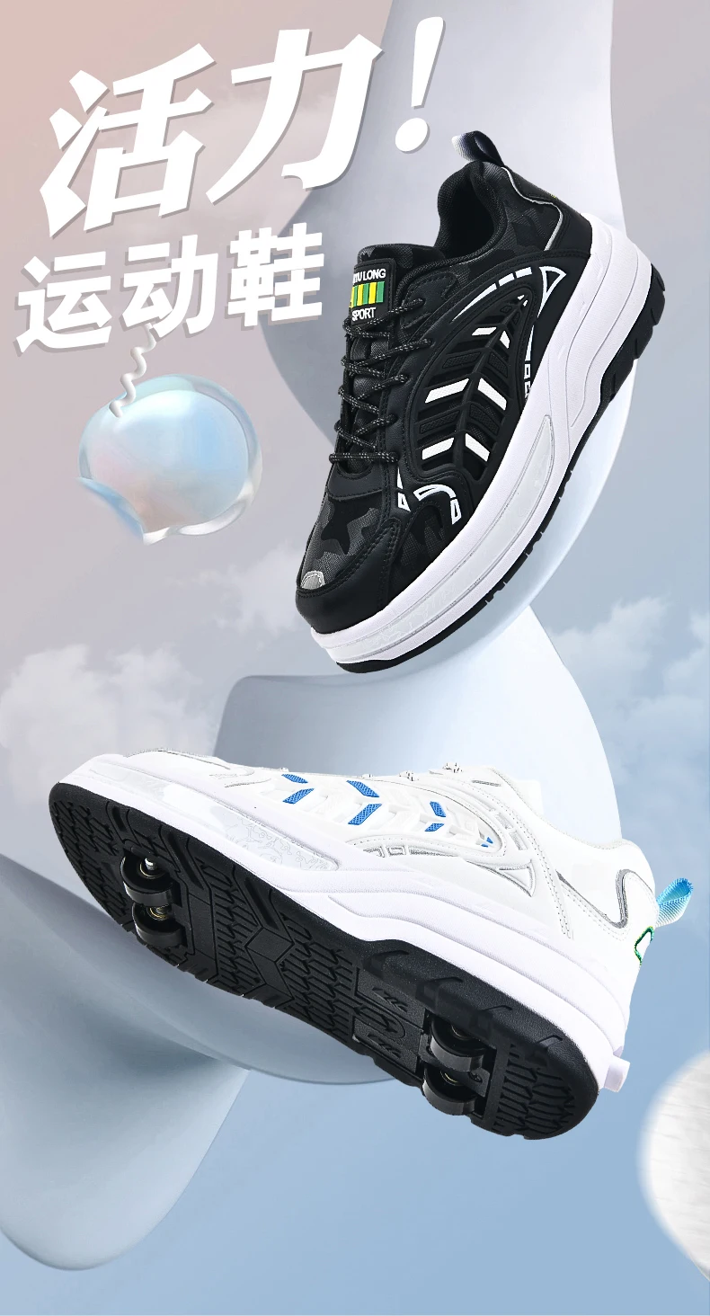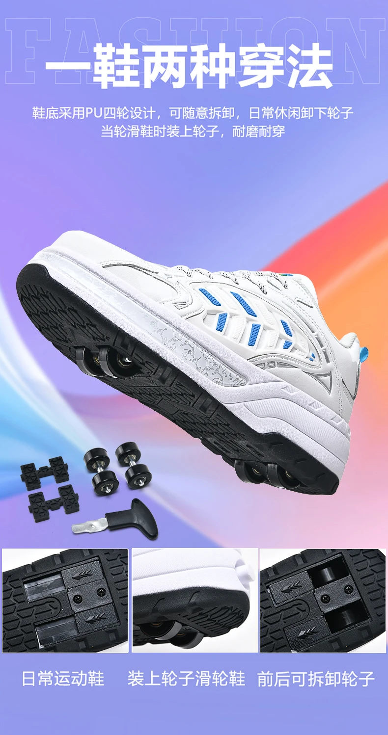 Kids Roller Skate Shoes Running Fashion 4 Wheels Boys Girls Free Shipping Casual Parkour Deformation Skating Shoes Adults Gift