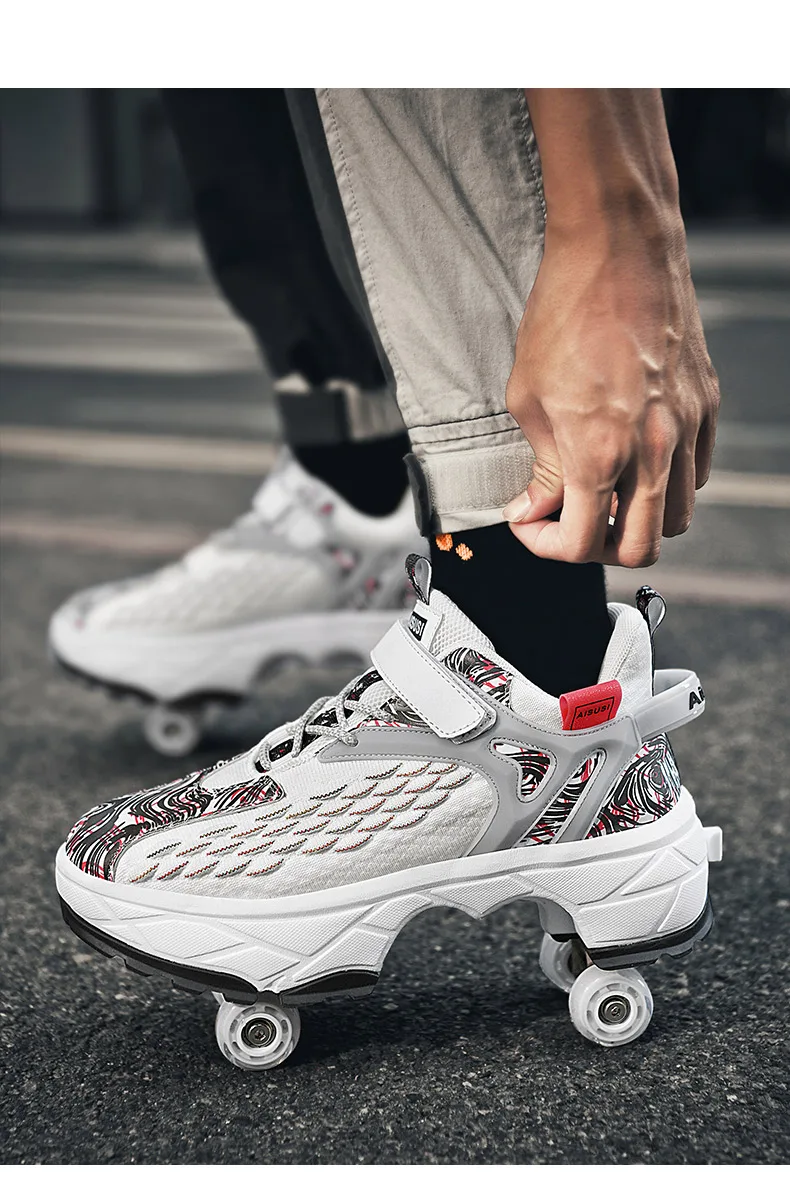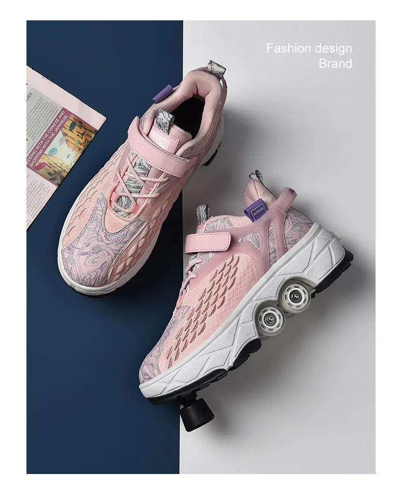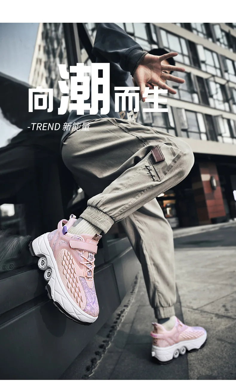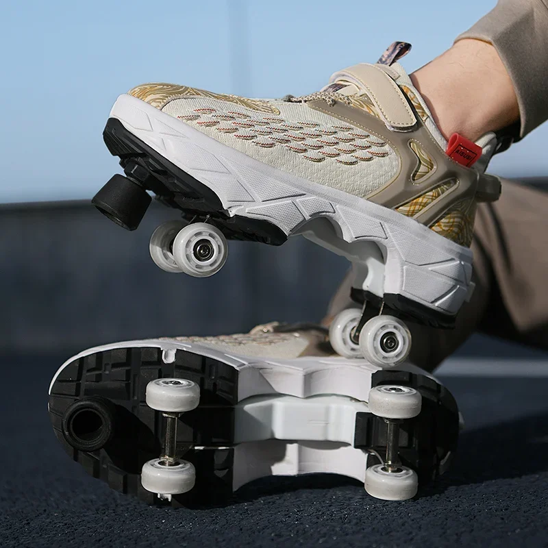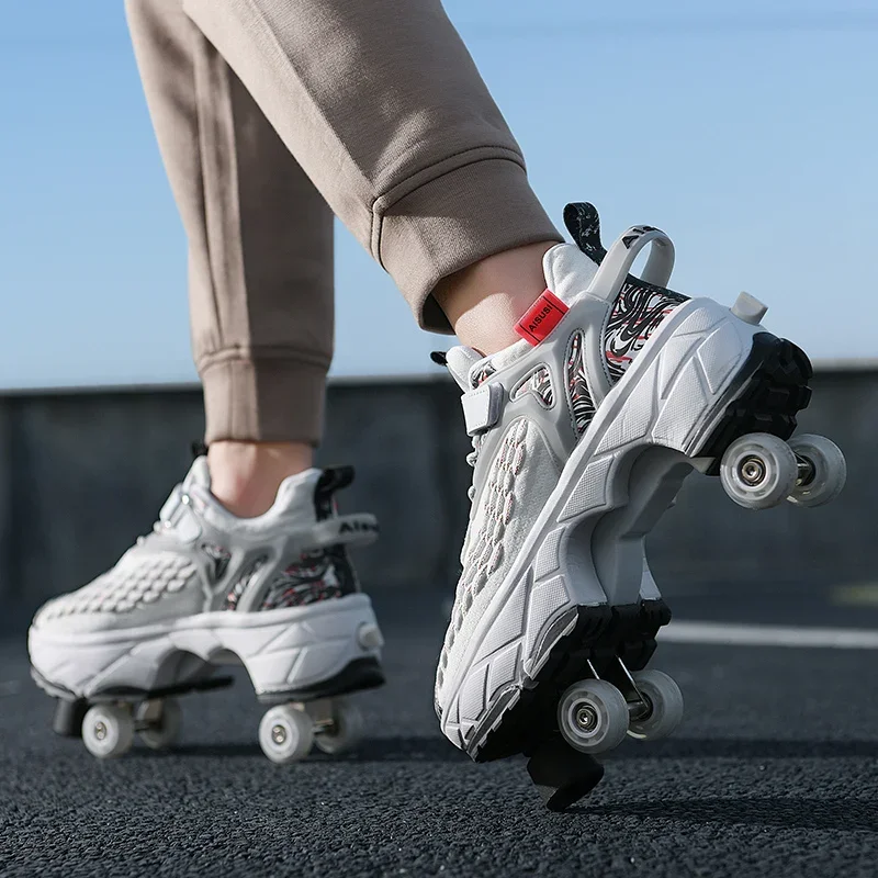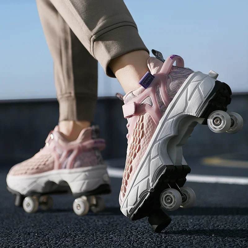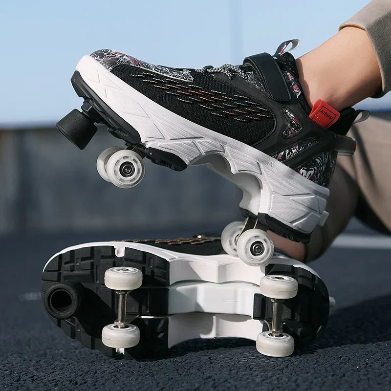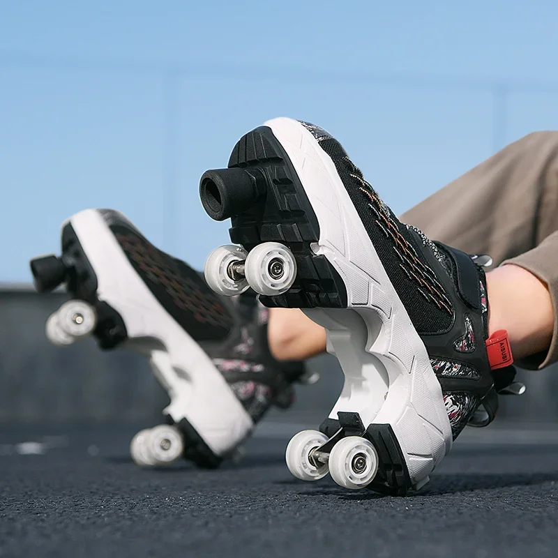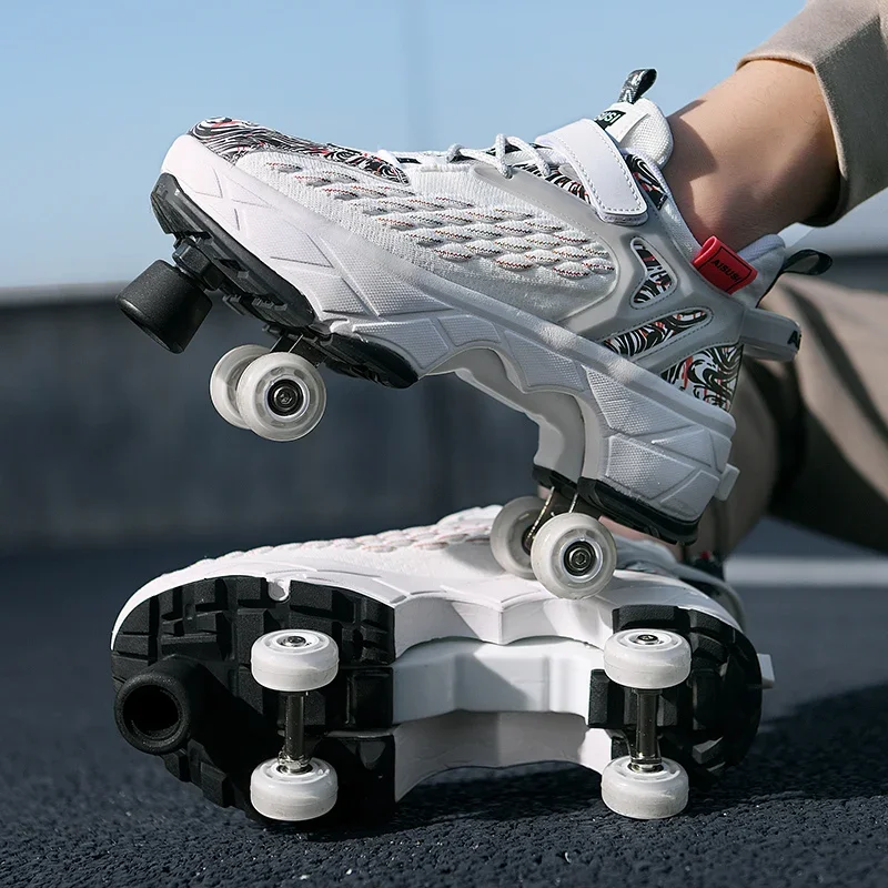 Kids Roller Skate Shoes Running Outdoor 4 Wheels Casual Children Parkour Detachable Fashion Boys Girls Deformation Skating Shoes